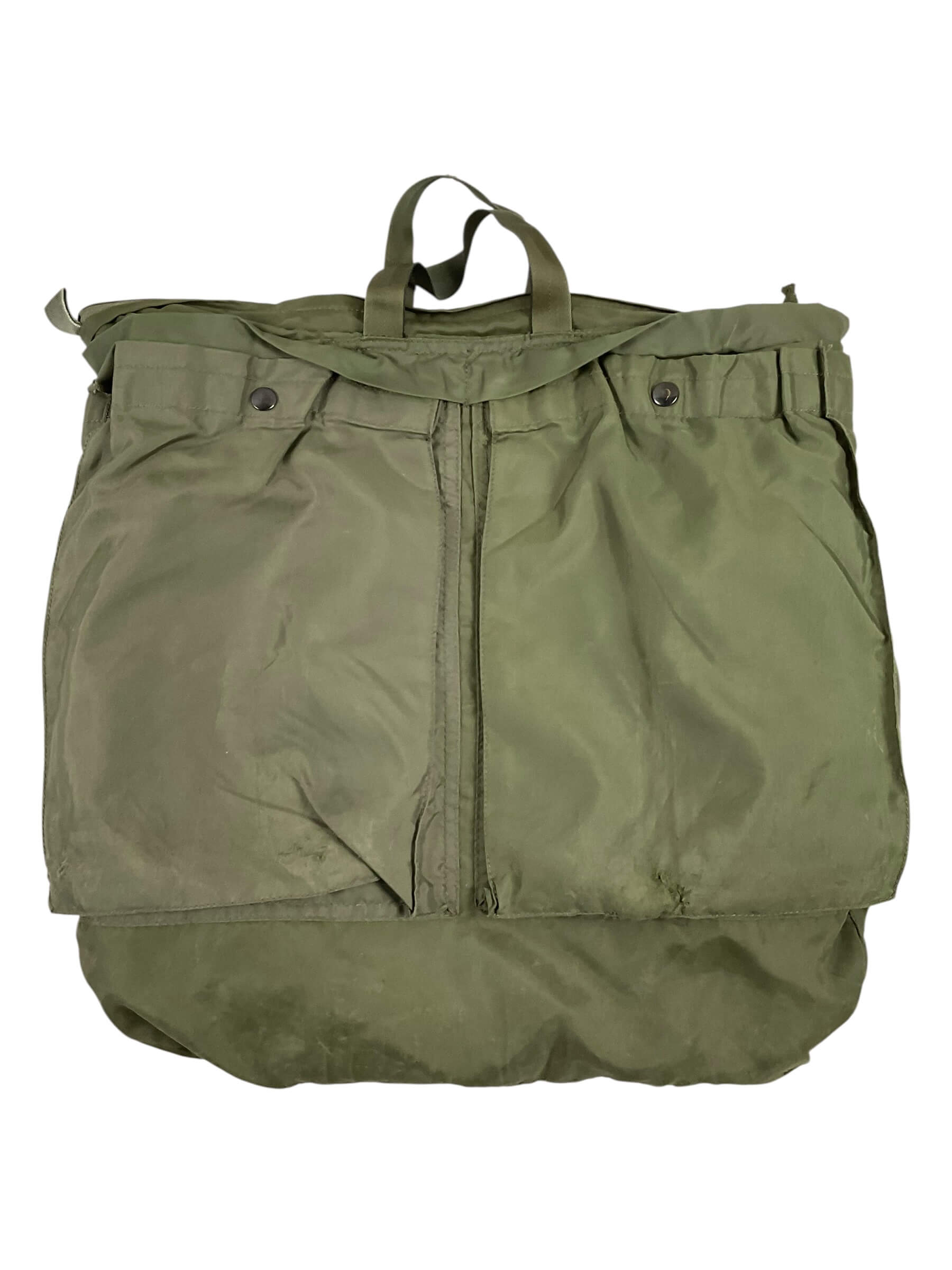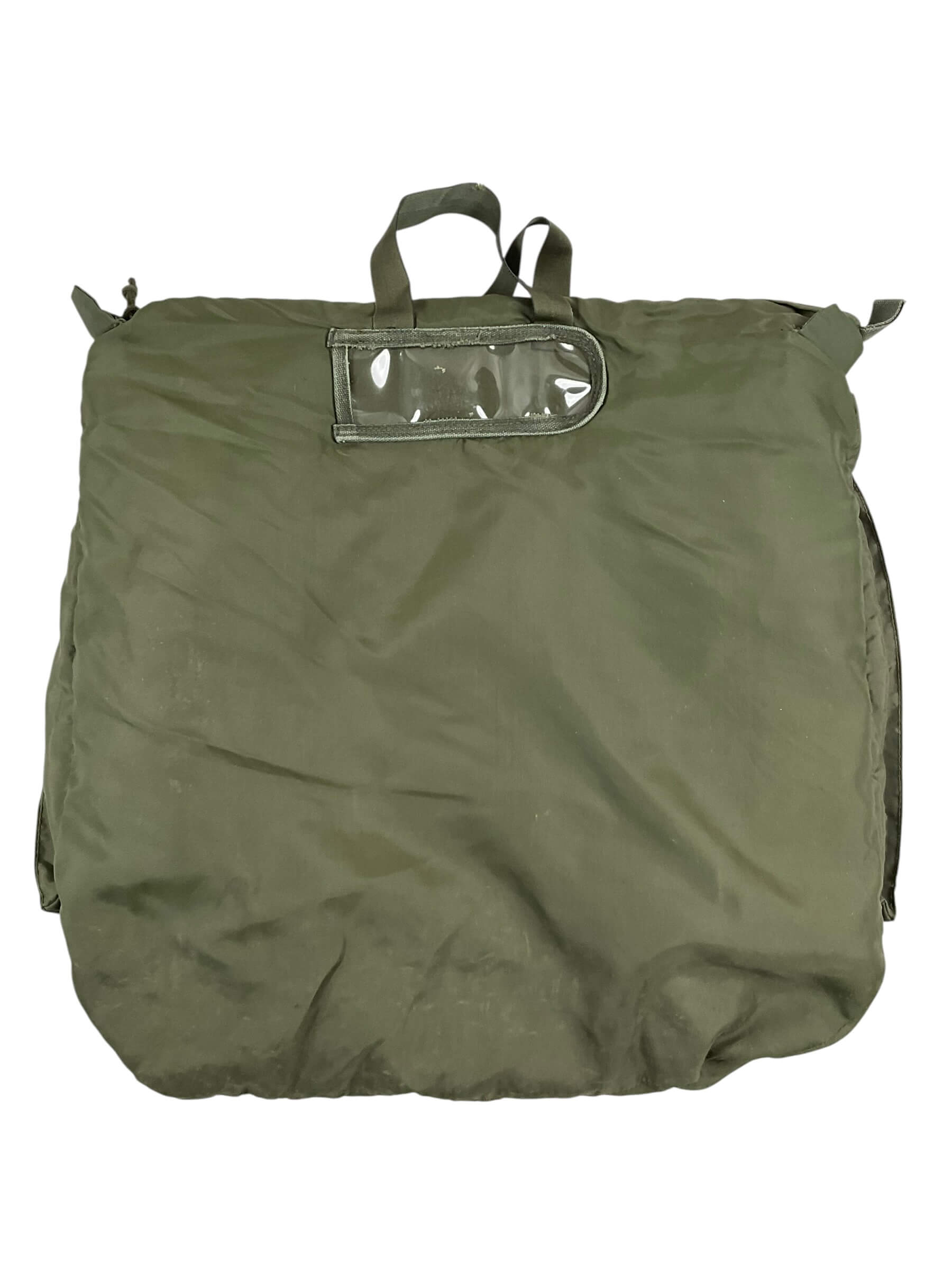 The Canadian Forces RCAF Pilots Helmet Bag is a utilitarian equipment item originally issued to Royal Canadian Air Force personnel for the safe transport and storage of flight helmets and associated gear. Constructed from durable nylon material, the bag typically features a padded main compartment designed to protect sensitive headgear. It is equipped with sturdy carrying handles and a secure zipper closure, ensuring contents remain secure during transit. The bag often includes external accessory pockets with snap or hook-and-loop closures, allowing for organization of additional items such as gloves, eyewear, or flight documents. Olive drab is the most common color, although variations may exist depending on period and issue. The design reflects the practical requirements of military aviation, prioritizing functionality, protection, and ease of access. Helmet bags of this type have been standard issue among RCAF pilots from the late Cold War era onward, continuing to serve both operational and training environments.