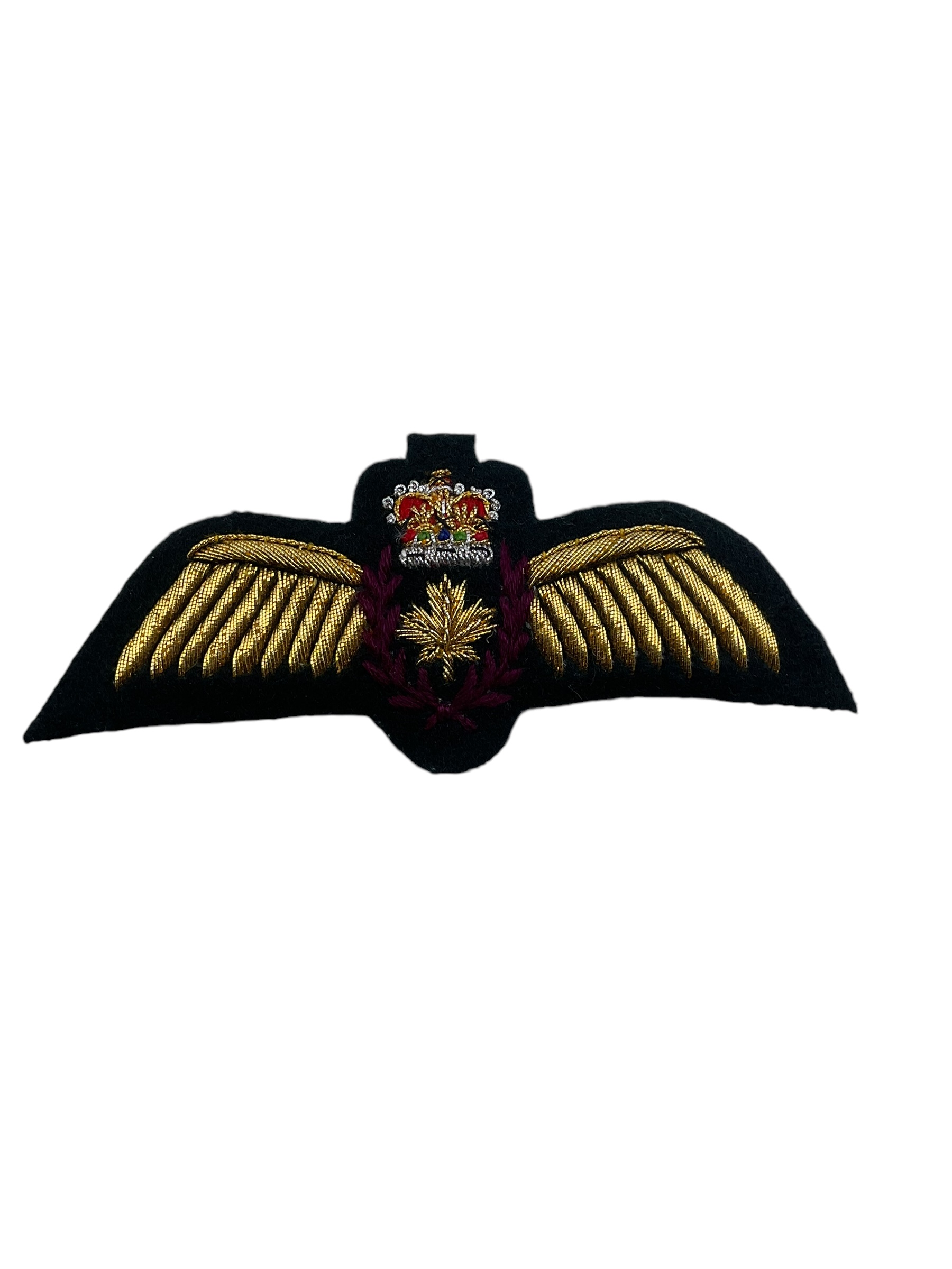 This item is a meticulously crafted of the Canadian Forces RCAF (Royal Canadian Air Force) Pilots Wing. Made with precision and detail, it features high-quality bullion wire, an element that adds an elevated level of authenticity to the piece. The emblem showcases the iconic design of the RCAF Pilots Wing, a symbol recognized by military and aviation enthusiasts worldwide. This item is also padded, providing a sturdy and substantial feel. It’s a great addition to any military memorabilia collection, perfect for display or for wear on uniforms or jackets. Whether you’re a current service member, a veteran, a collector of military paraphernalia, or simply someone who appreciates the rich history of the RCAF, this bullion wire padded pilot’s wing is a must-have item.