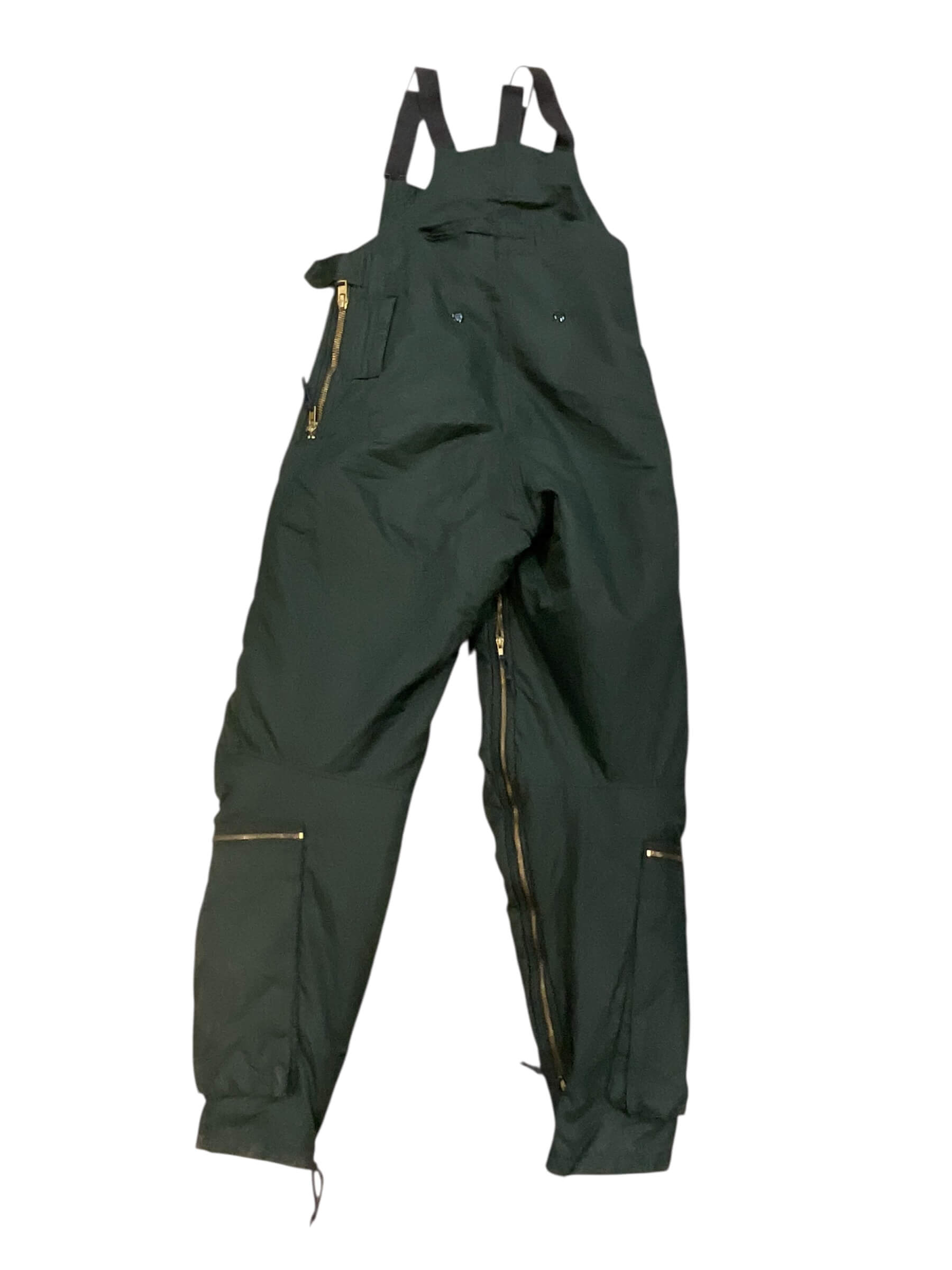 This product is a pair of authentic Canadian Forces RCAF Winter Flying Pants Trousers, Size 7441, dated 1989. Designed for the Royal Canadian Air Force (RCAF), they are vintage military gear with a rich history. These trousers are made for extreme winter conditions, providing exceptional warmth and durability. The tough exterior fabric is designed to resist wind and moisture while the internal lining ensures adequate insulation. They come in a neutral tone, suitable for any winter wardrobe. The trousers are equipped with multiple pockets for practicality and convenience. Despite their age, these pants are in excellent condition, making them a valuable find for collectors of military memorabilia or outdoor enthusiasts in need of high-quality cold-weather gear. These pants reflect the quality and resilience the RCAF is known for. Own a piece of Canadian history with these vintage winter flying pants.