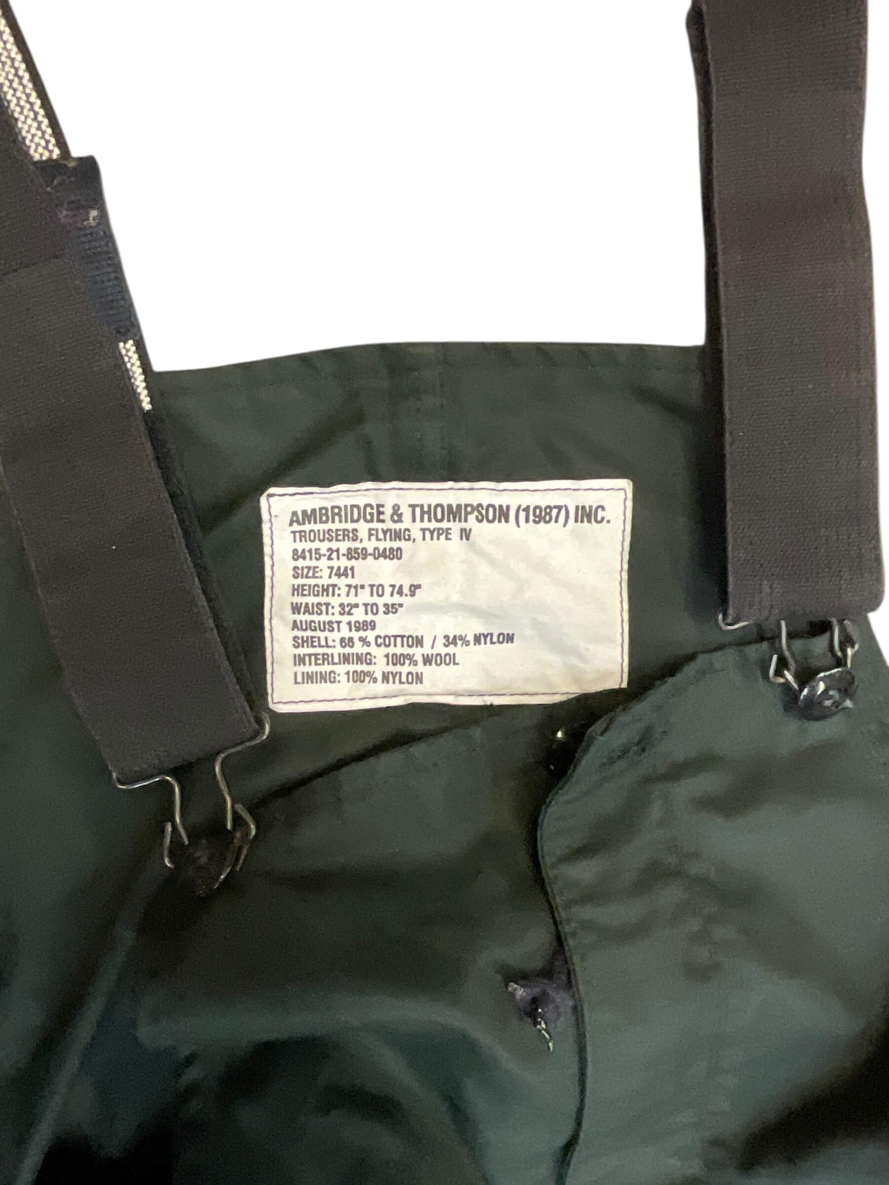 Canadian Forces RCAF Winter Flying Pants Trousers Size 7441 Dated 1989