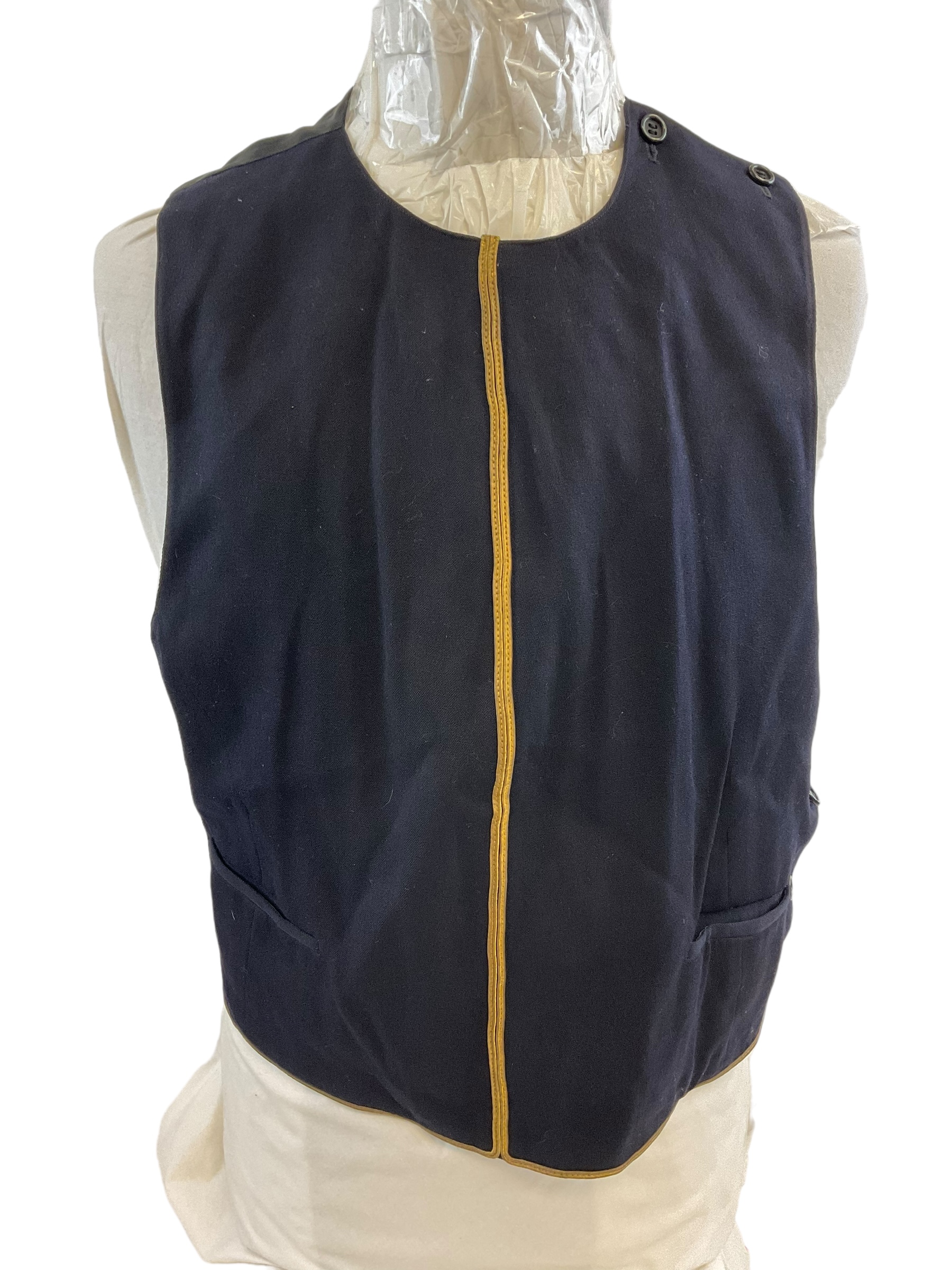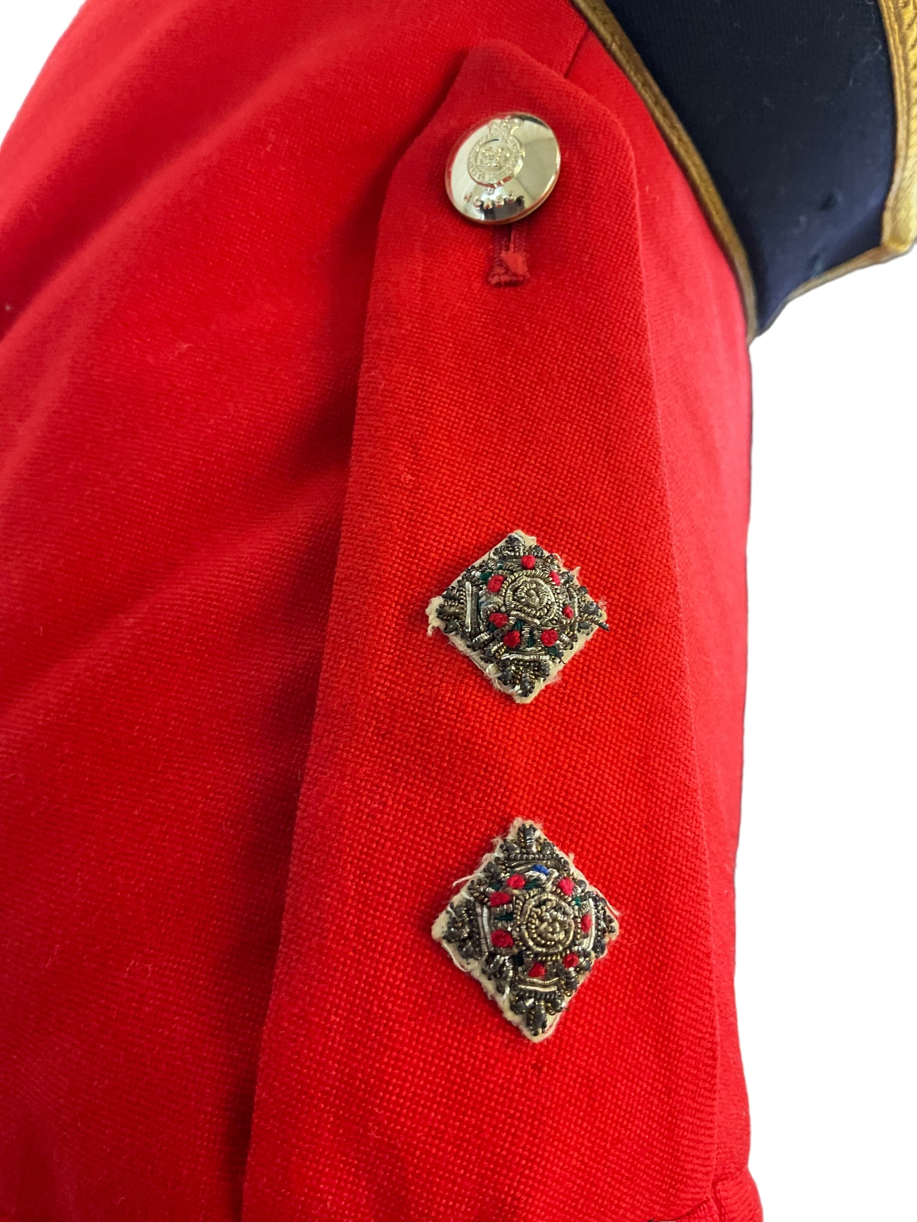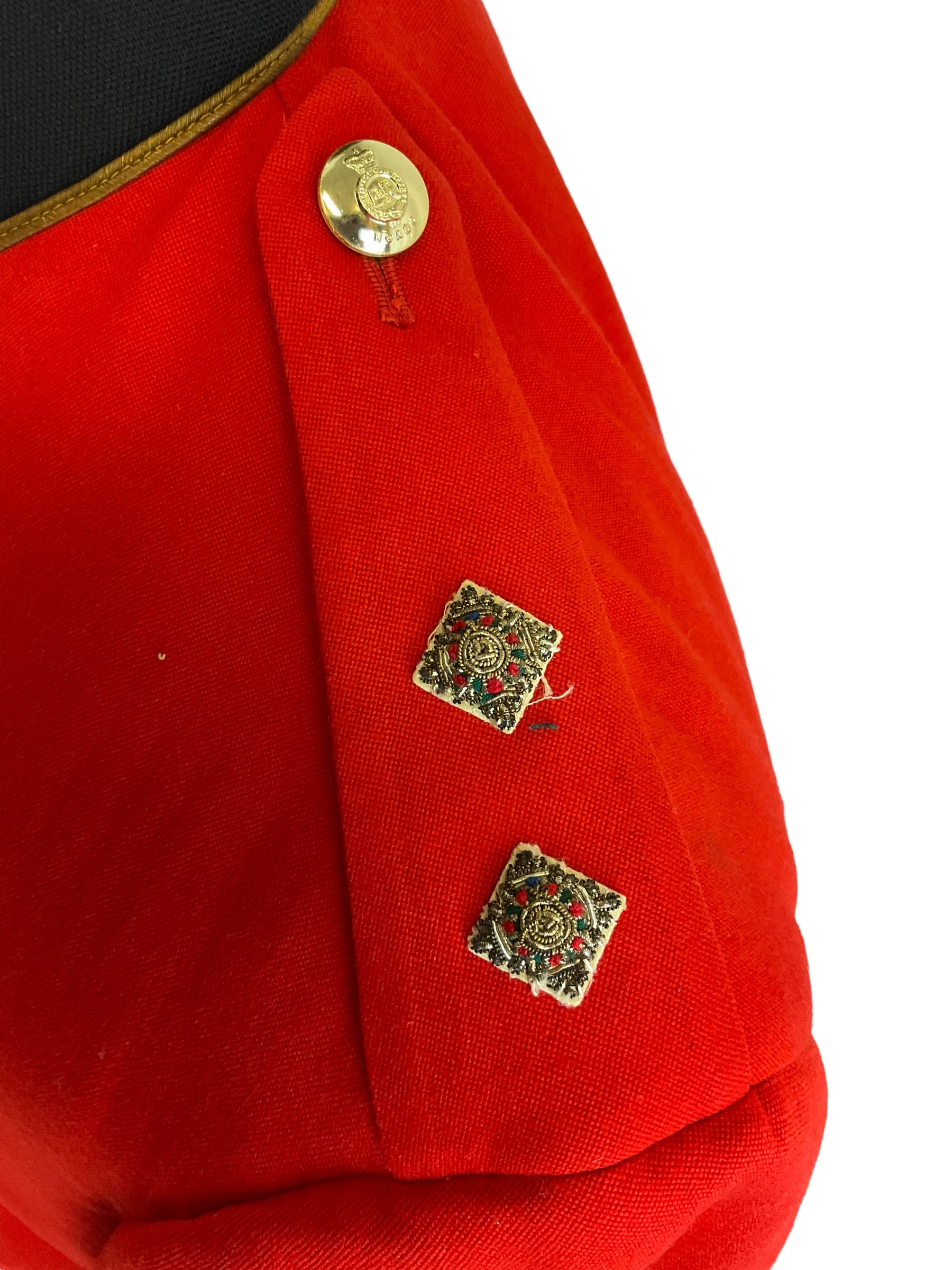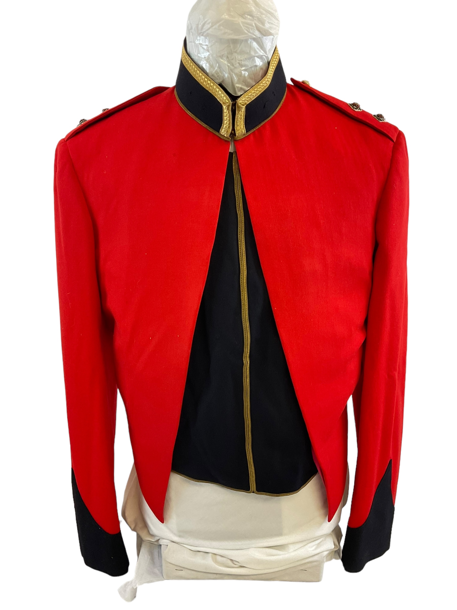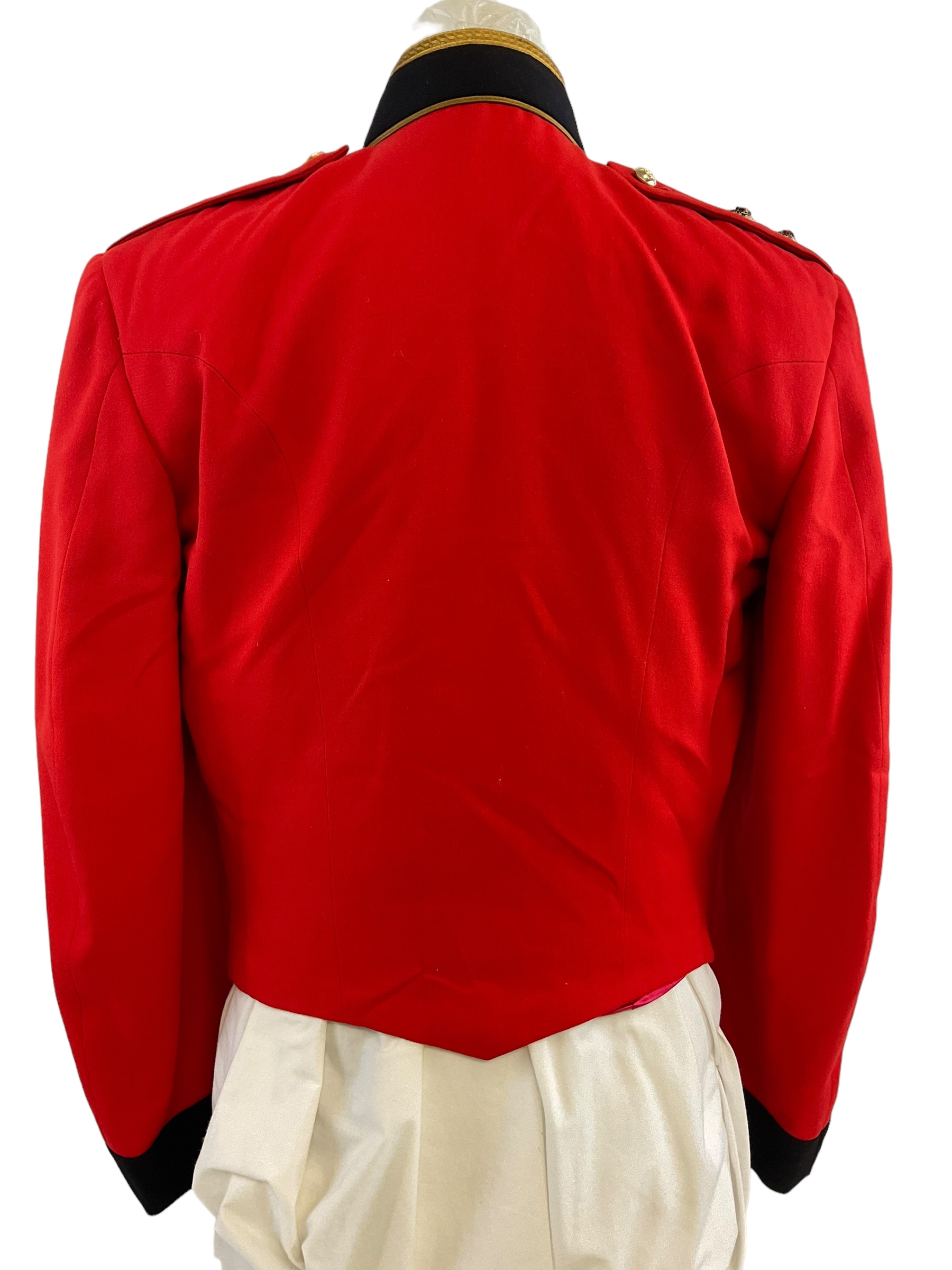 This item is a distinguished Canadian Forces Royal Canadian Army Service Corps (RCASC) Officers Mess Dress Jacket, specifically tailored for a Lieutenant. The jacket embodies the formal elegance and tradition of military dress, designed to be worn at official mess functions and ceremonial occasions. It features high-quality fabric, with meticulously crafted details that showcase the prestigious heritage of the RCASC. The jacket is personalized, bearing the name of the Lieutenant to whom it was originally issued, offering a unique piece of military history. Ideal for collectors, historians, or military enthusiasts, this mess dress jacket not only represents the sartorial standards of the Canadian Forces but also serves as a tangible connection to the individual’s service and the broader legacy of the Corps. Whether displayed in a collection or used for reenactments, this jacket stands as a testament to the pride and professionalism of the Canadian military officers.