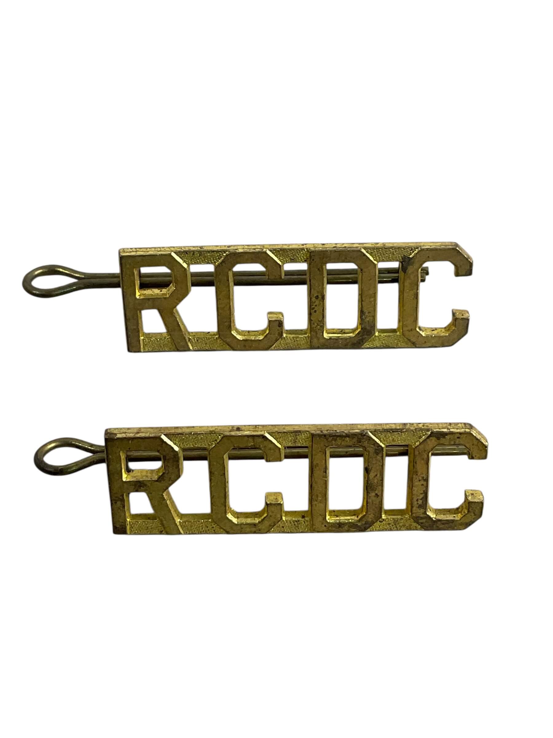 The Canadian Forces RCDC Dental Corps Shoulder Titles Insignia Pair is a set of two matching badges intended for wear on the uniform of personnel within the Royal Canadian Dental Corps (RCDC). These shoulder title insignias are typically constructed from metal or cloth and bear the abbreviated designation “RCDC,” signifying the wearer’s affiliation with the dental branch of the Canadian Forces. The Royal Canadian Dental Corps has provided dental care to Canadian military personnel since its establishment in the early twentieth century. Shoulder titles serve as an important element of Canadian military uniforms, identifying the specific corps or regiment to which an individual belongs. This pair of insignia was likely worn on the shoulder straps of service dress or battledress uniforms during the post-war period or subsequent eras in Canadian military history. Items such as these are of interest to collectors of Canadian military insignia, as well as those studying the organizational history of Canadian military medical services.