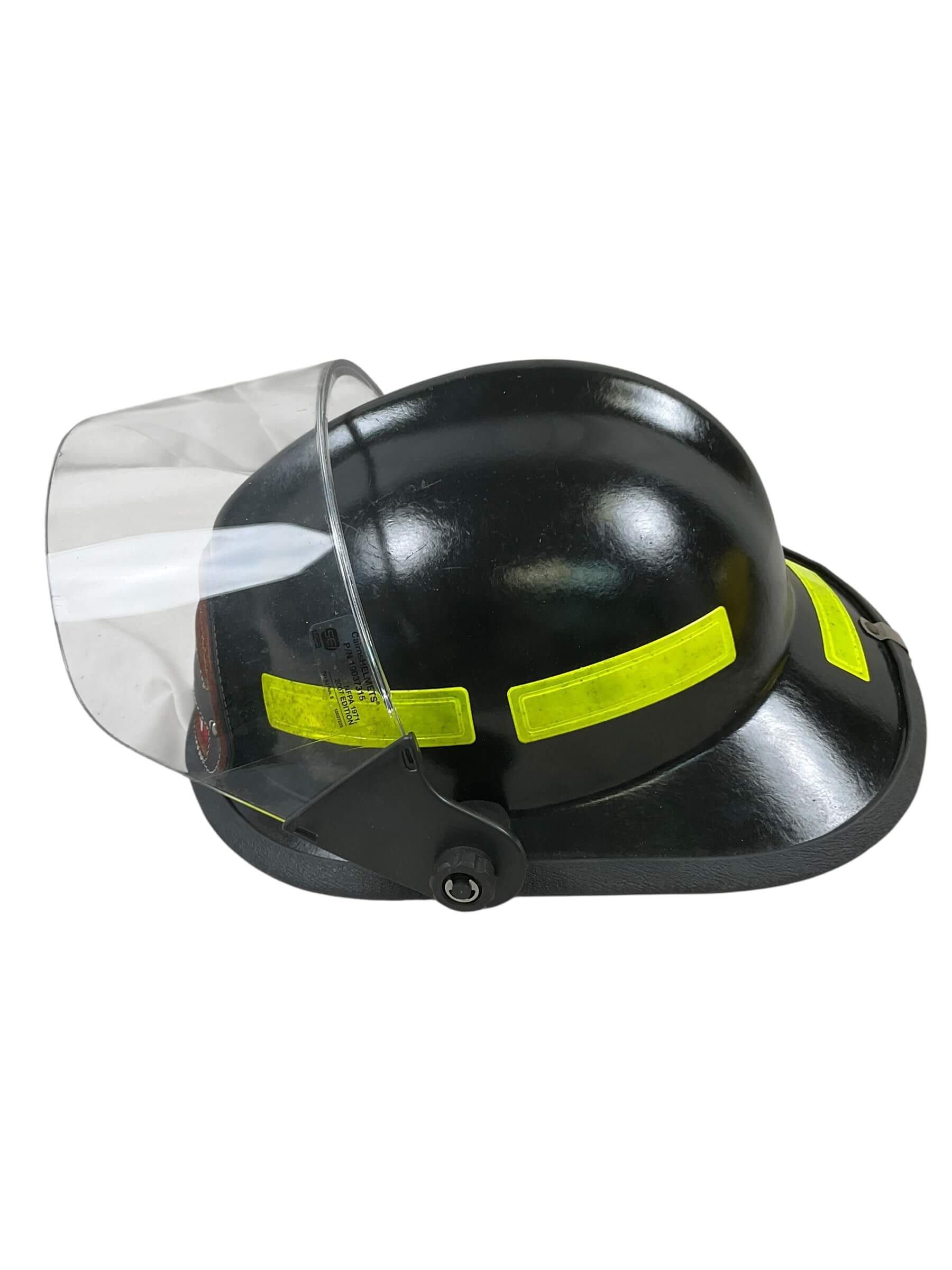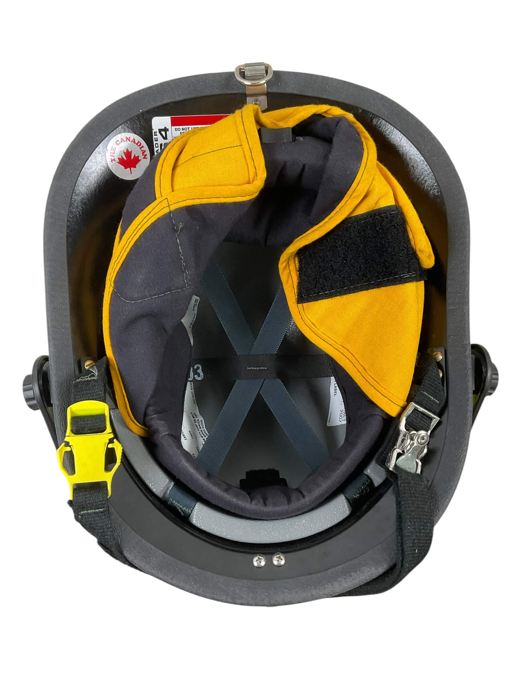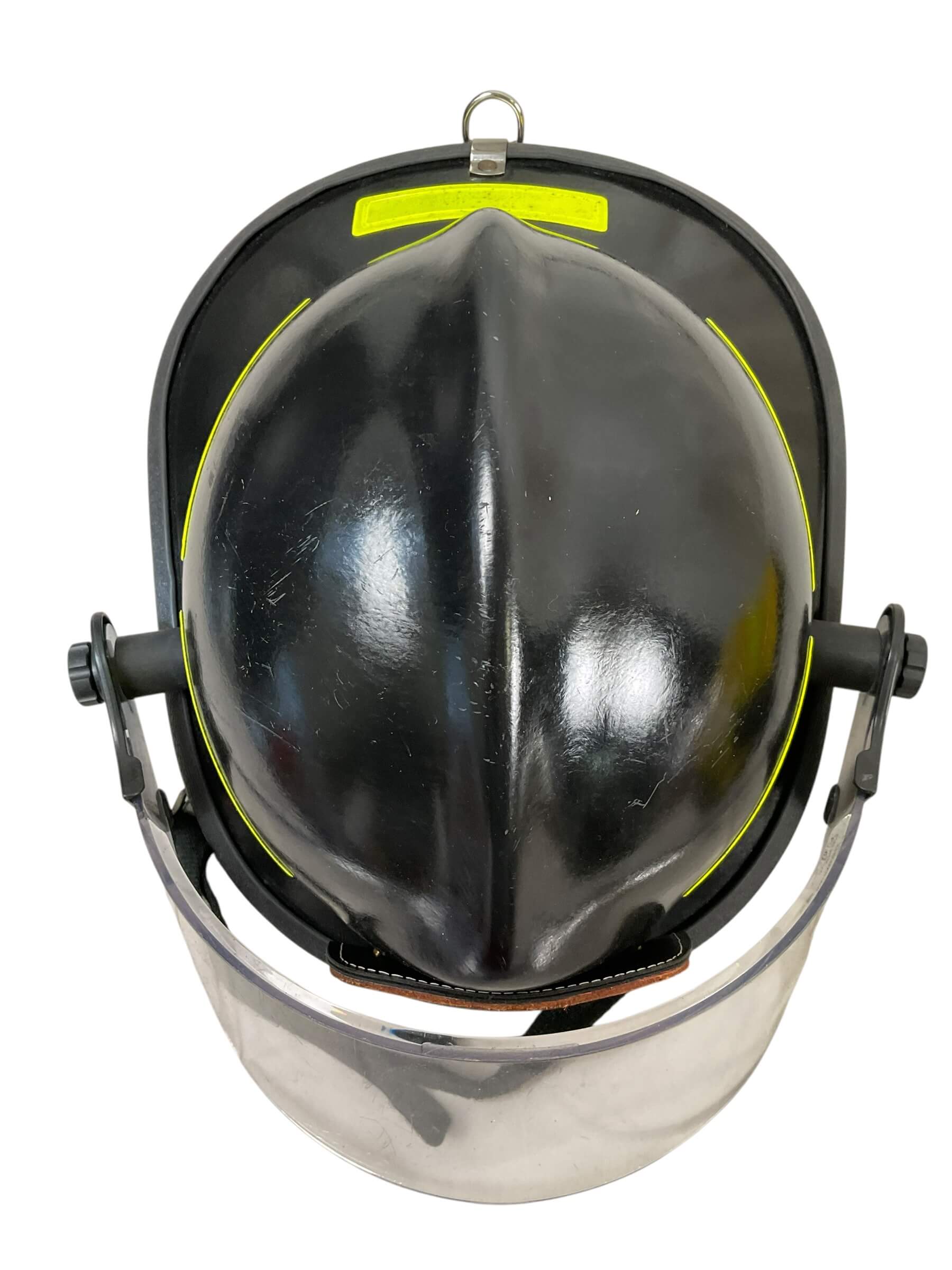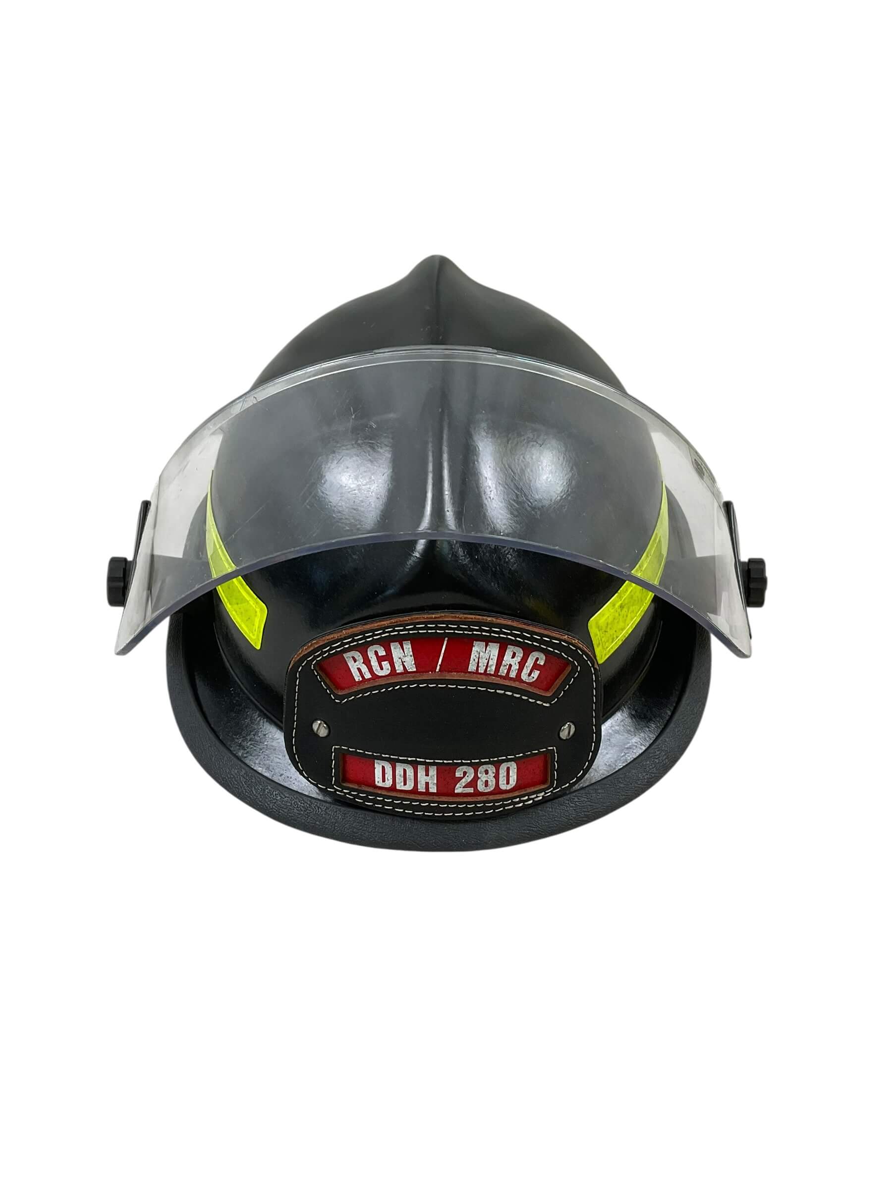 The Canadian Forces RCN Navy Fire Helmet HMCS Iroquois DDH 280 is a specialized piece of protective equipment used by naval personnel aboard the HMCS Iroquois, a guided missile destroyer in service with the Royal Canadian Navy from 1972 to 2015. This helmet was designed specifically for firefighting operations at sea, incorporating a rugged shell constructed from heat-resistant materials to provide protection against heat and impact. The helmet typically features a reinforced visor, adjustable internal suspension, and secure chin strap to ensure stability and safety during emergency scenarios. Markings or labels may be present, indicating its assignment to the HMCS Iroquois (DDH 280), which served in numerous national and NATO operations. Items such as this fire helmet represent the essential gear required for shipboard damage control teams to operate safely and effectively. The helmet’s design follows standards set by military and maritime safety regulations in force during the vessel’s operational period.