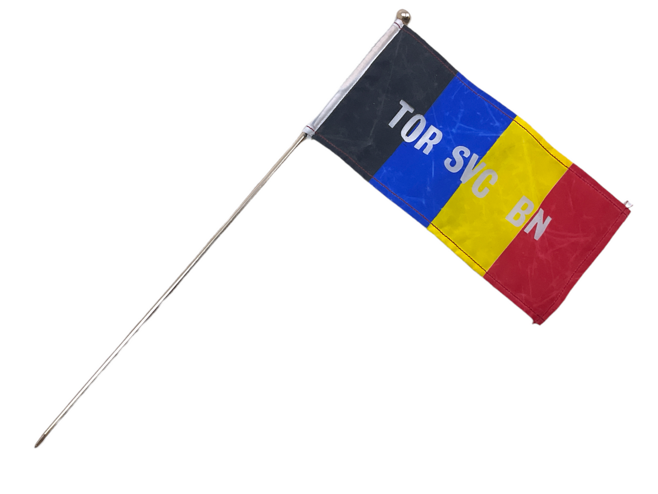 Canadian Forces RCSC Toronto Service Battalion Desk Flag 11 inch pole 6 x 2 inch flag appx The **Canadian Forces RCSC Toronto Service Battalion Desk Flag** is a distinguished emblem that showcases pride and dedication of the Toronto Service Battalion. Measuring approximately 6 x 2 inches, this elegantly designed flag is perfect for display on desks, shelves, or workspaces. It stands tall on an 11-inch pole, making it a noticeable yet unobtrusive addition to your environment. The flag features the official insignia and colors associated with the Toronto Service Battalion, reflecting a deep sense of heritage and honor. Whether you have served with the battalion, are a proud family member, or simply wish to show your support for the Canadian Forces, this desk flag is a meaningful and symbolic item. Ideal for offices, homes, or as part of a collection, the Canadian Forces RCSC Toronto Service Battalion Desk Flag is a tribute to the men and women who serve their nation with courage and commitment.