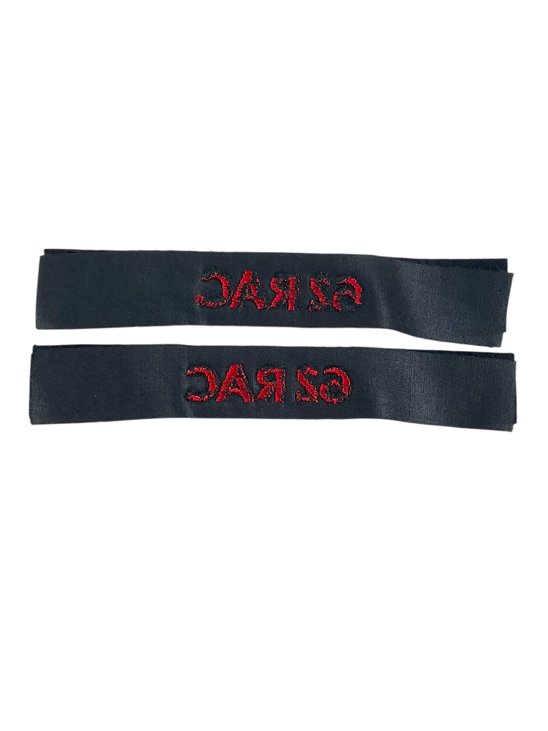 The Canadian Forces School of Artillery (CFSA) RCA Shoulder Titles Insignia Pair is a set of cloth badges worn by personnel associated with the Canadian Forces School of Artillery, Royal Canadian Artillery (RCA). Each shoulder title features embroidered lettering, typically in yellow or gold thread, reading “CFSA” alongside “RCA” on a contrasting background. These insignia were designed to be attached to the upper sleeves of standard-issue military uniforms, denoting the wearer’s affiliation with the training establishment responsible for artillery instruction within the Canadian Armed Forces. The CFSA, located in Shilo, Manitoba, plays a central role in developing and maintaining artillery doctrine, tactics, and technical skills for Canadian Army personnel. The shoulder titles are an example of modern Canadian military insignia, reflecting the organizational structure and heritage of the RCA. This pair is suitable for those seeking accurate representations of post-unification Canadian Army uniform insignia.