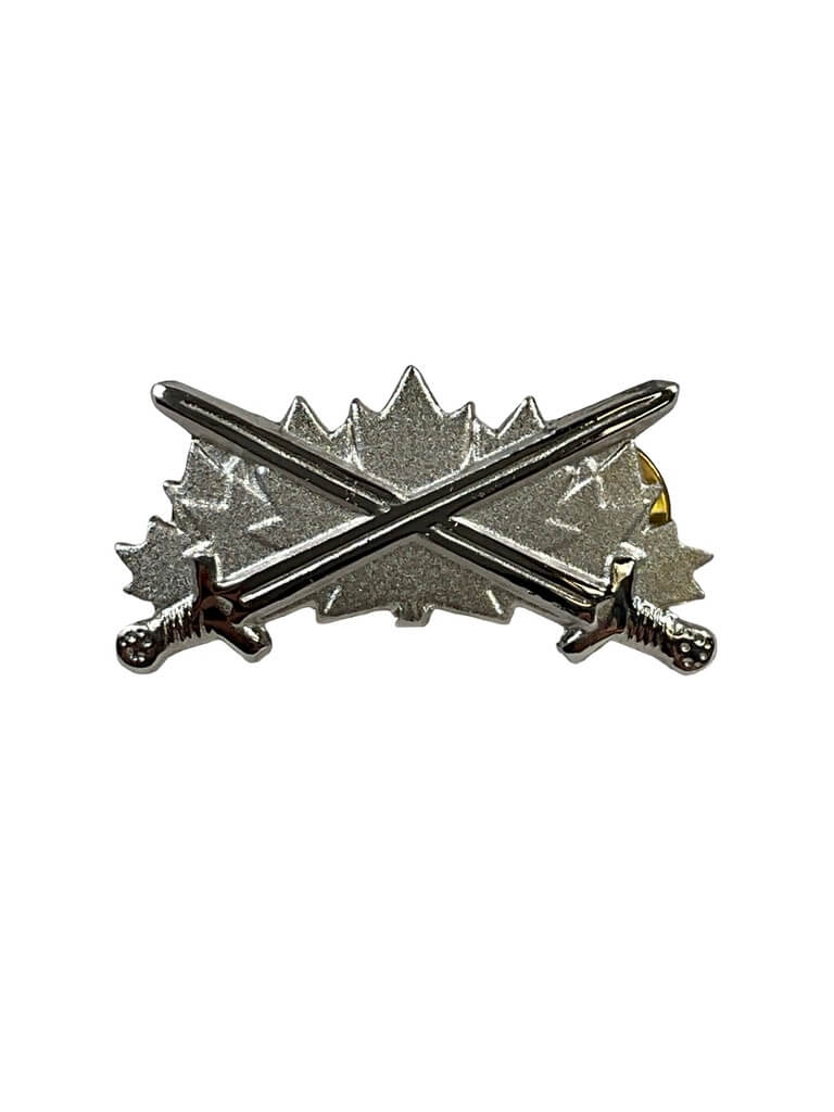 The Canadian Forces Silver Warrior Qualification Badge is an official military insignia awarded within the Canadian Armed Forces. This badge recognizes personnel who have successfully completed advanced training in military athletic and combat-related skills. The design typically features a stylized silver warrior figure in profile, emphasizing attributes of fitness and readiness. Issued as part of the Canadian Forces Professional Development Program, the badge is worn by qualified members on the service dress uniform, subject to specific regulations detailed in Canadian Forces dress instructions. The Silver Warrior Badge serves as a symbol of achievement in the Warrior program, which promotes physical ability and operational preparedness among service members. The item offered reflects the official pattern authorized for use by the Canadian Forces during its period of issue. Collectors and historians regard the badge as a representative artifact of Canadian military training standards in the late 20th and early 21st centuries.