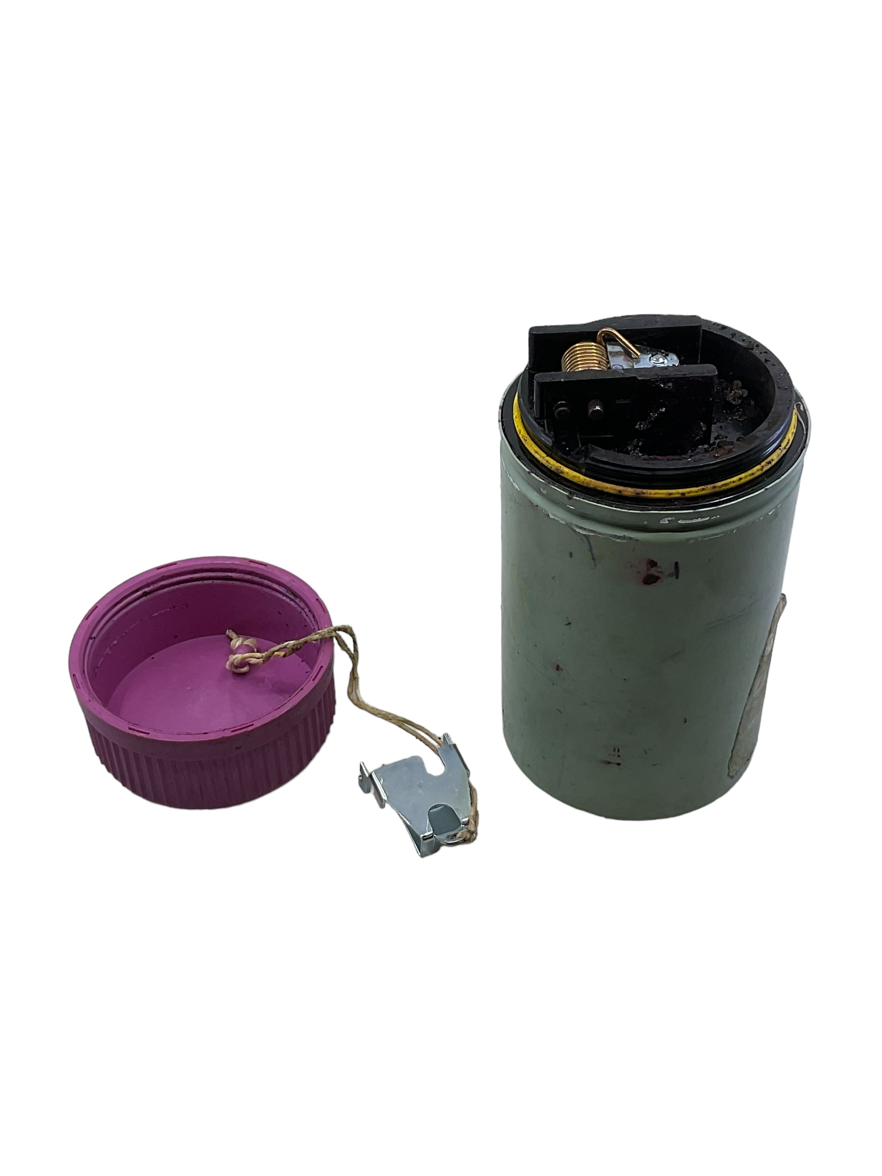 The ‘Canadian Forces Smoke Grenade Hand Purple INERT’ is a meticulously crafted replica of an authentic Canadian Forces smoke grenade, designed for training or display purposes. This inert grenade is a non-functional, safe-to-handle version that mirrors the exact size, shape, and weight of its active counterpart, providing a realistic feel. The distinct purple smoke coloration signifies its use in various signaling and marking operations during military exercises. Constructed with high-quality materials, this replica features accurate detailing, including the safety lever and pull-ring mechanism, making it an excellent educational tool for military training scenarios. It can also serve as a unique collectible item for enthusiasts of military memorabilia, offering a tangible connection to the equipment used by the Canadian Forces. Whether for instructional demonstrations or as part of a curated display, the Canadian Forces Smoke Grenade Hand Purple INERT represents a perfect blend of authenticity and safety.
