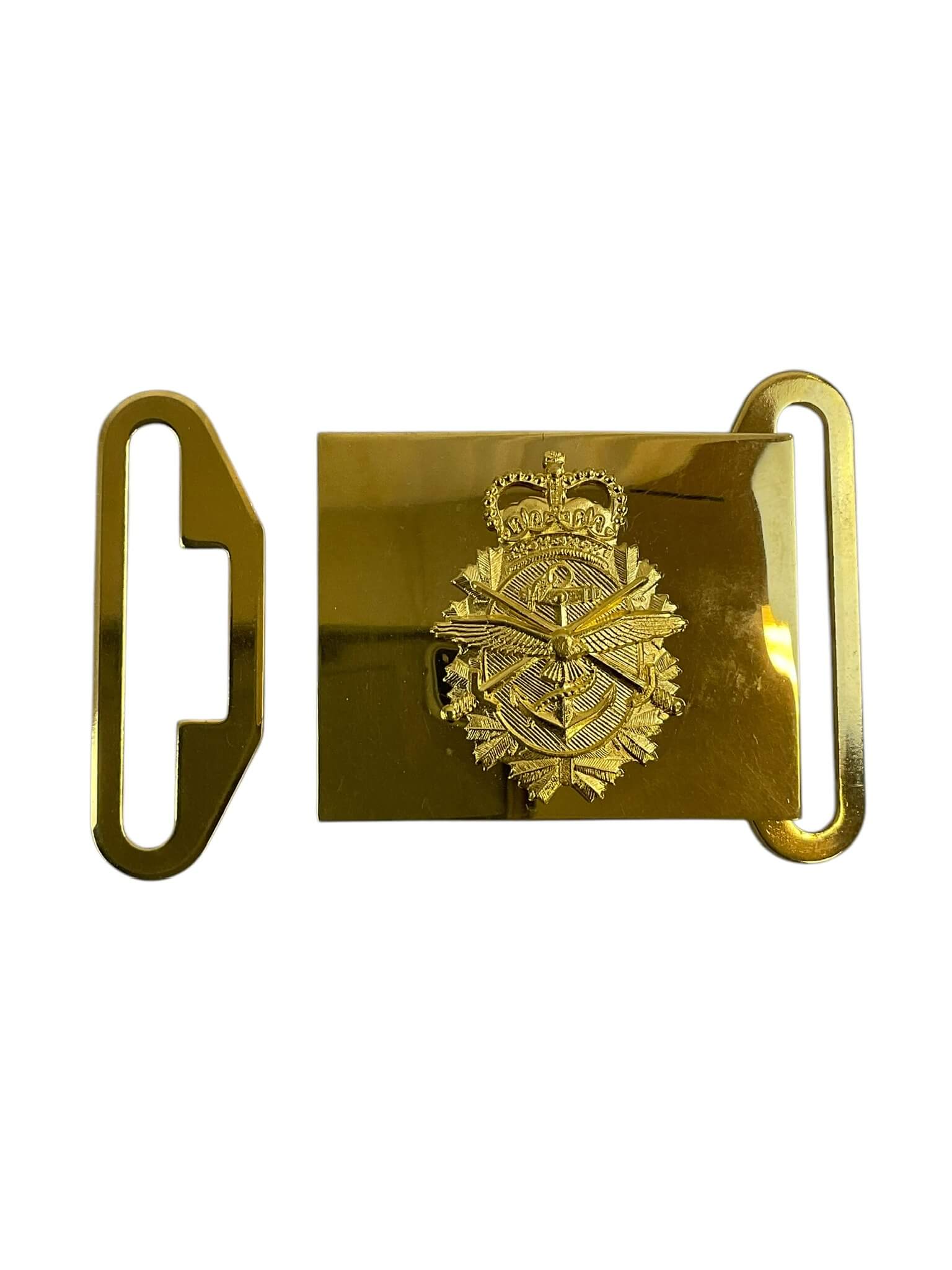 The ‘Canadian Forces Tri-Service Belt Buckle’ is a distinctive accessory that represents the unity and valor of Canada’s tri-services – the Royal Canadian Navy, the Canadian Army, and the Royal Canadian Air Force. It is meticulously crafted from durable, high-quality metal to ensure long-lasting use. The buckle prominently features the iconic crests of the three services, a proud testament to Canada’s strong defense forces. The detailed engravings and polished finish give it a striking, sophisticated look. It serves as a symbol of pride and honor for those who served or are currently serving in the Canadian Forces. This belt buckle is not just a functional accessory but is also a piece of military memorabilia, making it a perfect gift for military enthusiasts, veterans, and active service members.