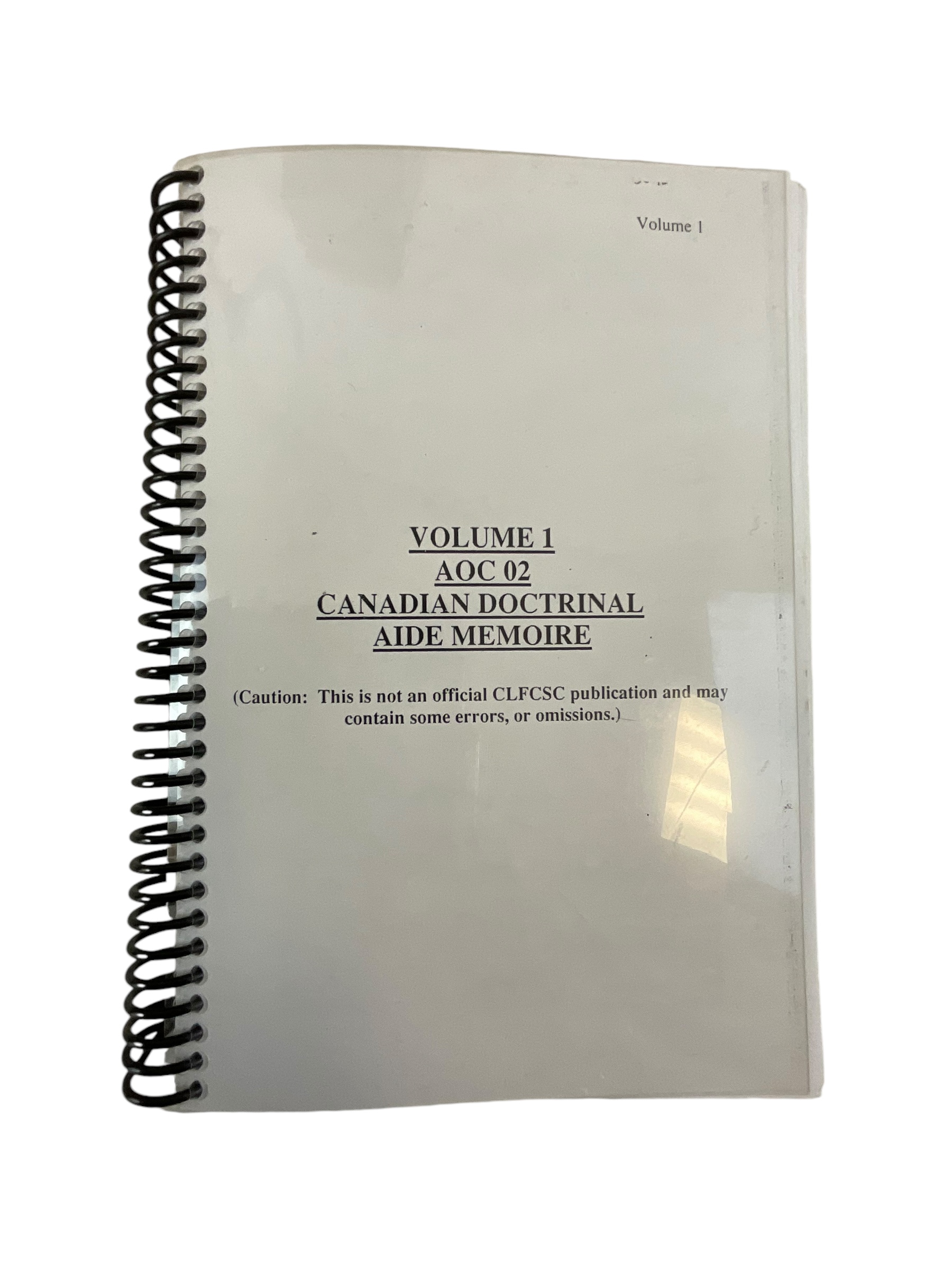 This is a used Canadian Forces Vol 1 AOC 02 Canadian Doctrinal Aide Memoire Softcover Reference Book. Total of approx 200 pages with lots of pictures and information.