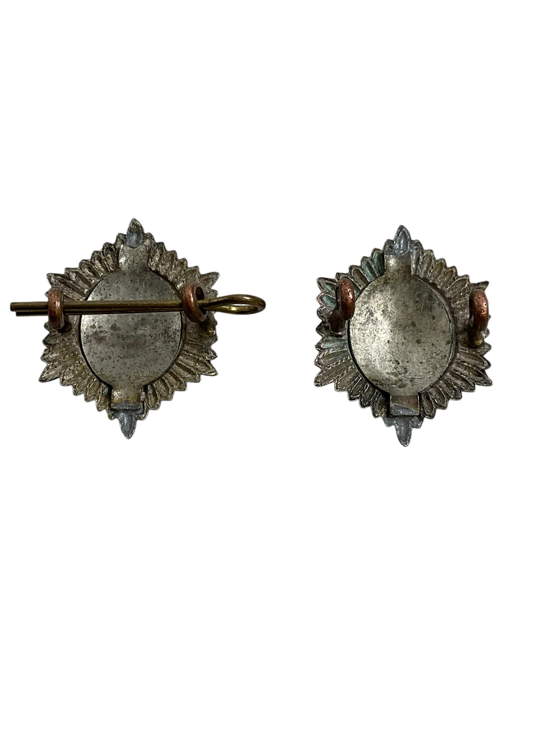 This pair of Canadian Governor General’s Foot Guards Officers Collar Insignia is an exquisite set of military collectibles. Dating back to the heritage of the Canadian Armed Forces, these insignias were worn by the officers of the prestigious Governor General’s Foot Guards. Each piece is meticulously crafted, reflecting the high standards of the Canadian military. The insignias depict the iconic symbols of the Foot Guards, showcasing the intricate details in a striking manner. They are made of durable material to withstand the test of time. These insignias are more than just pieces of military regalia; they are a part of Canada’s rich history. Whether you are a collector of military memorabilia or a history enthusiast, these collar insignias are a must-have. They serve as a testament to the bravery, honor, and dedication of the officers who wore them.