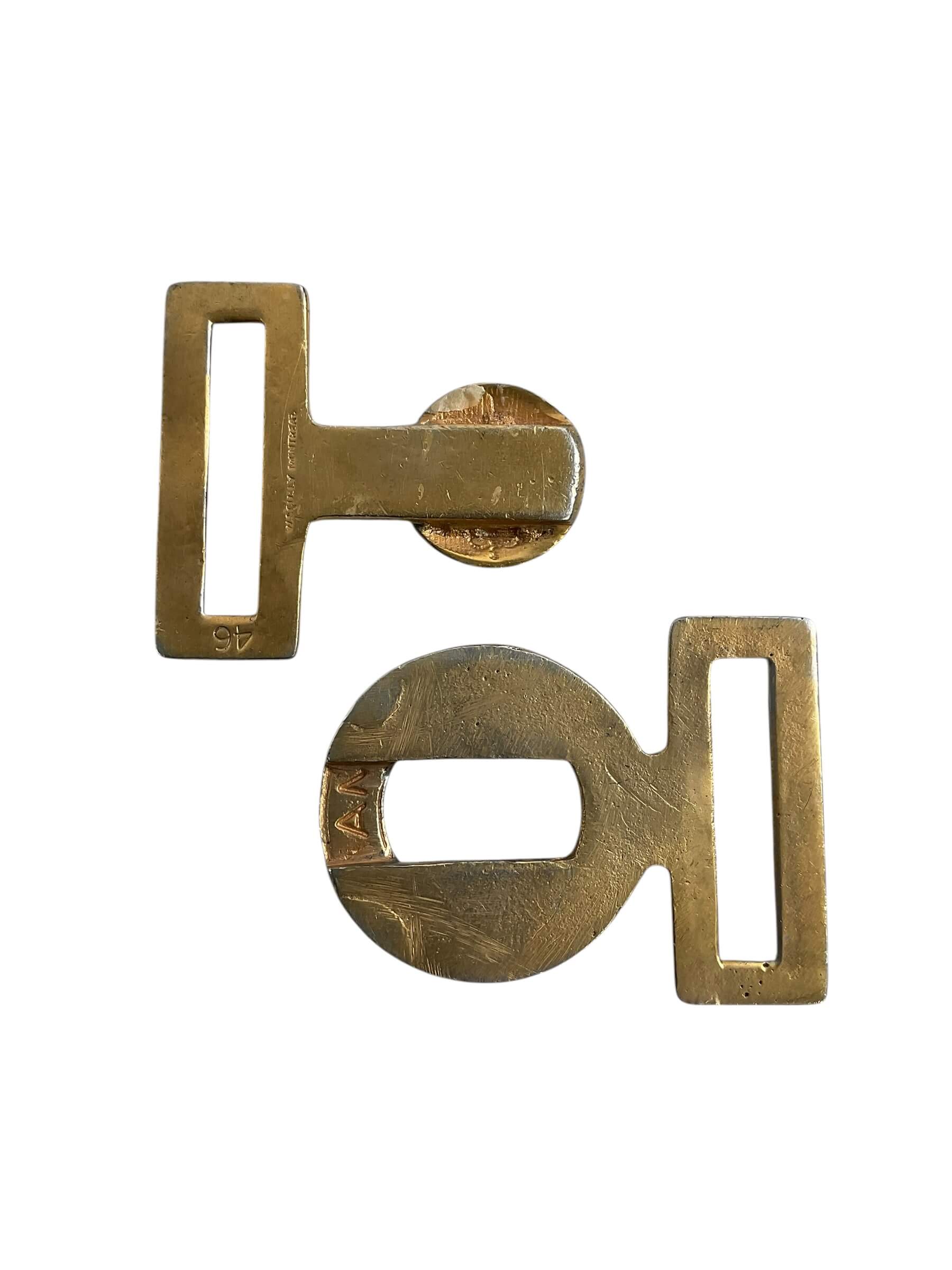 This Canadian Guards Belt Buckle is a striking piece of military memorabilia. Made primarily from brass, the buckle features detailed imagery associated with the Canadian Guards, an infantry regiment of the Canadian Army. Its design showcases the regiment’s crest, featuring the majestic royal lion and crown, exemplifying the Guards’ connection to the monarchy. At the center, the initials ‘CG’ are prominently displayed, standing boldly for ‘Canadian Guards’. The buckle is intricately designed with a balance of both polished and matte finishes, contributing to its antique aesthetic. This robust and durable piece of history serves as a proud symbol of Canada’s military heritage. Its well-preserved condition makes it a valuable asset for any military memorabilia collection, appealing to historians, military enthusiasts, and patriots alike.