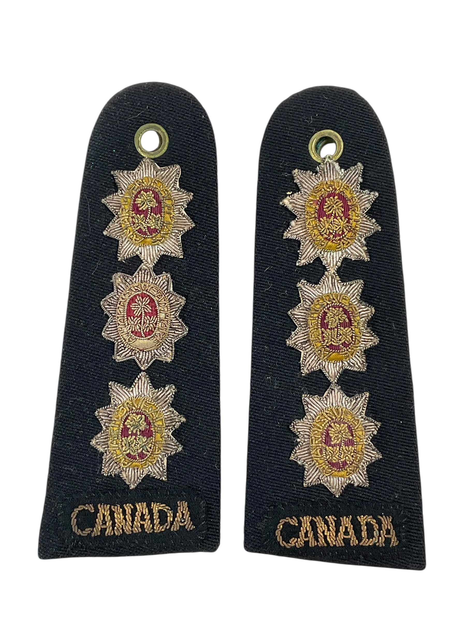 This product features a pair of Canadian Guards Captain Shoulder Boards Insignia, serving as a crucial part of military attire. Each shoulder board is beautifully detailed, showcasing the high rank of a Captain in the Canadian Guards. The insignia presented on these boards embodies the rich history and valor of the Canadian military. Made from durable, high-quality materials, these boards are designed to withstand wear and tear, and retain their stunning appearance. The vibrant colours are meticulously embroidered, ensuring they remain vivid and striking over time. These shoulder boards also come with a secure fastening mechanism for easy attachment. Ideal for collectors, military enthusiasts, or serving personnel, they are an excellent way to display pride and respect for the Canadian Armed Forces.