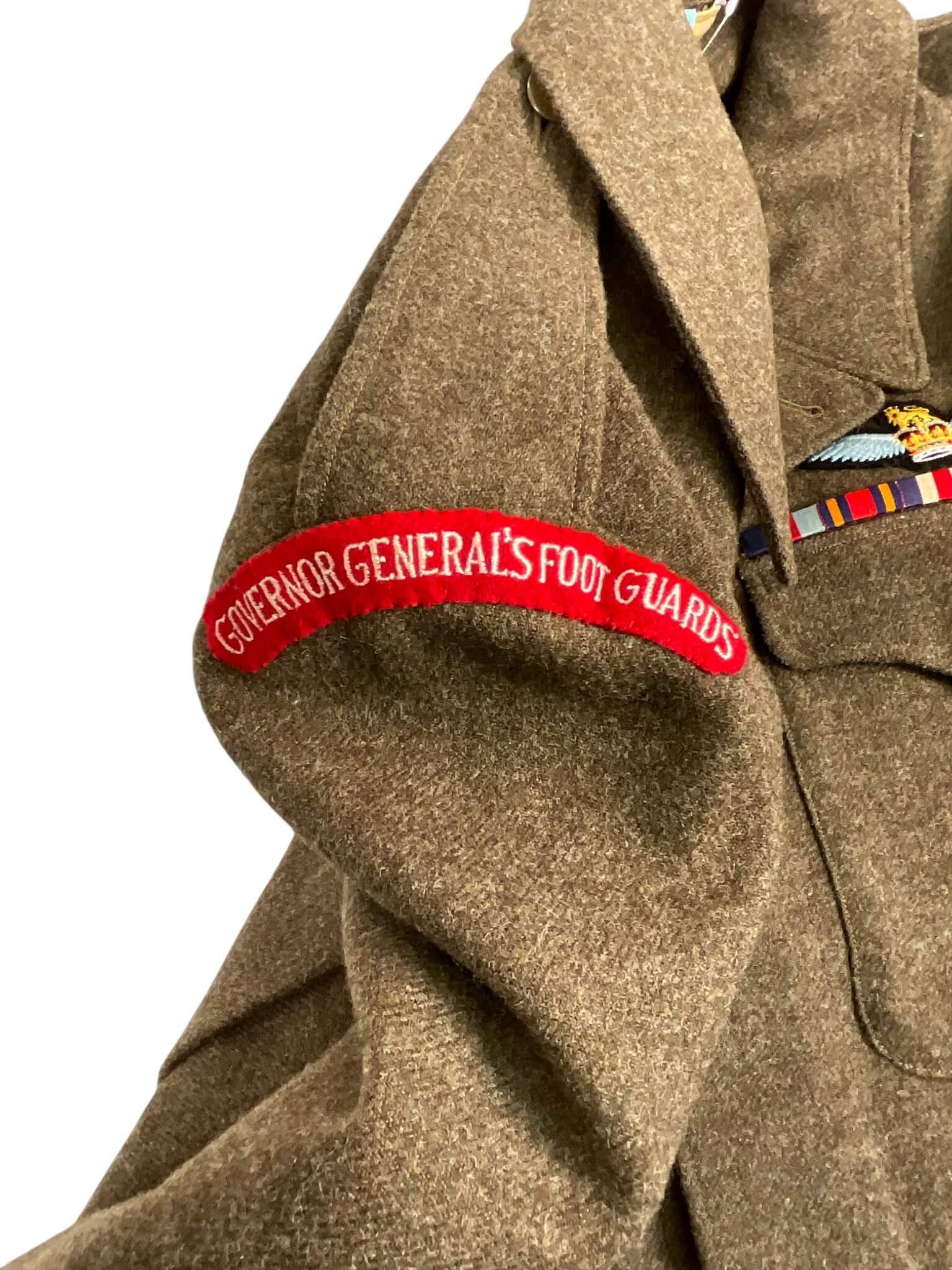This Canadian Guards Named Uniform Grouping relates to a glider pilot involved in the Arnhem and D-Day operations during the Second World War. The ensemble includes the uniform worn by a member of the Canadian Guards, bearing identifying insignia and service details specific to its original owner. Components typically consist of a tunic with badges, glider pilot qualification wings, and campaign ribbons associated with participation in major airborne operations
