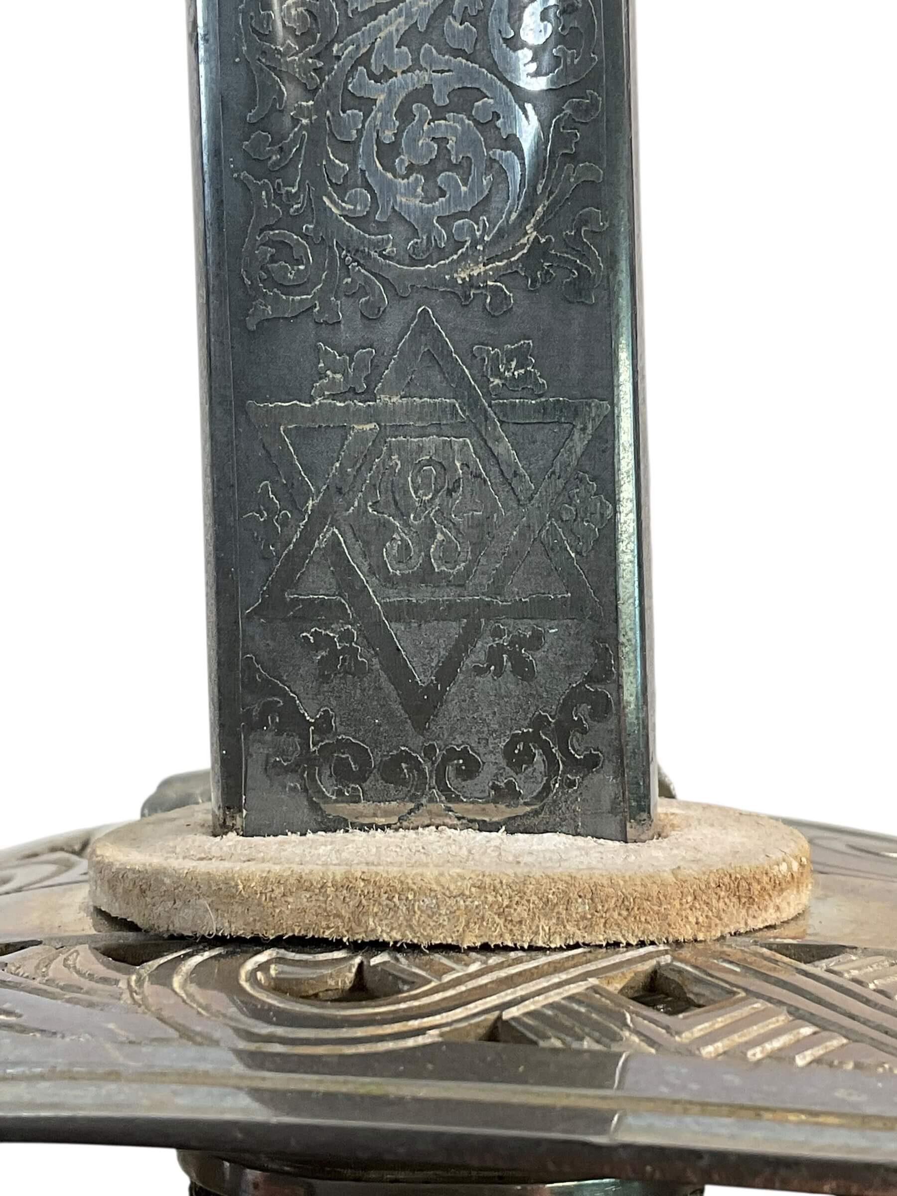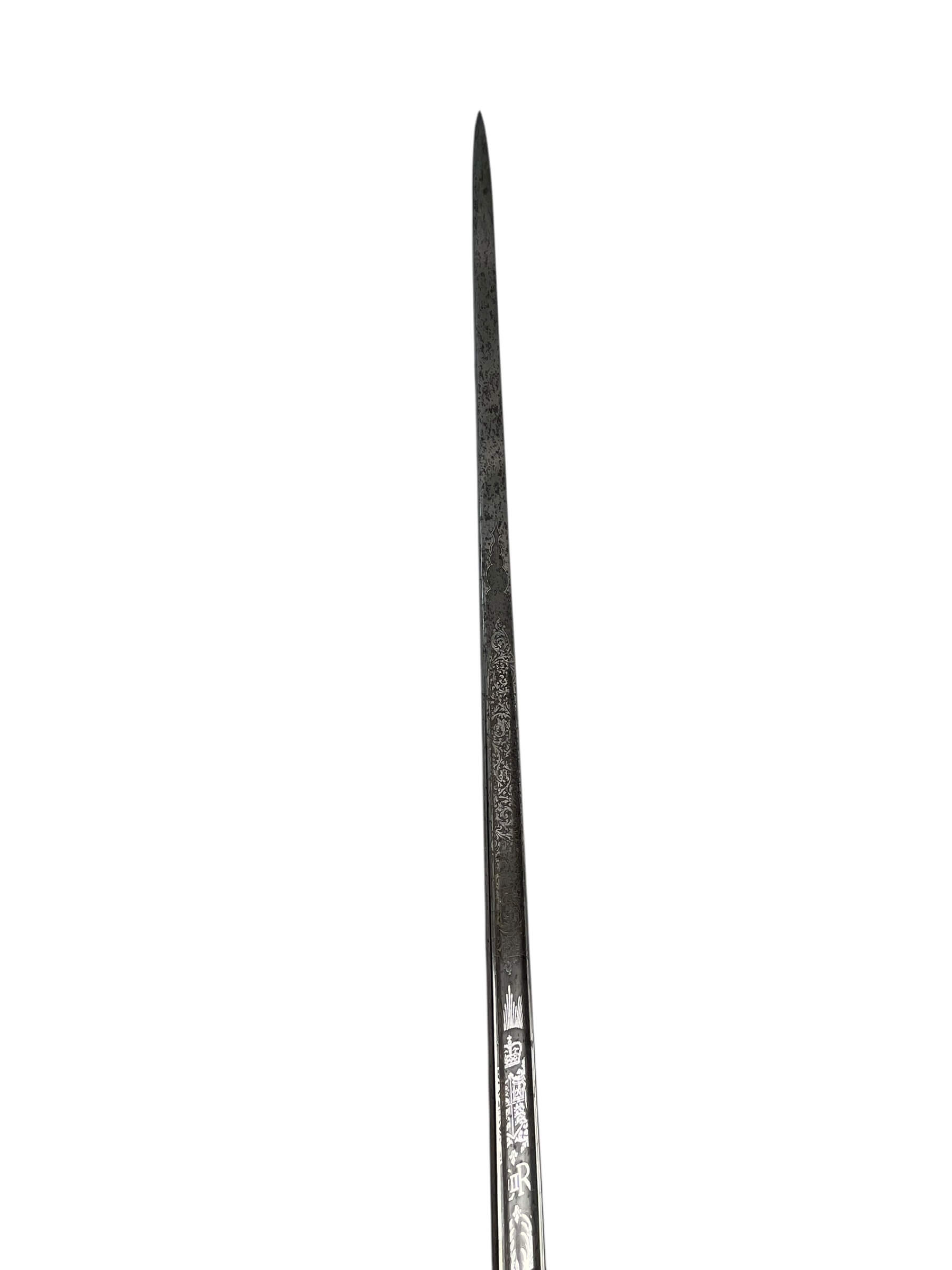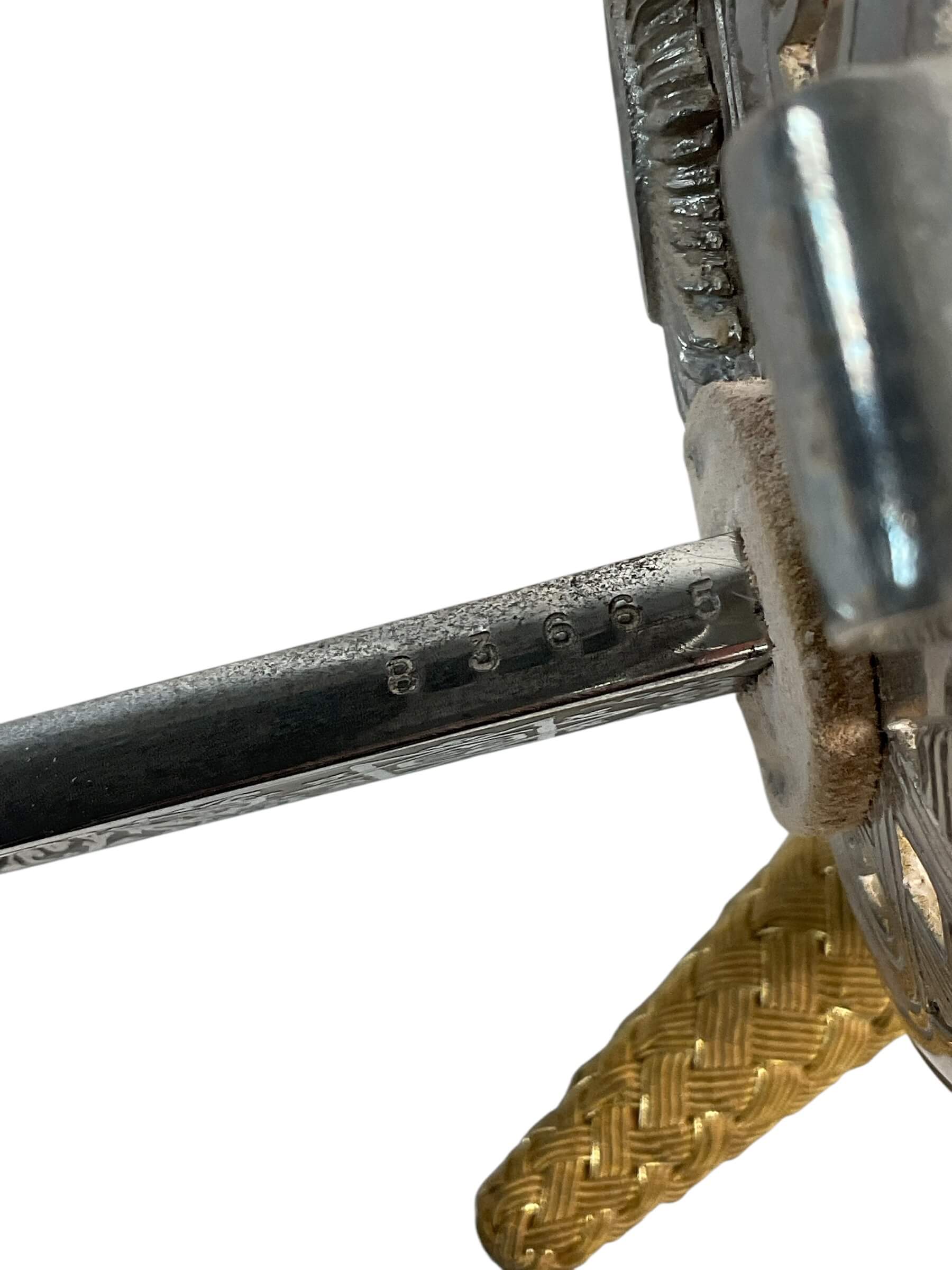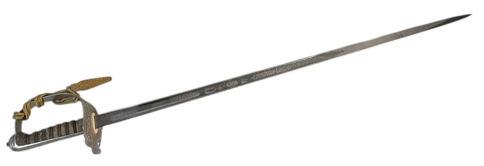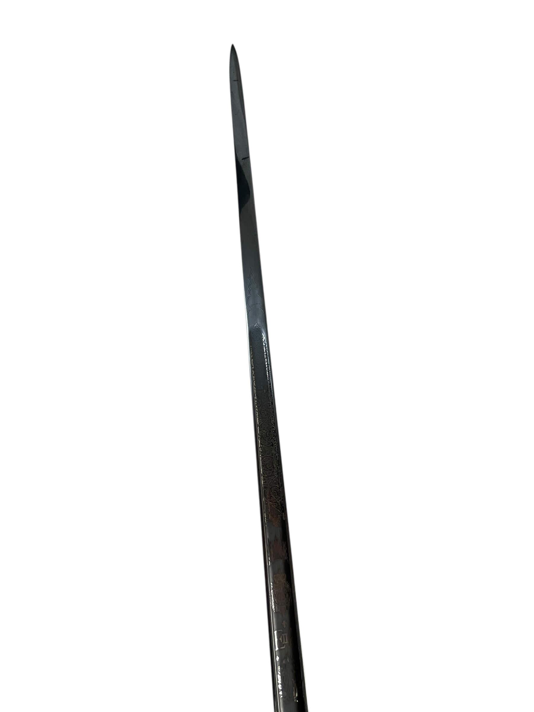The Canadian Guards Officers Sword Without Scabbard is a ceremonial military sword attributed to Wilkinson, a renowned British sword maker, and is linked to Lt. Col. Brocklehurst of the Airborne Regiment. This piece exemplifies the standard dress sword carried by commissioned officers of the Canadian Guards, a regiment established in 1953 as part of the Canadian Army. The sword features a straight, double-edged steel blade with etched regimental motifs, as typically produced by Wilkinson for military use. The guard follows the classic British infantry pattern, incorporating a pierced, nickel-plated steel hilt and grip often adorned with wire wrapping for enhanced grip and presentation. The blade and hilt show design elements specific to Canadian Guards officers’ swords from the mid-20th century. The scabbard is not included with this item. Such swords were intended primarily for ceremonial functions rather than combat, reflecting the traditions and regalia of the regiment and its history within the Canadian military.