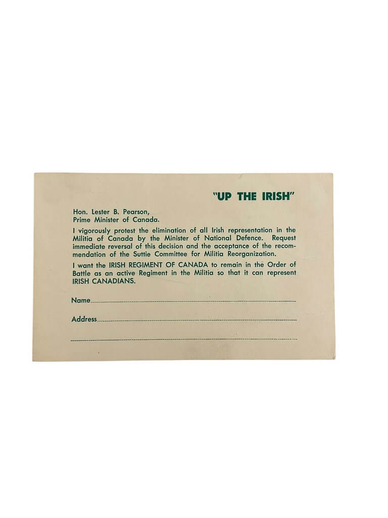 Canadian Irish Regiment of Canada Propaganda Postcard 5 1/2″ X 3 1/2″