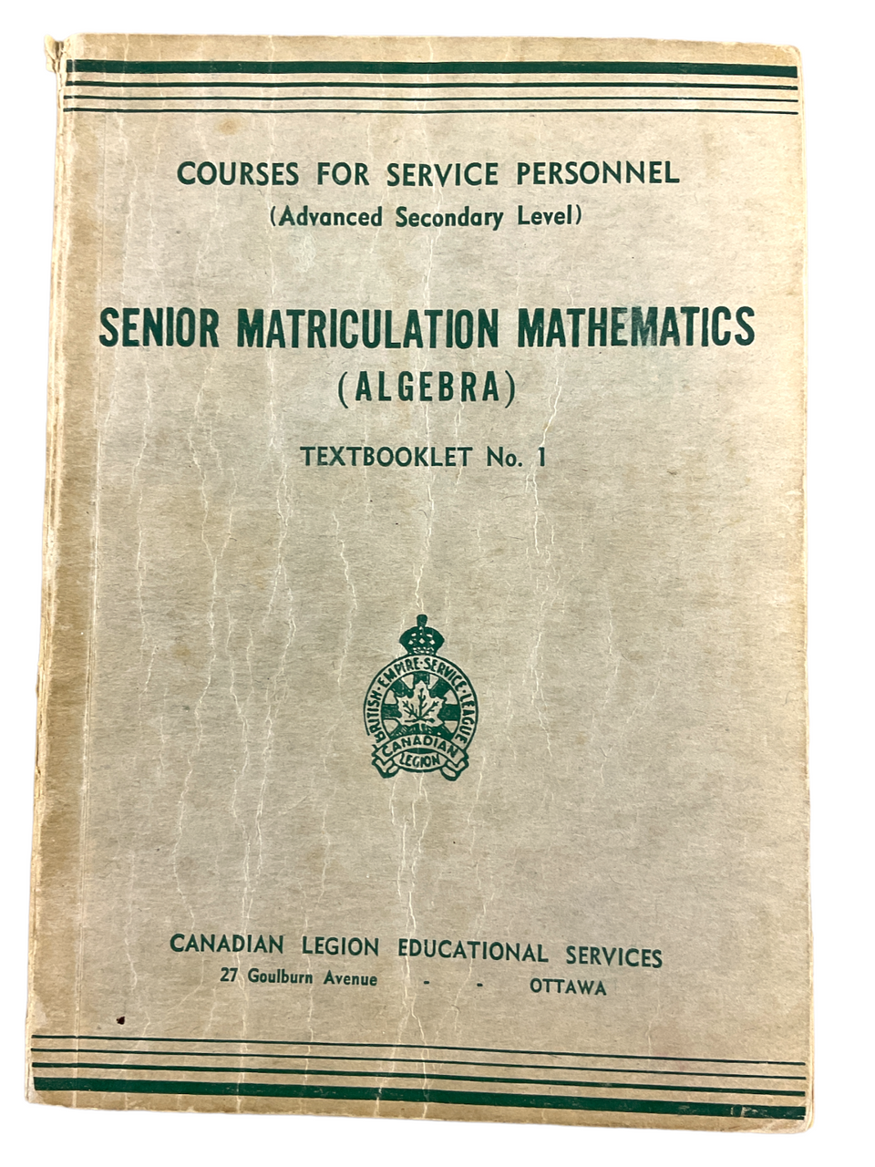 Canadian Legion Educational Services Senior Math’s ALGEBRA No1 SC Reference Book