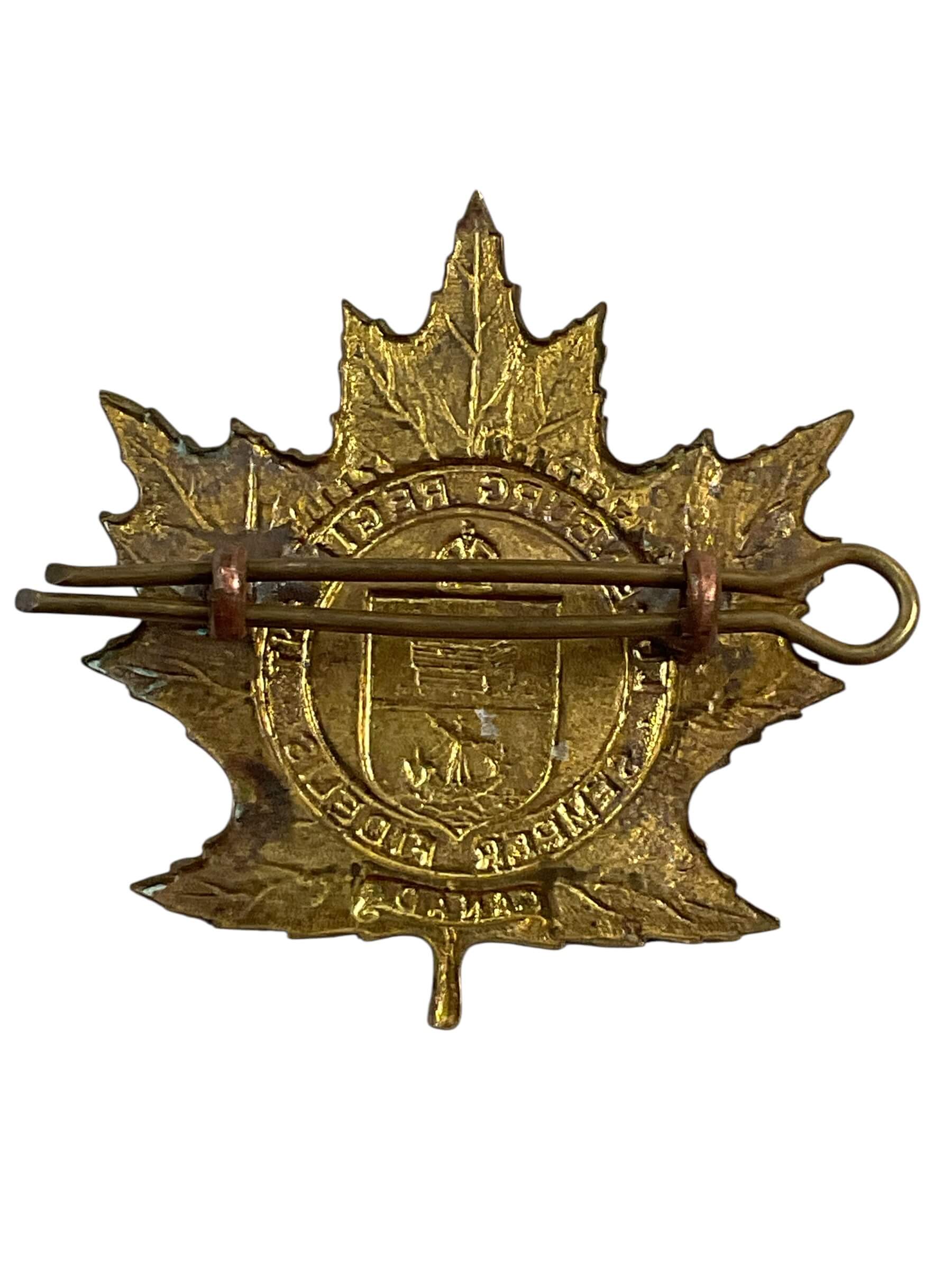 The Canadian Lunenburg Regiment Cap Badge is a metal insignia historically worn by members of the Lunenburg Regiment, a Canadian militia unit. This badge incorporates the regiment’s distinctive emblem, typically featuring the name and unique symbols associated with its geographical origins in Lunenburg, Nova Scotia. The design often includes a maple leaf, crown, or other heraldic elements relevant to Canadian military traditions. Such badges were commonly issued during the late 19th and early 20th centuries, serving as a form of identification and esprit de corps for regiment members. The cap badge was affixed to headdress, such as service caps or berets, in accordance with standard military dress regulations. These artifacts are of interest to collectors and historians for their association with Canada’s regional military heritage and the broader organization of the Canadian Militia prior to the unification of the Canadian Armed Forces. A piece like this offers insight into historical regimental identity and military dress practices.