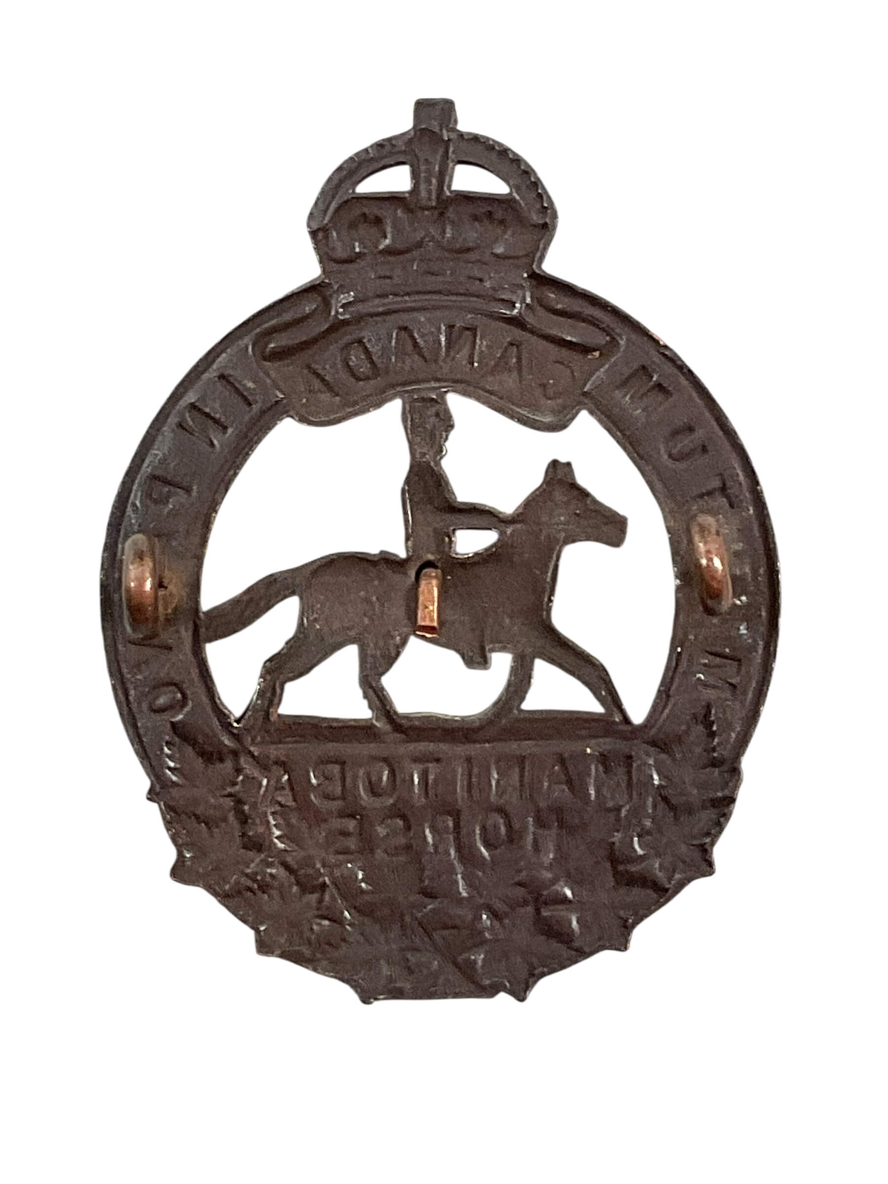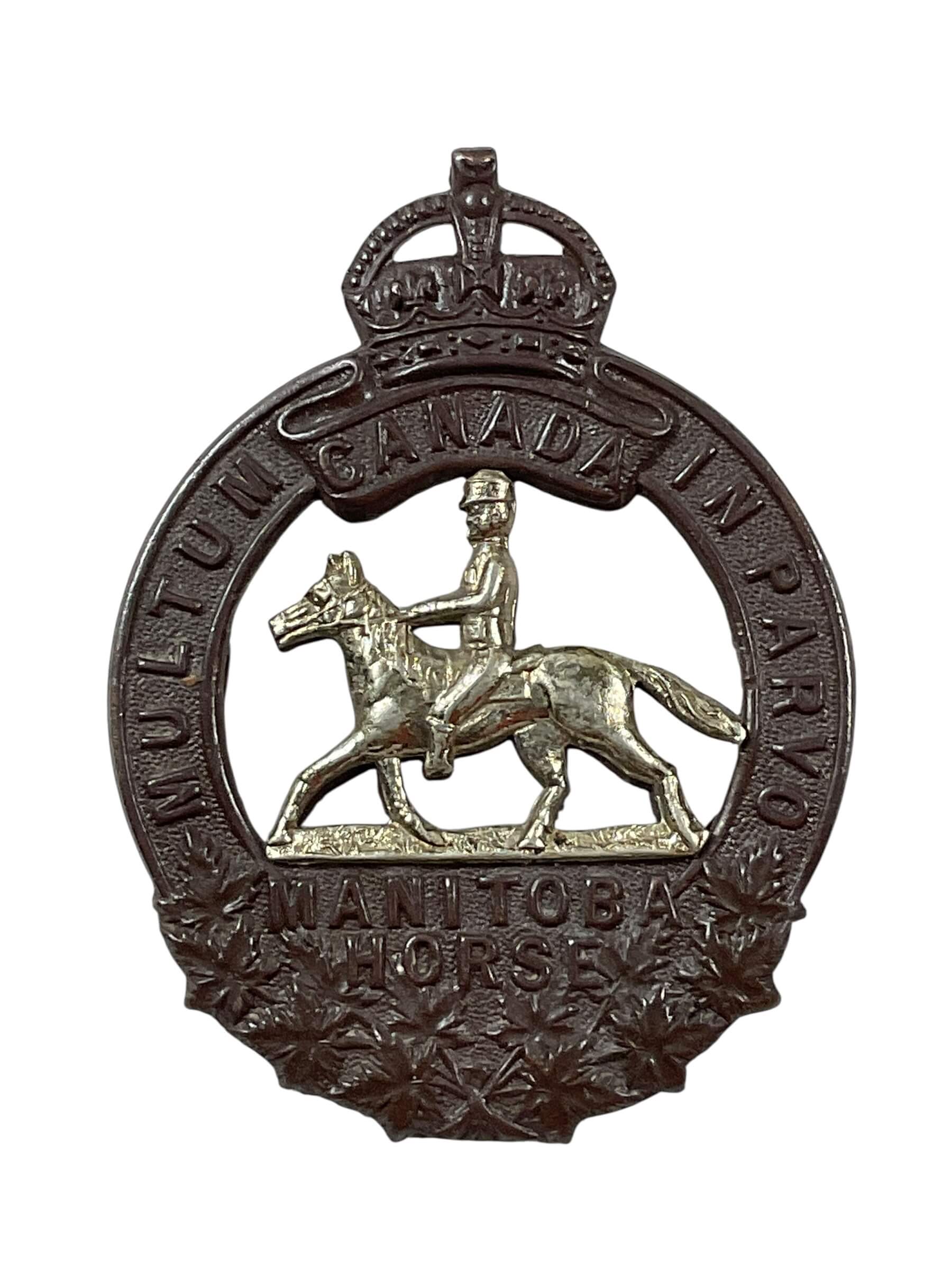 The Canadian Manitoba Horse Cap Badge is a military insignia associated with The Manitoba Horse, a cavalry regiment of the Canadian Militia. Established in 1912, The Manitoba Horse played a role in domestic duties during the First World War before being amalgamated with The Fort Garry Horse in 1936. The cap badge typically features a prancing horse over a scroll inscribed with the regiment’s name, often accompanied by a crown symbolizing service to the Crown. Constructed from brass or bi-metal, such badges were worn on the headdress as a mark of regimental identity and distinction. The detailed design reflects the unit’s mounted heritage and is characteristic of early 20th-century Canadian cavalry insignia. This badge offers insight into Canadian military history and the traditions of pre-unification regiments that contributed to the country’s defense structure in the early 1900s.
