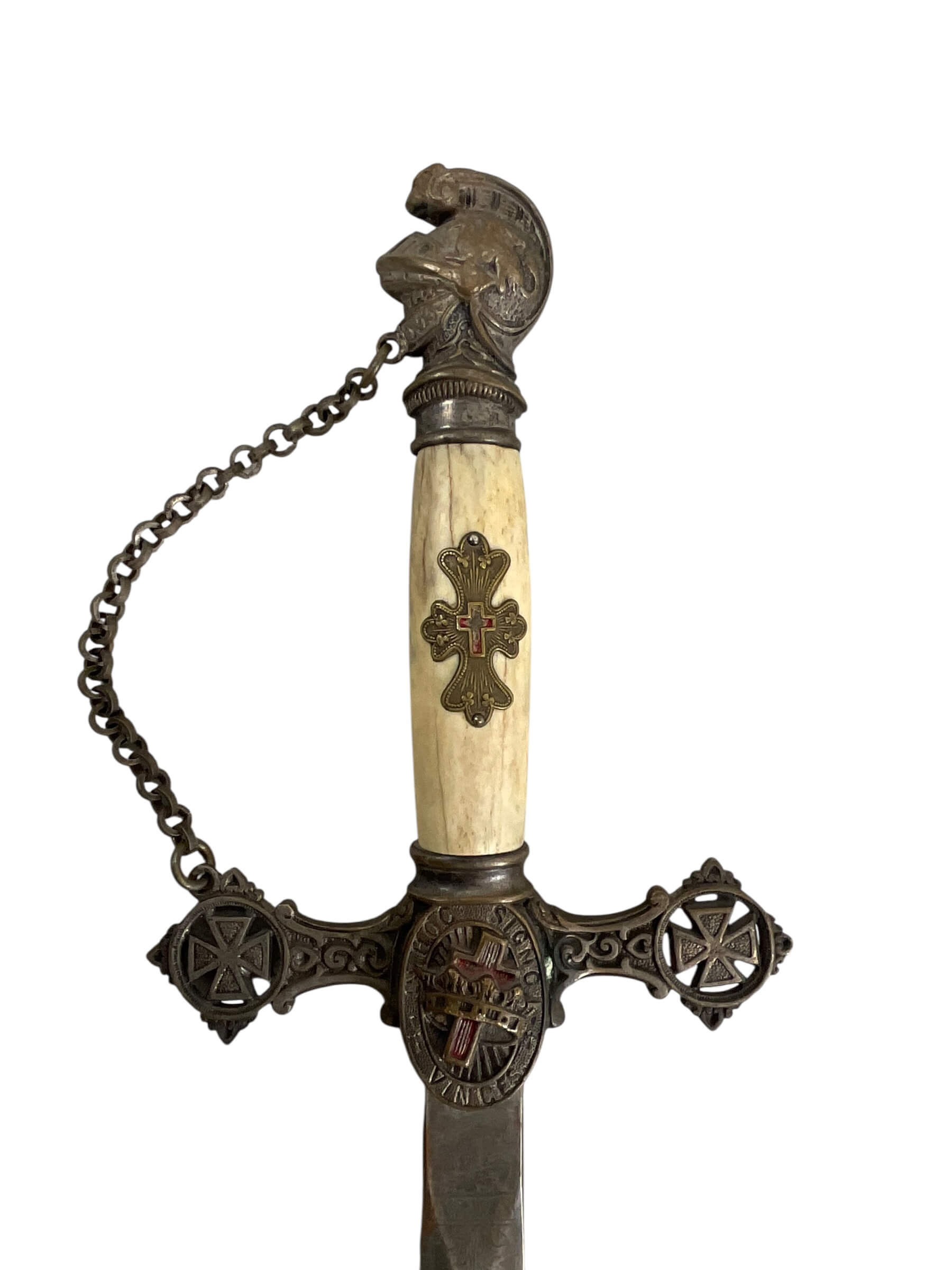This Canadian Masonic Sword with Scabbard is a captivating piece of Freemasonry history, embodying the rich traditions and rituals of the Masonic fraternity in Canada. The sword’s intricate design features the iconic symbols of Masonry, including the square and compass, which are deeply engraved into the metal. The blade, crafted from high-grade steel, showcases superior craftsmanship and durability, while the hilt, adorned with ornate detailing, adds a touch of elegance and sophistication. The accompanying scabbard, designed to match the sword, enhances the overall appeal of this set. This artifact not only serves as a testament to the ceremonial significance of Freemasonry but also adds a striking aesthetic appeal. It’s a must-have for collectors of Masonic memorabilia or those interested in the intriguing world of Freemasonry.