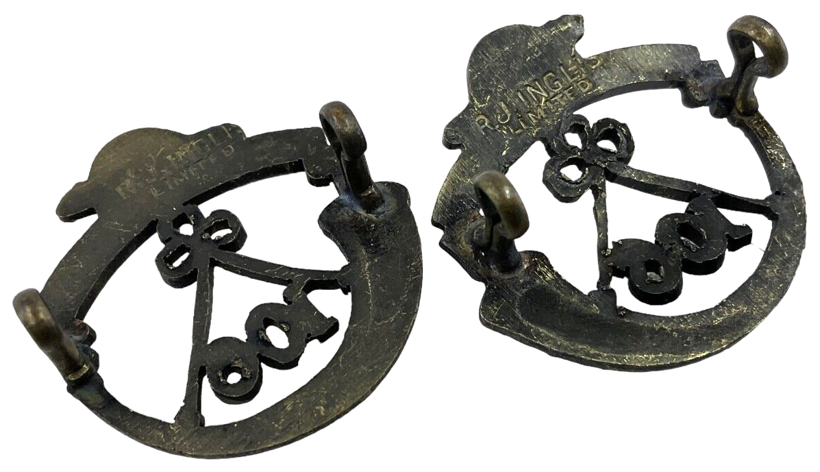 The “Canadian Militia 106th Winnipeg Light Infantry Collar Badge Pair” is a notable collector’s item representing a storied segment of Canada’s military history. These badges, historically worn on the collar of the regiment’s uniforms, symbolize the pride and heritage of the 106th Winnipeg Light Infantry, a distinguished unit within the Canadian Militia. Crafted with intricate detailing, each badge displays unique insignia reflective of the regiment’s identity and regional ties to Winnipeg. Such artifacts not only offer a glimpse into the military traditions and visual aesthetics of the time but also honor the service and legacy of those who served within its ranks. These badges are ideal for military historians, collectors of militaria, and those with a profound interest in Canadian heritage, encapsulating an era of dedication and valor in Canada’s armed forces history.