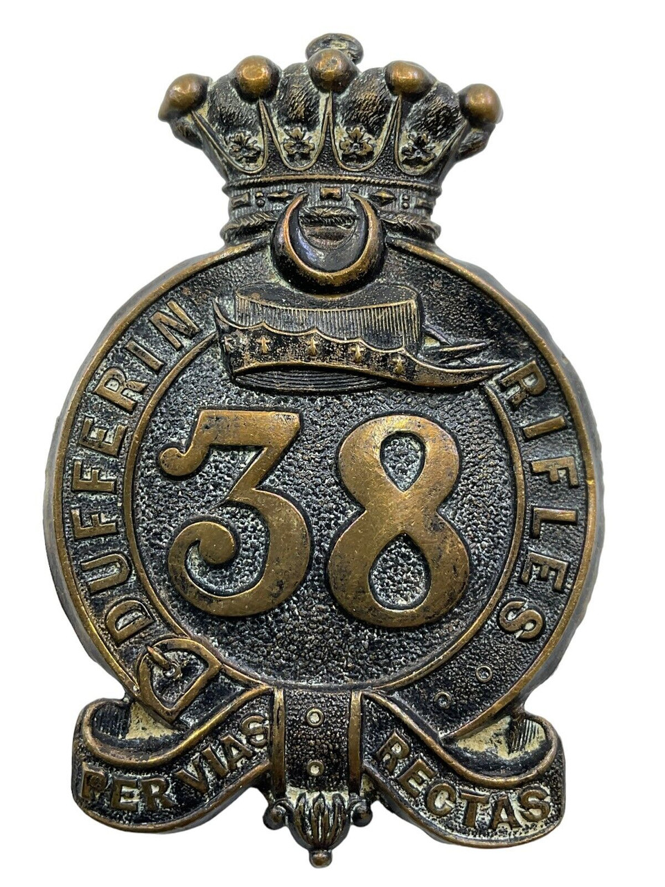 The Canadian Militia 38th Dufferin Rifles Regiment Glengarry Cap Badge is a significant emblem of historical military heritage. This badge, traditionally worn on the iconic Glengarry headdress, symbolizes the pride and identity of the 38th Dufferin Rifles Regiment, a unit with deep roots in Canada’s military history. Crafted with intricate detail, the badge features distinctive insignia that reflects the regiment’s valor and legacy. Collectors and historians value this artifact not only for its aesthetic and symbolic qualities but also for its connection to the brave individuals who served in this venerable regiment. Whether displayed in a collection or studied as part of Canada’s rich military tradition, the Glengarry Cap Badge of the 38th Dufferin Rifles Regiment stands as a testament to the courage and dedication of Canadian soldiers.