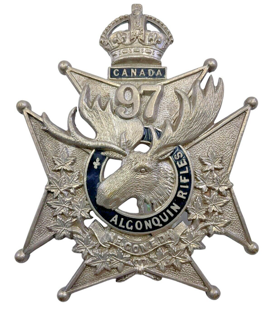 Canadian Militia 97th Algonquin Rifles Officers Helmet Plate