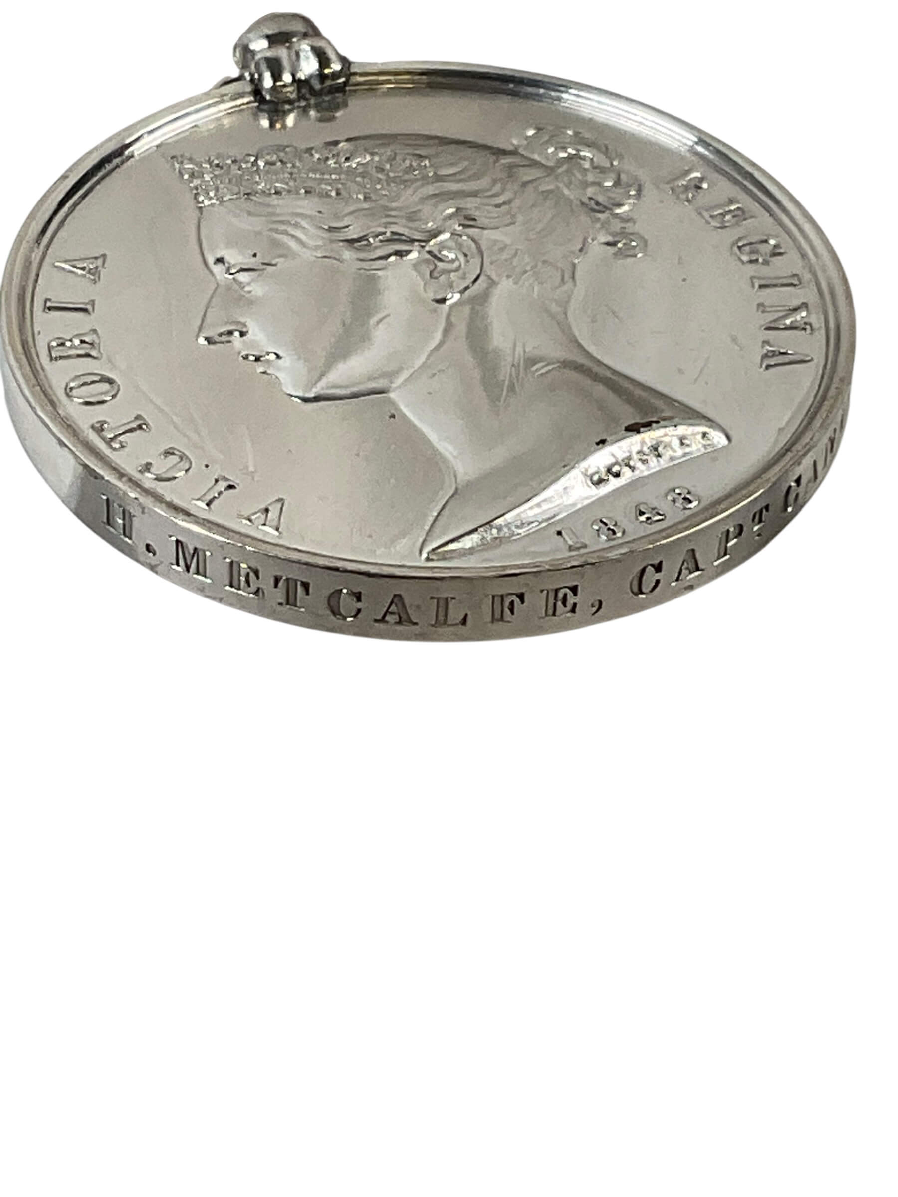 The Canadian Militia Military General Service Meal Fort Detroit Named H. Metcalfe Captain is an artifact associated with Canadian military history during the period of British control in North America. This item is related to the General Service period and is attributed to a Captain H. Metcalfe, reflecting its named provenance. The connection to Fort Detroit situates the artifact within a significant military post, which was under British control from 1760 until its transfer to the United States in 1796. Items such as this were typically issued to militia officers and were integral to daily routines, including communal meals and regimented service. The naming of Captain H. Metcalfe provides added historical relevance, signifying personal ownership and potential links to specific actions or campaigns involving Canadian or British forces of the era. Such objects contribute to understanding military logistics, personnel, and life within North American forts in the late eighteenth to early nineteenth centuries.