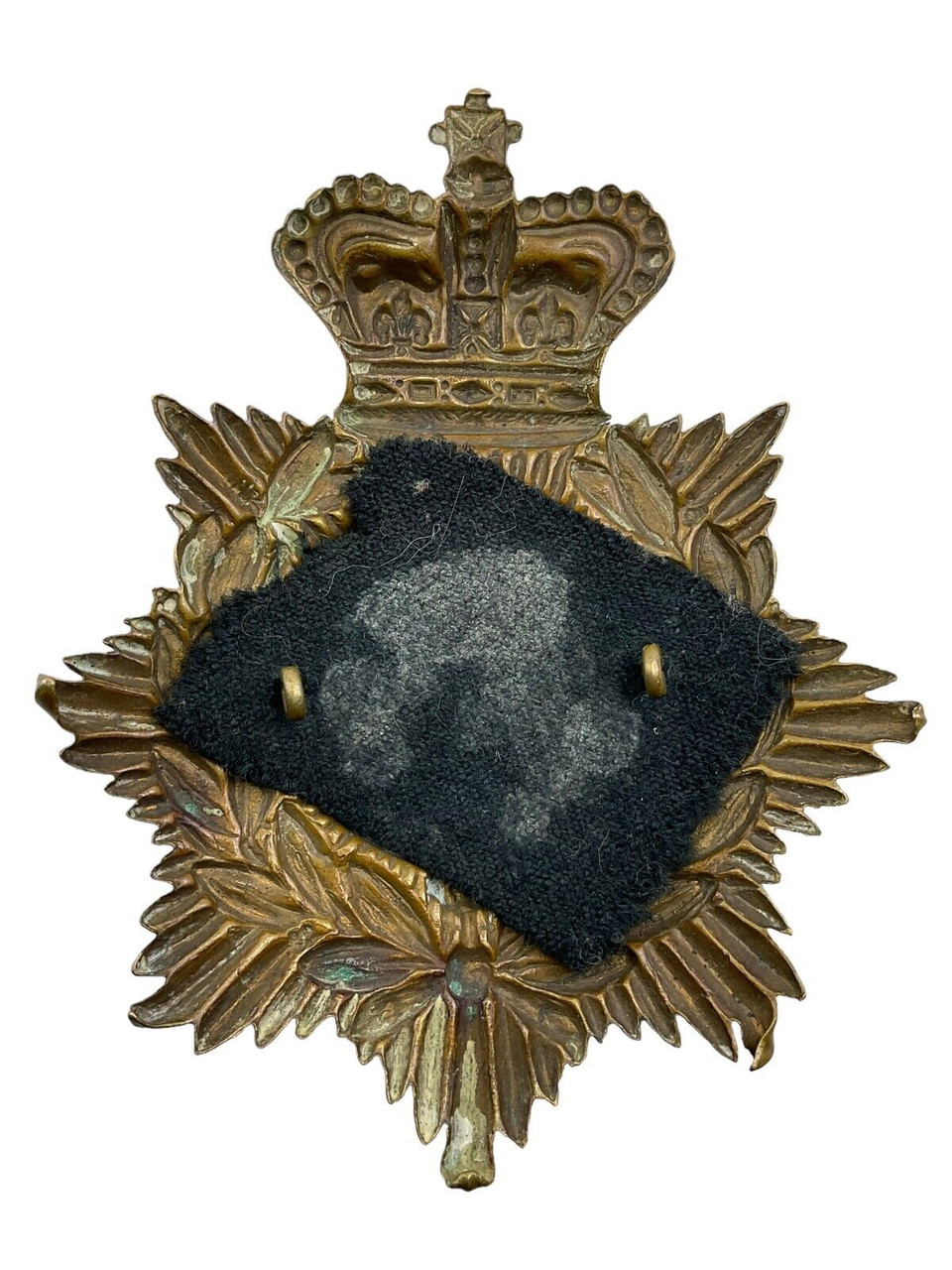 The “Canadian Militia Victorian 36th Peel Battalion of Infantry Helmet Plate” is a remarkable historical artifact from the Victorian era, emblematic of Canada’s rich military heritage. This ornate helmet plate was proudly worn by members of the 36th Peel Battalion of Infantry, a distinguished unit within the Canadian Militia. Crafted with intricate detail, it features traditional Victorian design elements, likely including a central emblem or crest, surrounded by scrollwork and symbolic motifs that represent the battalion’s identity and valor. The helmet plate not only symbolizes the courage and commitment of the soldiers who served in the 36th Peel Battalion but also serves as a tangible connection to Canada’s storied past. Collectors and historians alike value this piece for its historical significance and its reflection of the craftsmanship of military regalia from the late 19th century.
