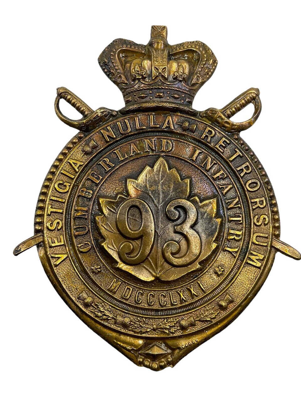 Canadian Militia Victorian 93rd Cumberland Battalion of Infantry Helmet Plate