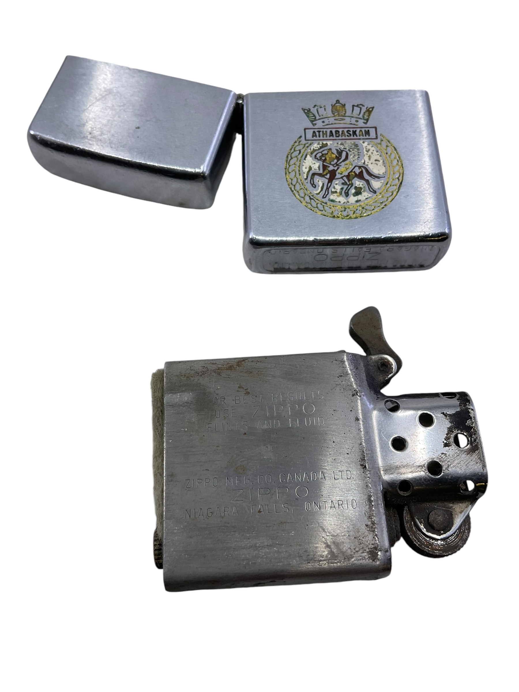 The ‘Canadian Navy RCN HMCS Athabaskan Zippo Lighter’ is a premium collectible item that pays homage to the Royal Canadian Navy’s illustrious history. The lighter features the emblem of HMCS Athabaskan, one of the most distinguished destroyers of the RCN. Constructed with the highest quality metals, the Zippo lighter is windproof, making it reliable in all weather conditions. It is refillable for a lifetime of use, showcasing Zippo’s commitment to sustainability and durability. Its sleek design, combined with the revered HMCS Athabaskan insignia, makes this lighter a perfect blend of functionality and sentiment. This item serves as an excellent keepsake or gift for those with an appreciation for military history, naval warfare, or Canadian heritage.
