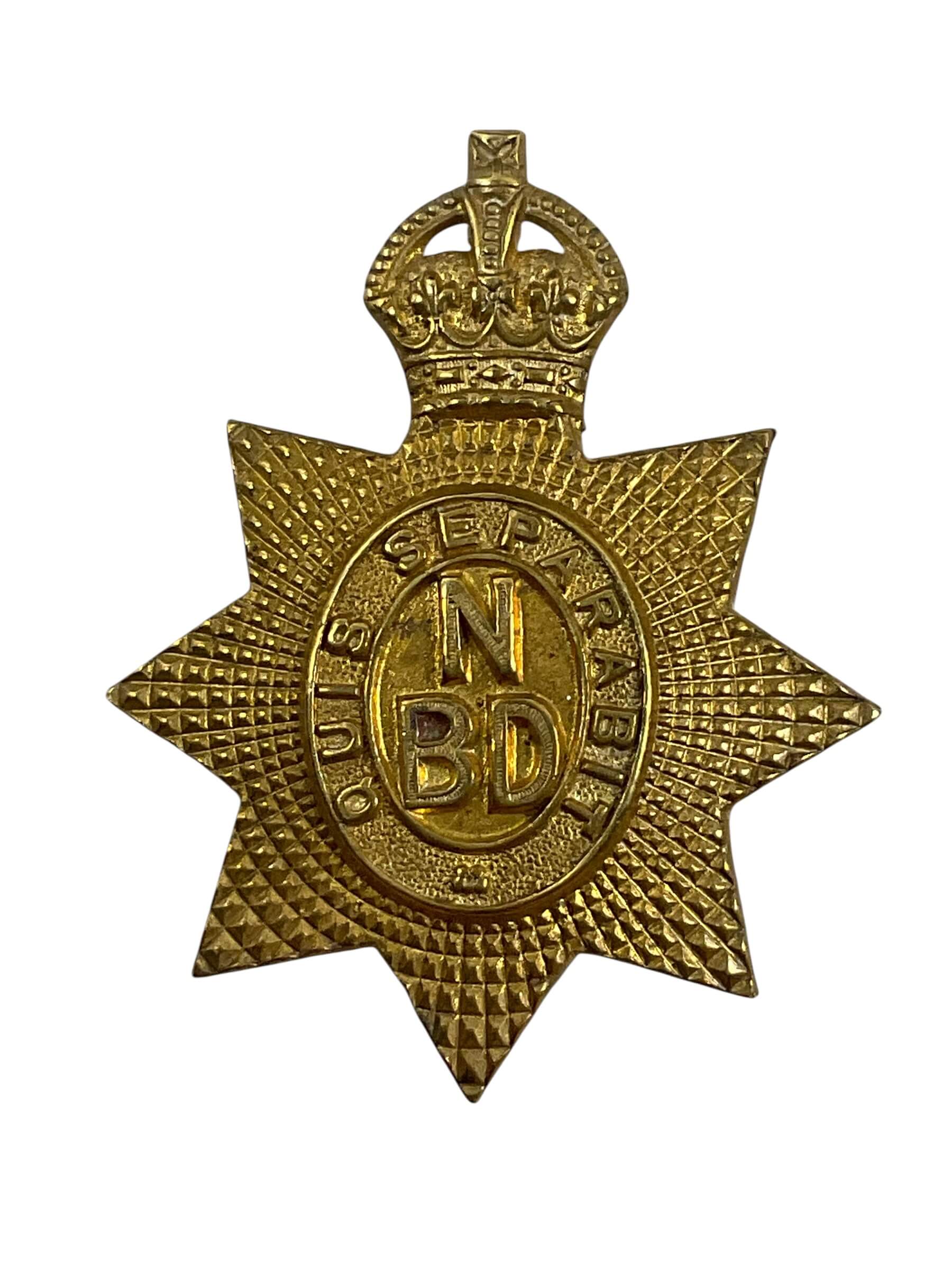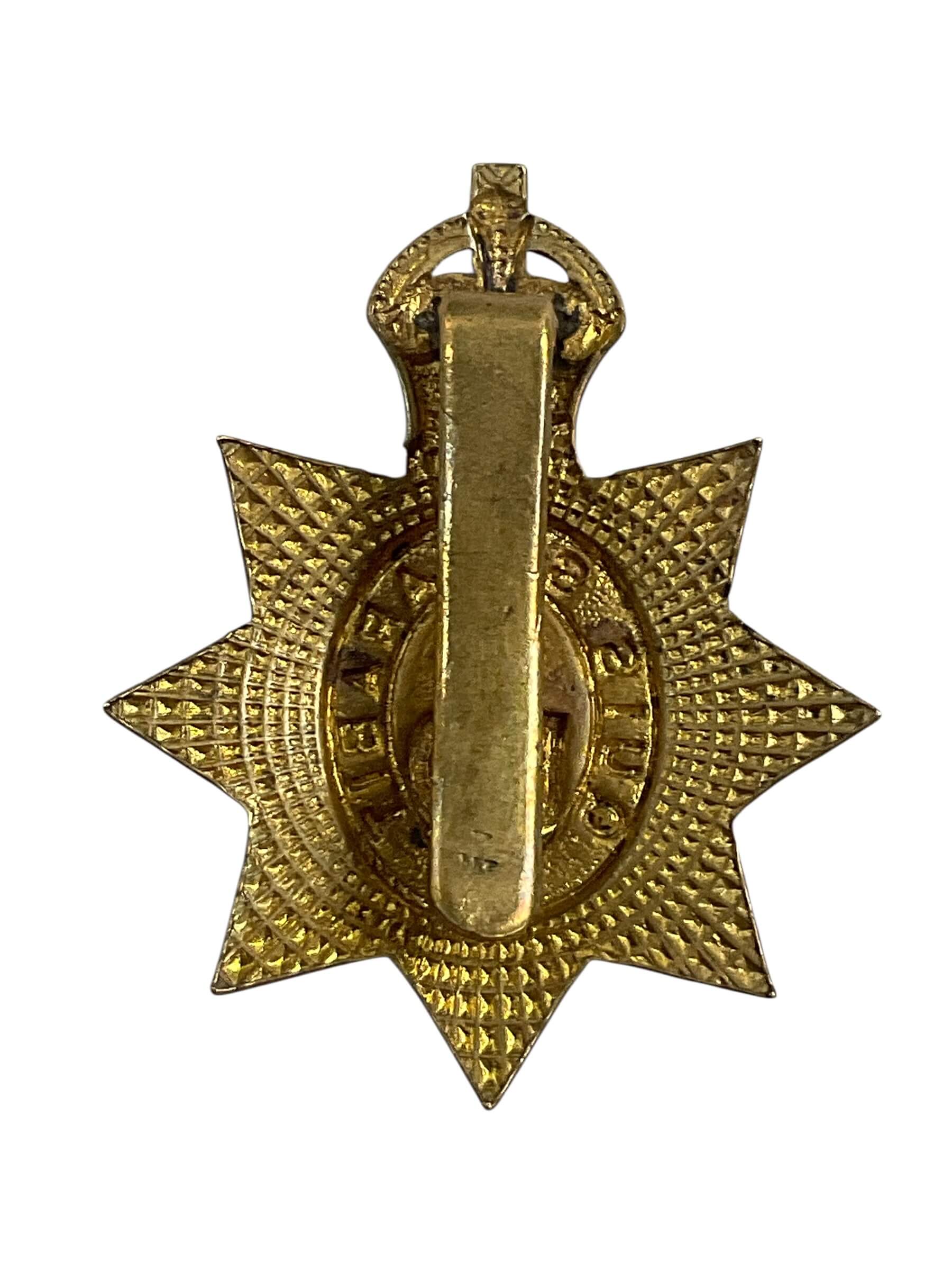 The Canadian New Brunswick Dragoons Cap Badge is a military insignia associated with the New Brunswick Dragoons, a cavalry regiment of the Canadian Militia with origins dating to the late 19th and early 20th centuries. This badge is typically constructed from brass and features a central motif reflecting regimental symbols, often incorporating a crown and a scroll inscribed with the regiment’s name. The design elements may also include maple leaves and crossed sabres, representing Canada and the cavalry tradition. The cap badge would have been worn on the headdress of uniformed members to denote regimental affiliation. The New Brunswick Dragoons served in various forms until their amalgamation and reorganization in the postwar period, which contributed to the formation of modern Canadian armoured units. Items such as this cap badge are valued for their historical connection to Canada’s military heritage and for their representational role within early 20th-century Canadian military attire.