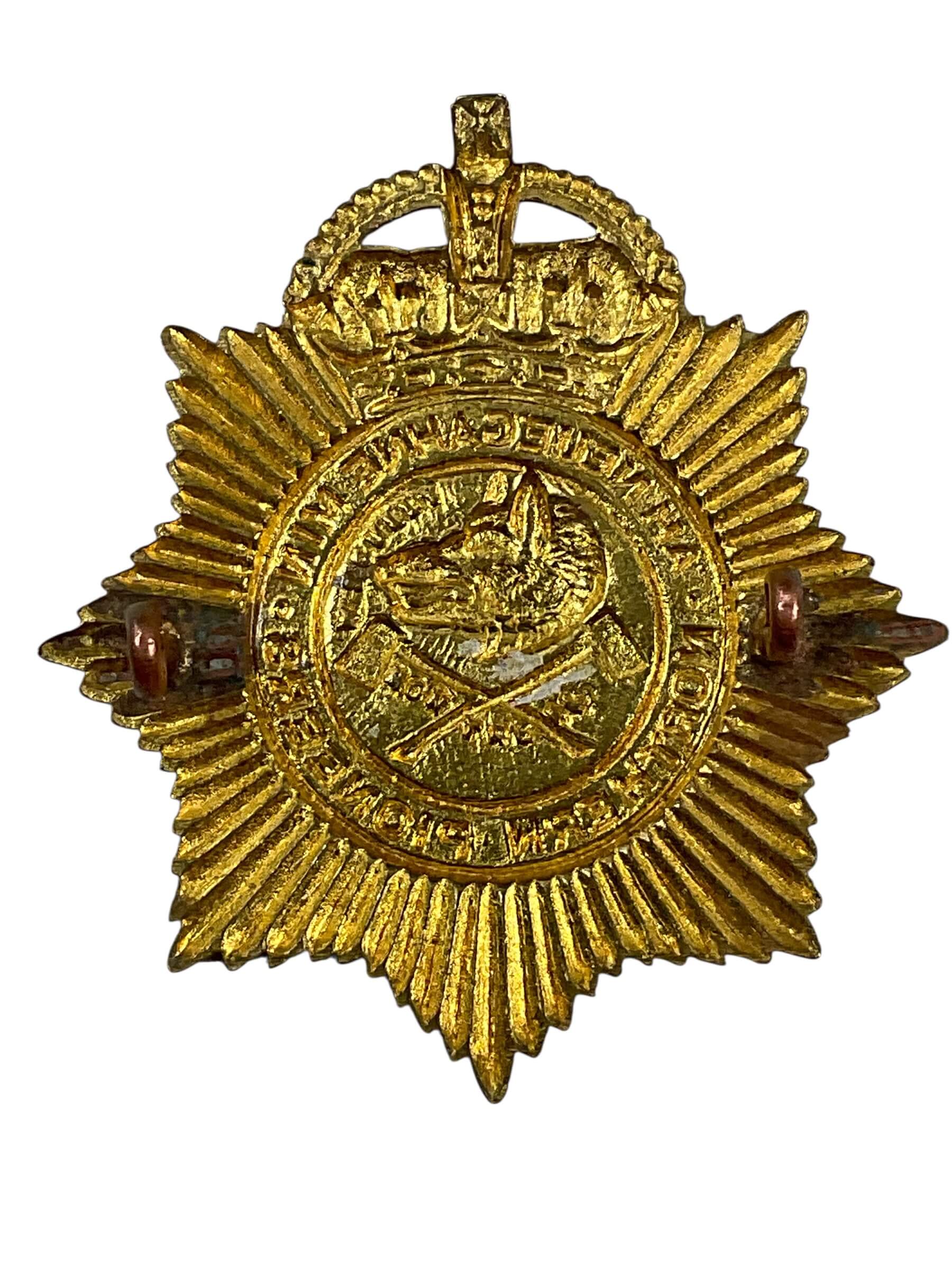 The Canadian Northern Pioneers Regiment Cap Badge represents a piece of Canadian military history associated with the Northern Pioneers, an infantry regiment of the Non-Permanent Active Militia. The regiment was established in the early 20th century and primarily drew its members from Northern Ontario. The cap badge typically features distinctive regimental insignia, often incorporating symbols such as the beaver and maple leaves, which are emblematic of Canadian heritage. Manufactured in metal, the badge was worn on the service dress cap by members of the regiment as a mark of identification and unit pride. During the First World War, the Northern Pioneers contributed personnel to the Canadian Expeditionary Force, serving both overseas and at home. Collectors and historians value these badges for their historical context and their connection to Canada’s military past. The badge’s design and construction reflect the era in which it was produced and its function within Canadian Army uniform regulations.
