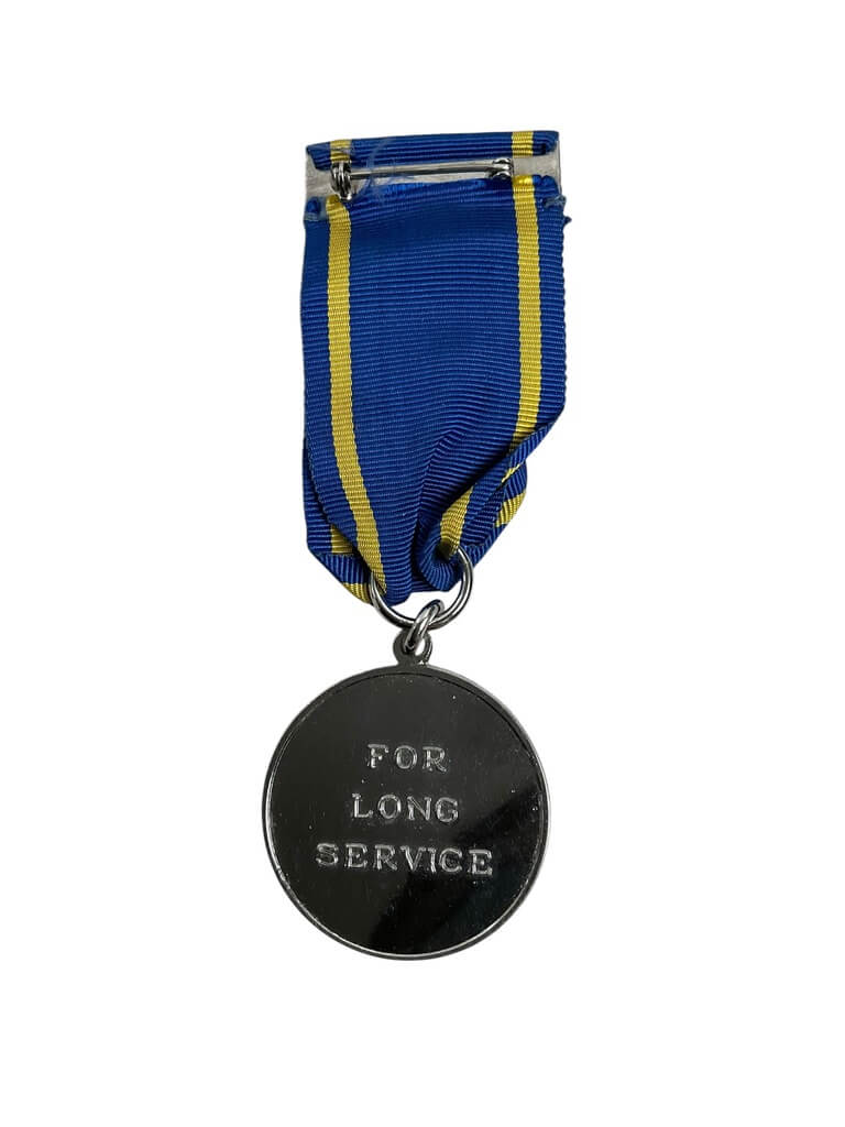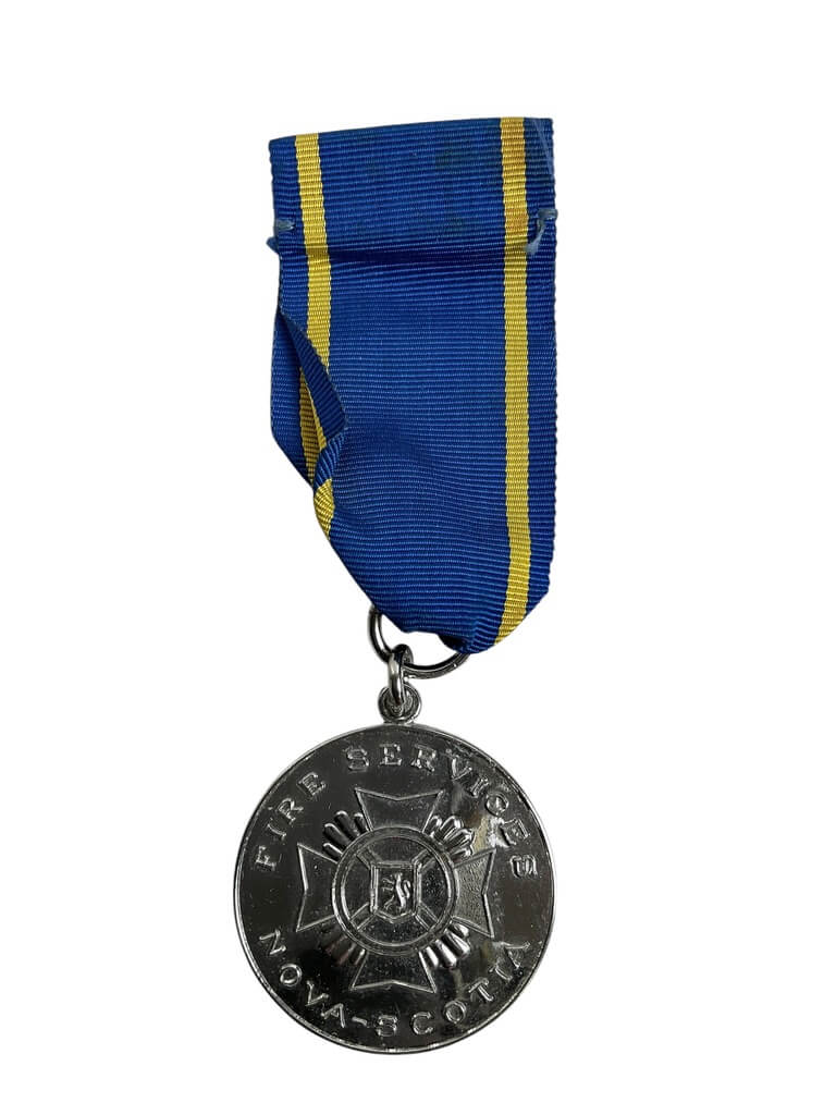 The Canadian Nova Scotia Fire Service Long Service Full Size Medal is a notable commendation awarded to firefighters in Nova Scotia, Canada, in recognition of their extended service. This full-sized medal, primarily made of metal alloy, exhibits traditional design elements such as a circular disc, a colored ribbon, and symbolic insignias. One main characteristic is the crest of Nova Scotia at the top of the medal, typically accompanied by the recipient’s name and years of service engraved on the edge or the back. The ribbon is typically of a certain color scheme, often integrating hues of blue and yellow. Initially instituted in the mid-20th century, this medal signifies dedication and bravery in the field of fire service. It is predominantly awarded to individuals who have served 15, 25, or 35 continuous years in the Nova Scotia Fire Service, reflecting their enduring commitment to public safety and service.