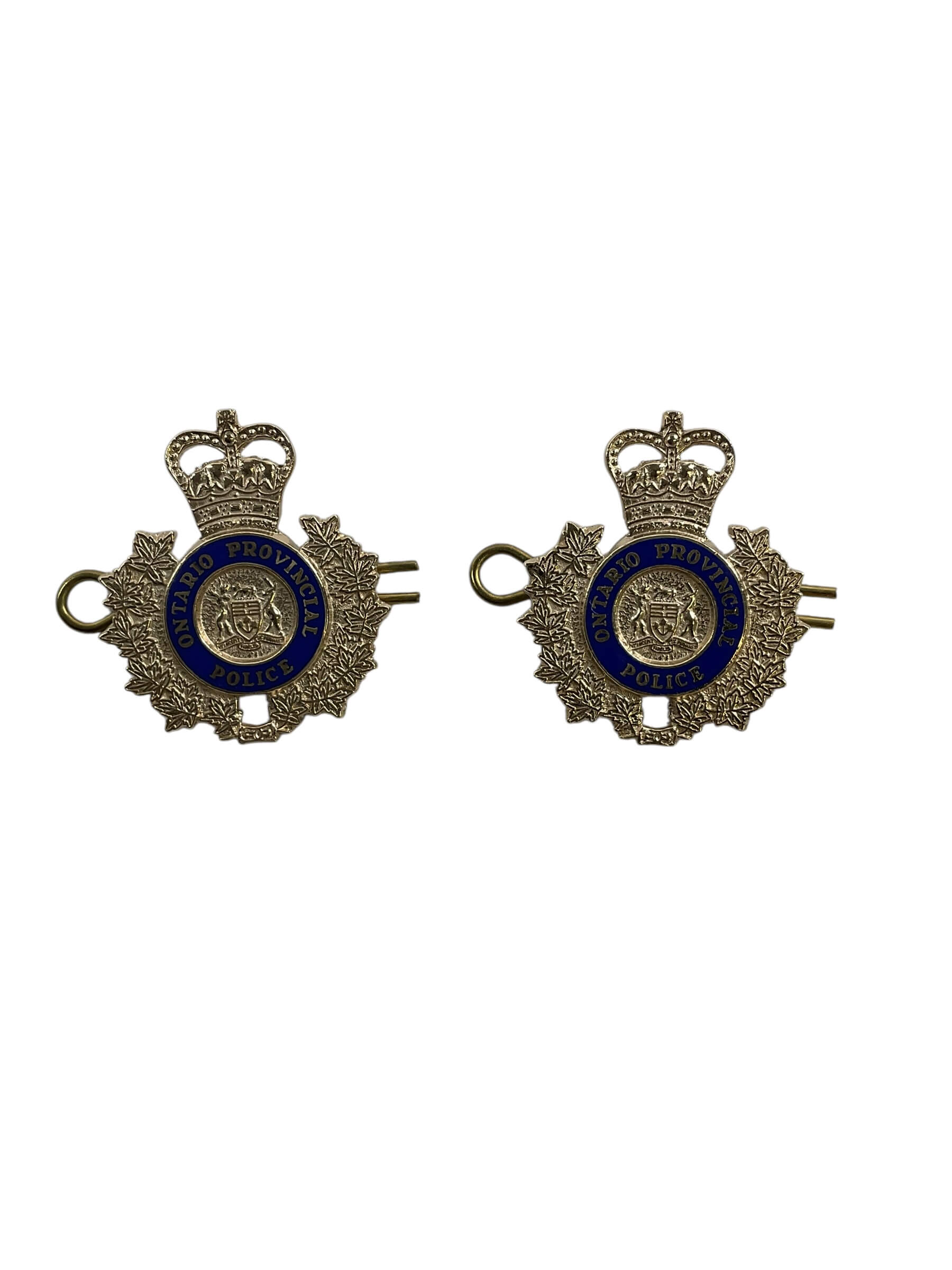 This item, titled ‘Canadian Ontario Provincial Police OPP Collars Insignia Pair’, is a set of two distinct insignias, designed to adorn the collars of Ontario’s Provincial Police uniforms. Each piece is meticulously crafted to embody the prestige and honor associated with this esteemed Canadian law enforcement agency. The insignias exhibit high-quality workmanship, featuring the OPP’s iconic emblem with immaculate detailing and precision. Made from durable materials, these insignias are designed to withstand the rigours of daily use while retaining their polish and shine. Ideal for collectors, retired officers, or those serving in the line of duty, these insignias represent a tangible piece of the OPP’s legacy. This pair of collar insignias serves as a symbol of commitment, courage, and service, embodying the spirit of Ontario’s Provincial Police force.