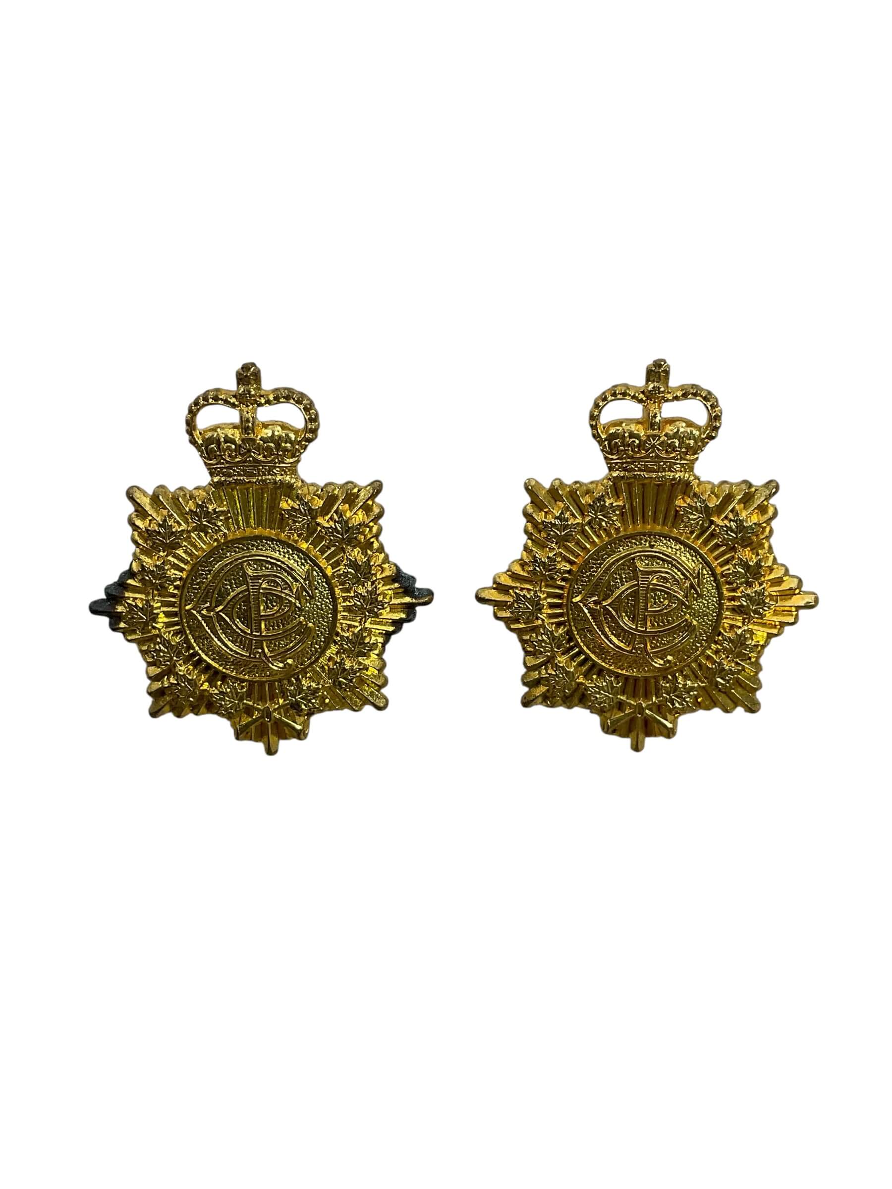 The Canadian Postal Corps Collars Insignia Pair is a set of two crests representative of Canada’s military mail service. Each insignia measures approximately 1.5 inches in height, featuring an embossed crown on top, signifying the service’s allegiance to the monarch. Below the crown is a heraldic maple leaf, symbolizing Canada, and a traditional post horn, indicative of a mail deliverer. The Insignia Pair is made of durable metal, typically brass or copper, ensuring longevity. The set, intended for collar attachment, is traditionally used by members of the Canadian Postal Corps, a division responsible for the provision and maintenance of postal services for Canadian forces on operations worldwide. It is also appreciated by military enthusiasts, historians, and collectors. A true representation of Canadian military history, the Canadian Postal Corps Collars Insignia Pair provides insight into the country’s military mail service.