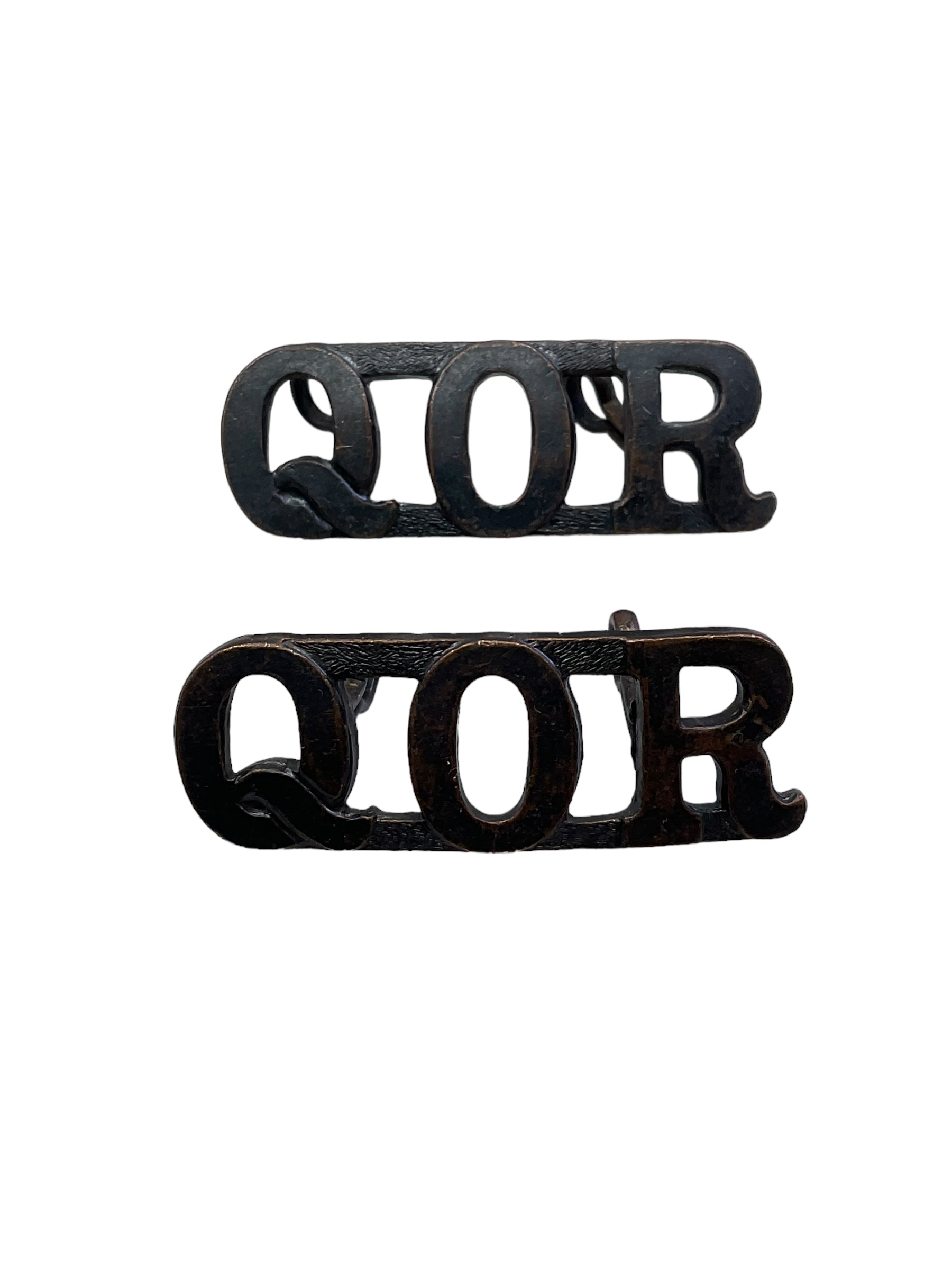 Canadian Queens Own Rifles QOR Blackened Shoulder Titles Pair