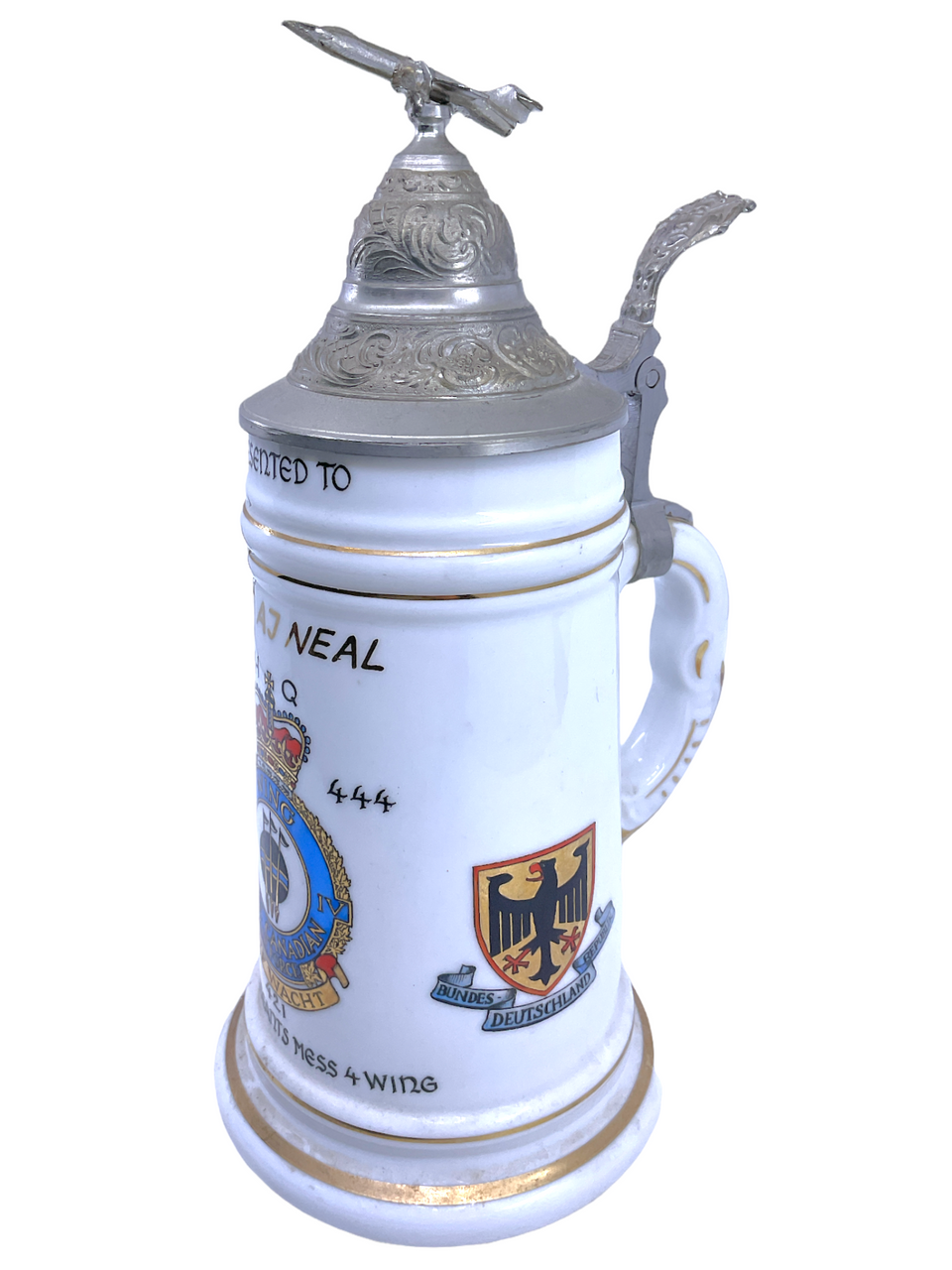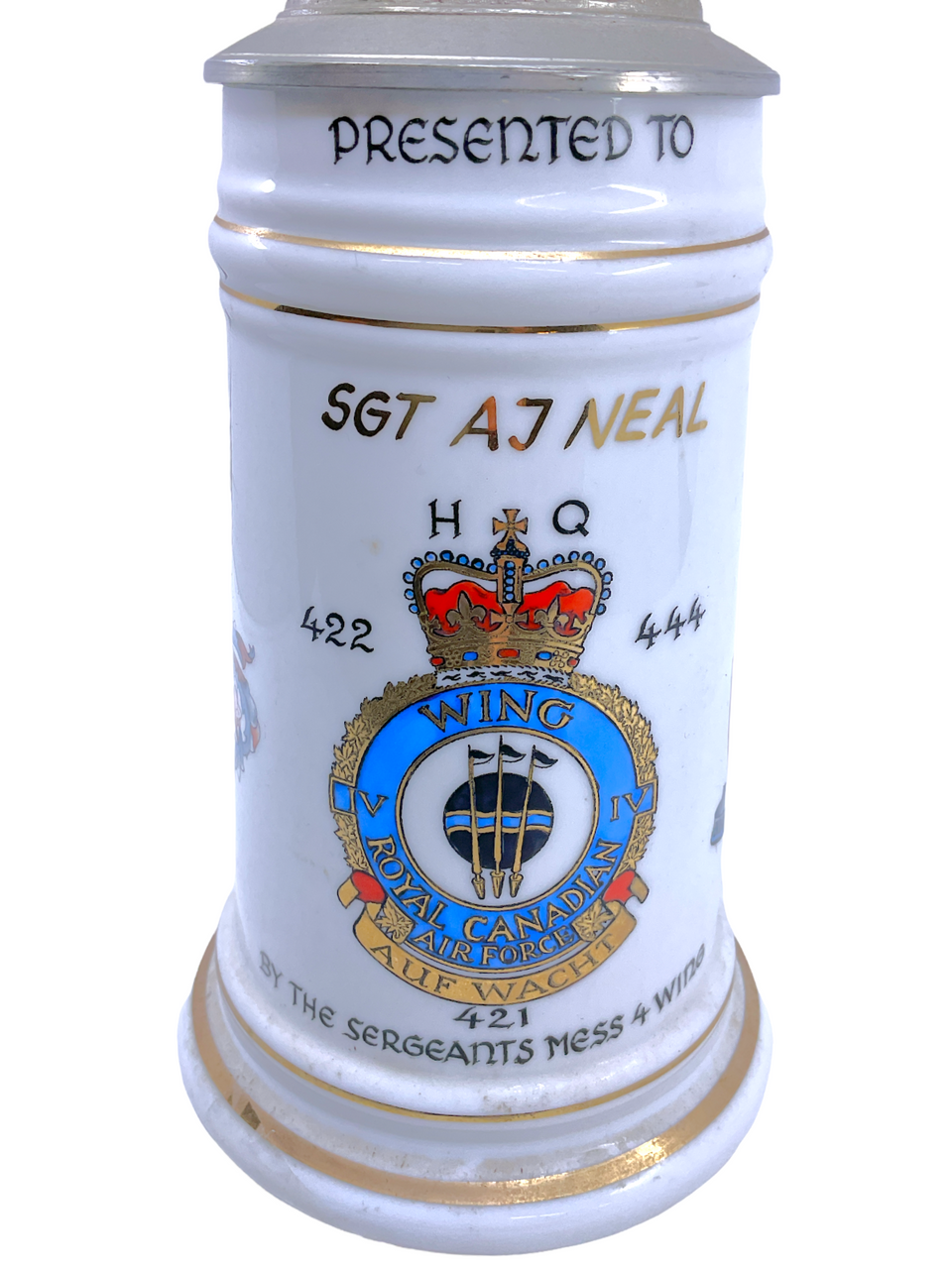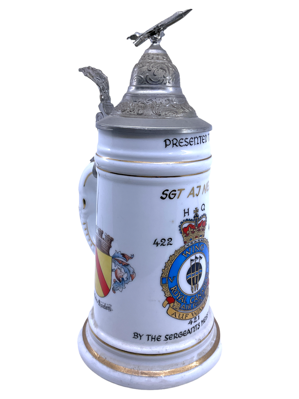 Canadian RCAF No 4 Wing HQ Sgt Neal Presented Tankard CF-5 Fighter Top Nude Base