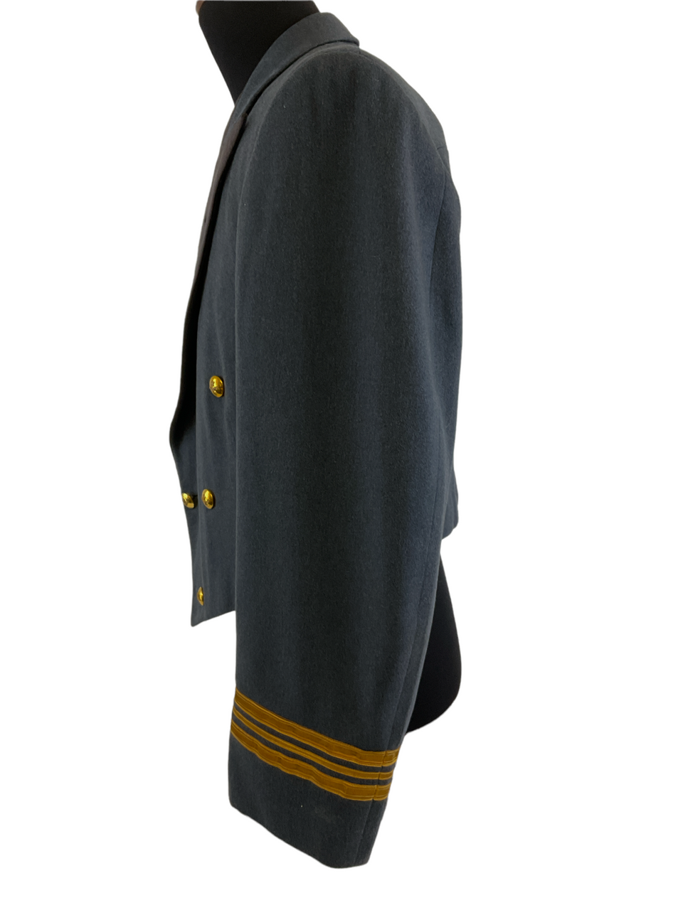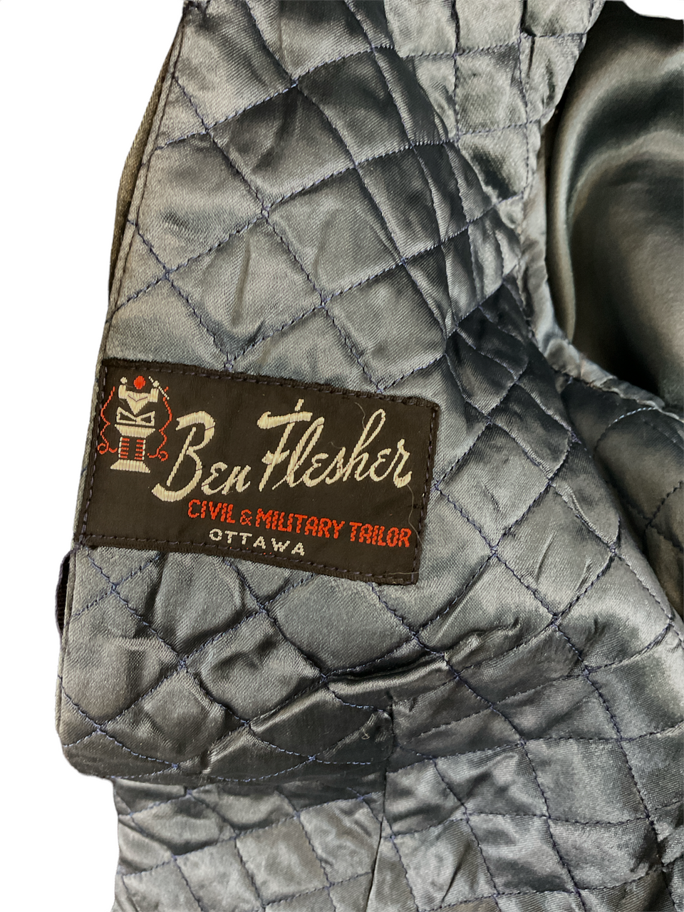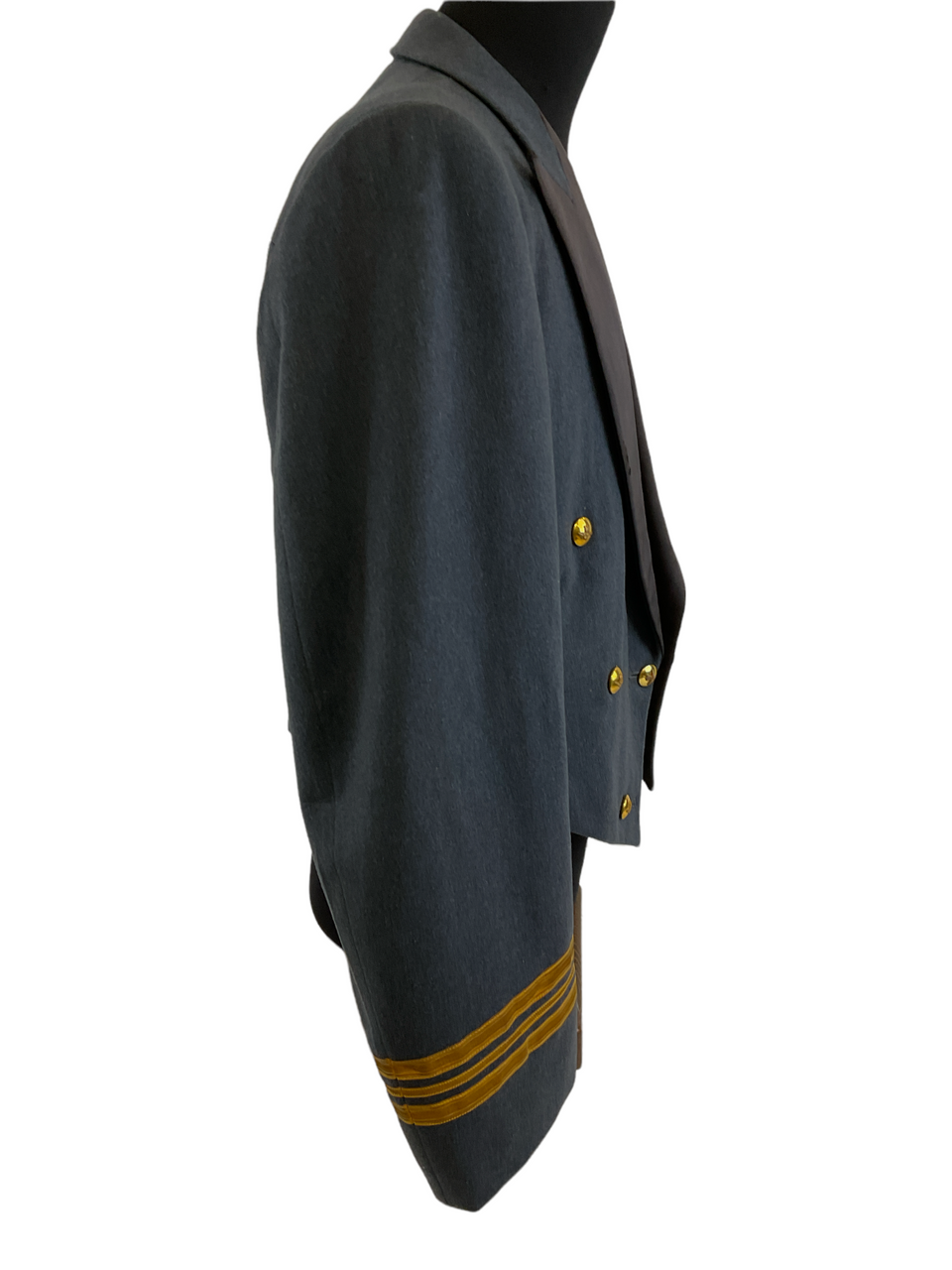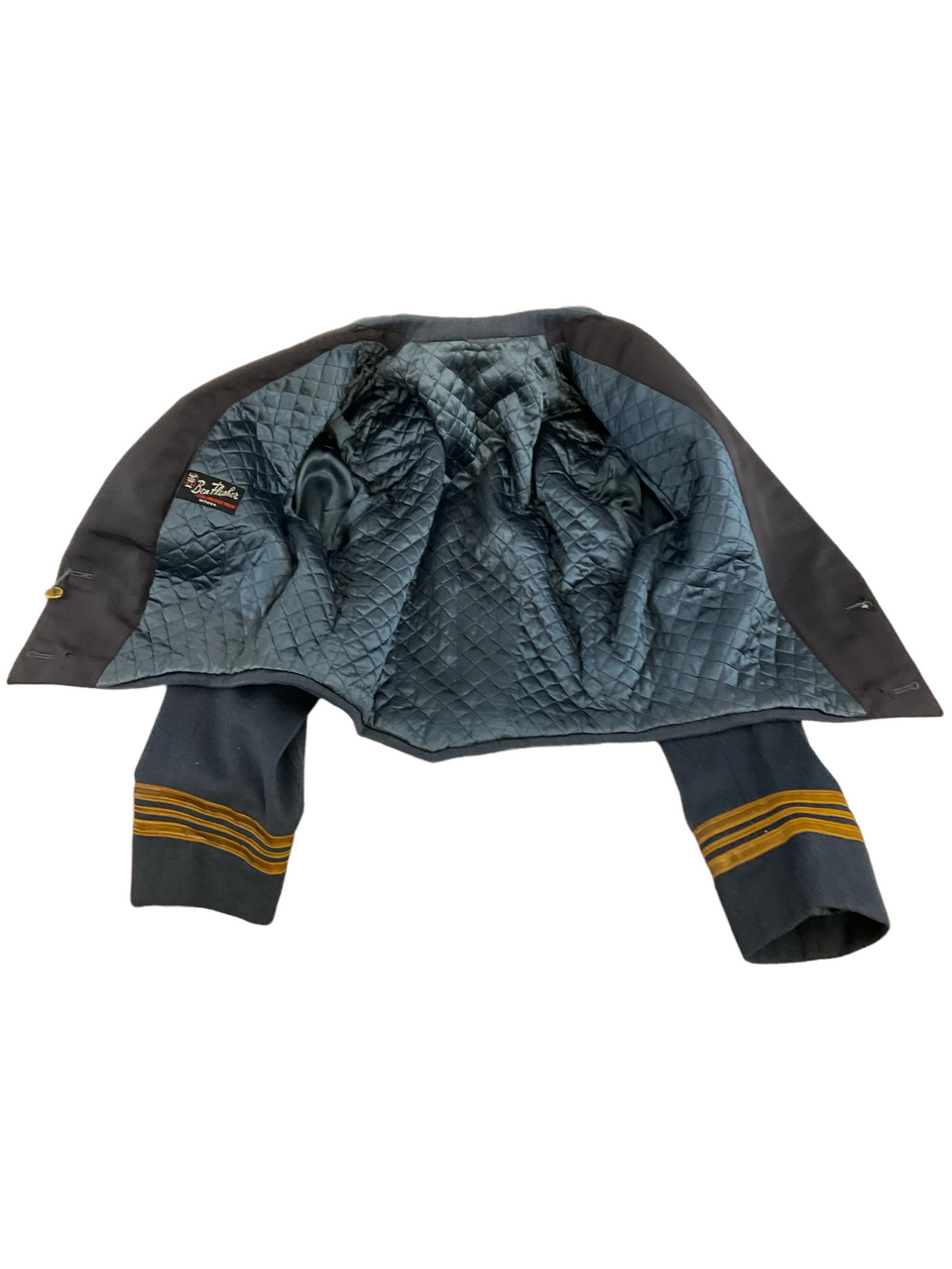 This Canadian RCAF Officers Mess Dress Jacket is a distinguished piece of military formal attire, specifically tailored for officers of the Royal Canadian Air Force. With a chest size of 40, this jacket exemplifies the precision and pride of the RCAF uniform tradition. The mess dress jacket features a sharp, navy-blue wool blend with intricate silver piping and distinguished rank insignias to denote the wearer’s status. Ideal for formal dining and ceremonial occasions, it includes traditional elements such as a high collar, ornate buttons, and epaulettes. The interior lining ensures comfort without sacrificing the formal appeal. This particular jacket is named, adding a unique historical touch and a personalized connection to its previous owner. It’s not only a representation of military heritage but also a collector’s item for those interested in Canadian military history. Whether used for reenactments, collection, or formal events, this RCAF Officers Mess Dress Jacket stands out with its impeccable craftsmanship and distinguished appearance.