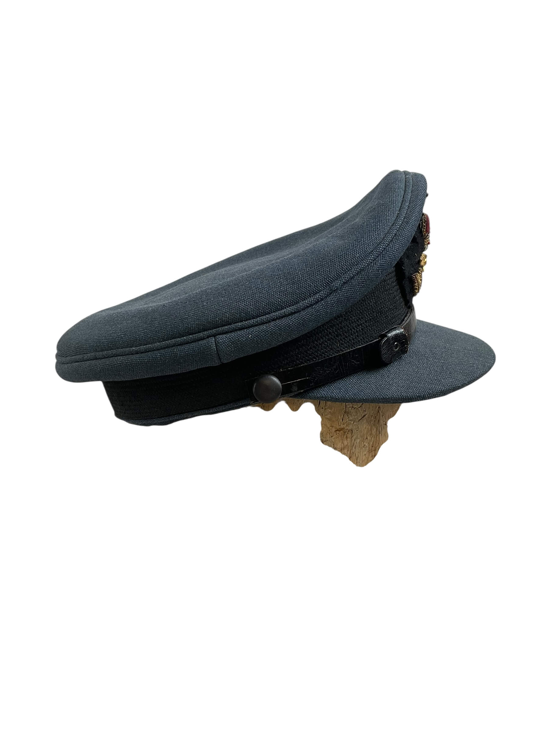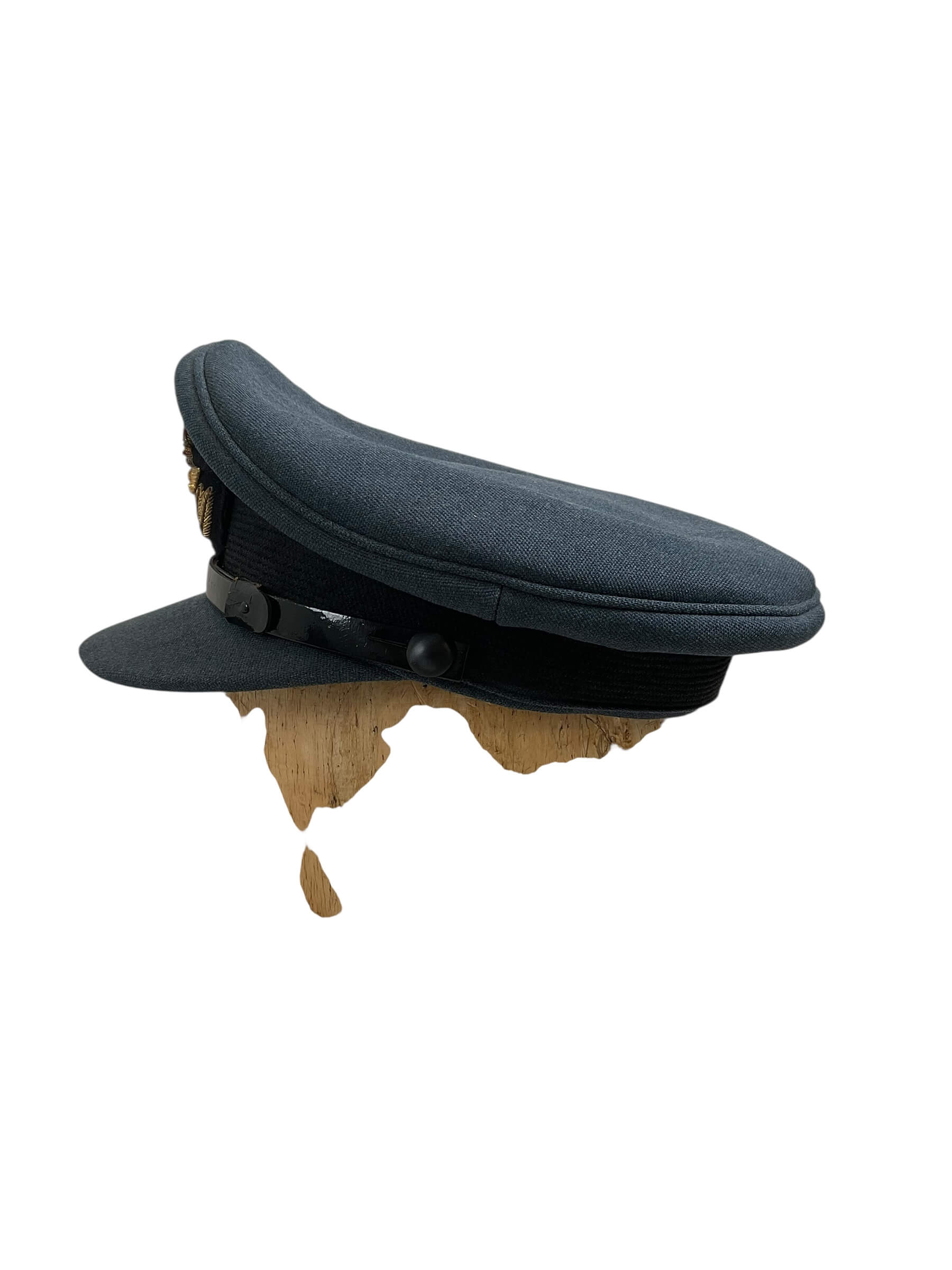 This item is a genuine Canadian RCAF (Royal Canadian Air Force) Officers Peak Cap Hat, named and available in size 7 1/8. This iconic piece of military uniform is steeped in rich history and patriotism, with its distinctive design representing the prestige and honor of the RCAF. It features a stiff peaked brim, providing a sharp, professional look synonymous with military fashion. The hat’s size, 7 1/8, assures a comfortable fit for most individuals. The named attribute of the cap denotes its official use, adding an extra layer of authenticity and heritage to the piece. Whether you’re a collector of military memorabilia, an enthusiast of Canadian history, or seeking a unique fashion accessory, this RCAF Officers Peak Cap Hat is a must-have item. Please note that this original piece is not a replica, but an authentic part of the Royal Canadian Air Force’s uniform legacy.