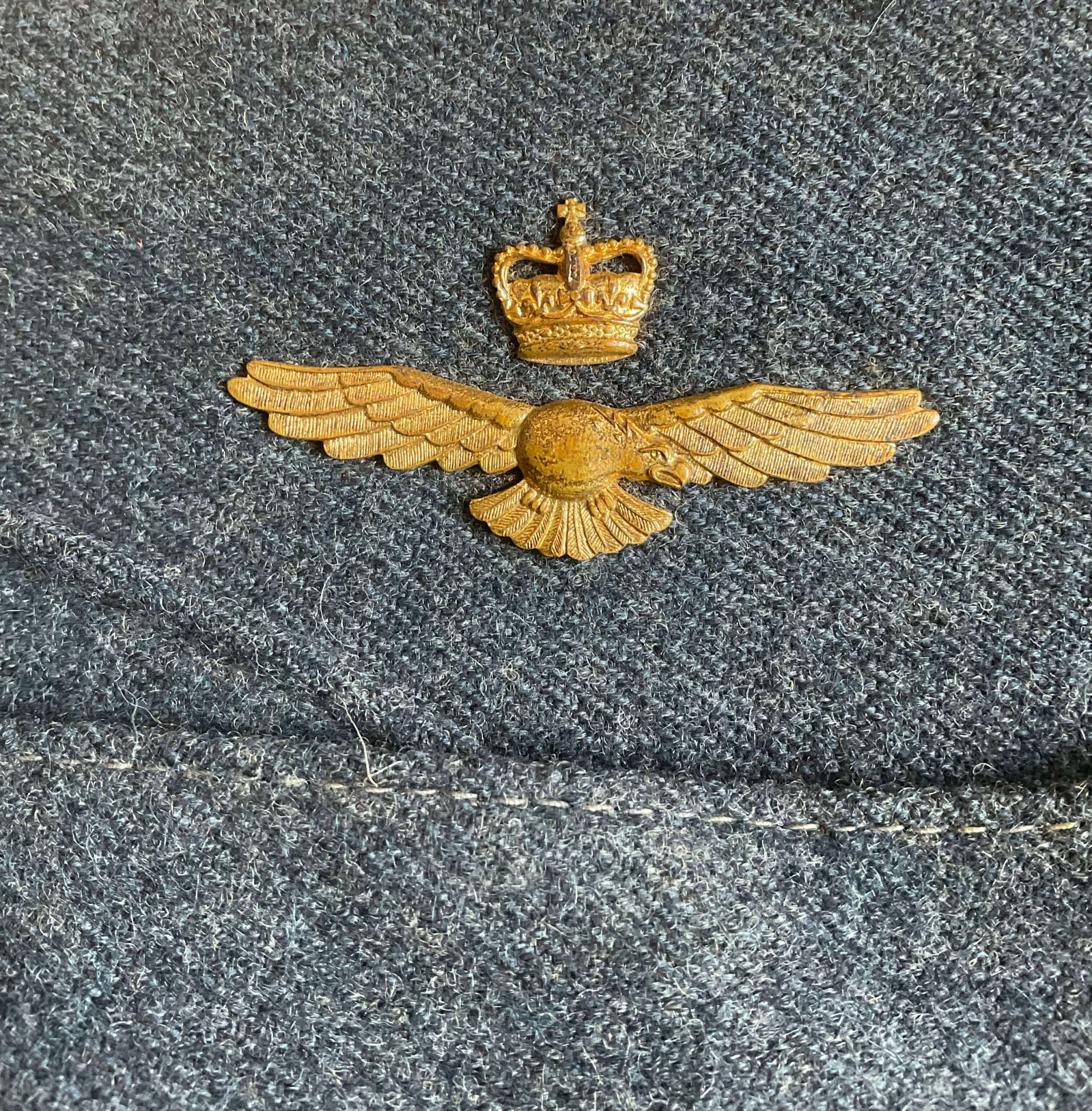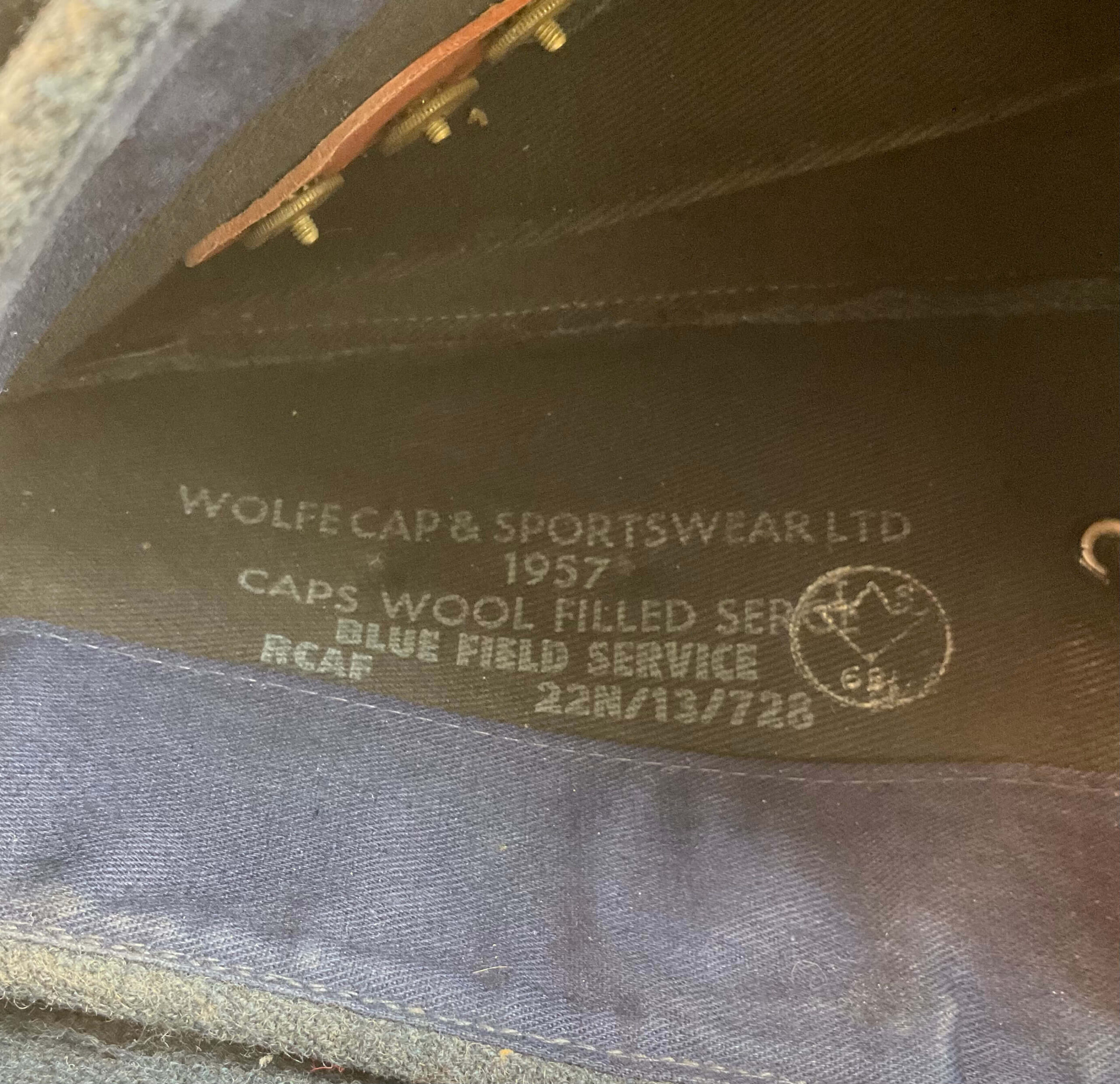 The Canadian RCAF Wedge Cap 1957 Dated Size 7 1/4 is an authentic headgear piece issued to members of the Royal Canadian Air Force (RCAF) during the mid-20th century. This cap is dated 1957, reflecting the period following the unification of RCAF uniforms post-World War II and prior to their integration into the Canadian Armed Forces. Constructed from blue-grey wool, the wedge cap features a foldable crown with a cloth lining and leather sweatband. It is designed in size 7 1/4, suited for head circumference corresponding to that measurement. Standard insignia, such as the brass RCAF buttons and front badge, would have originally been fitted, though presence and condition may vary. The wedge cap represents the official standard for Canadian air force personnel dress in the era, offering insight into the uniform regulations and material culture of the 1950s RCAF.