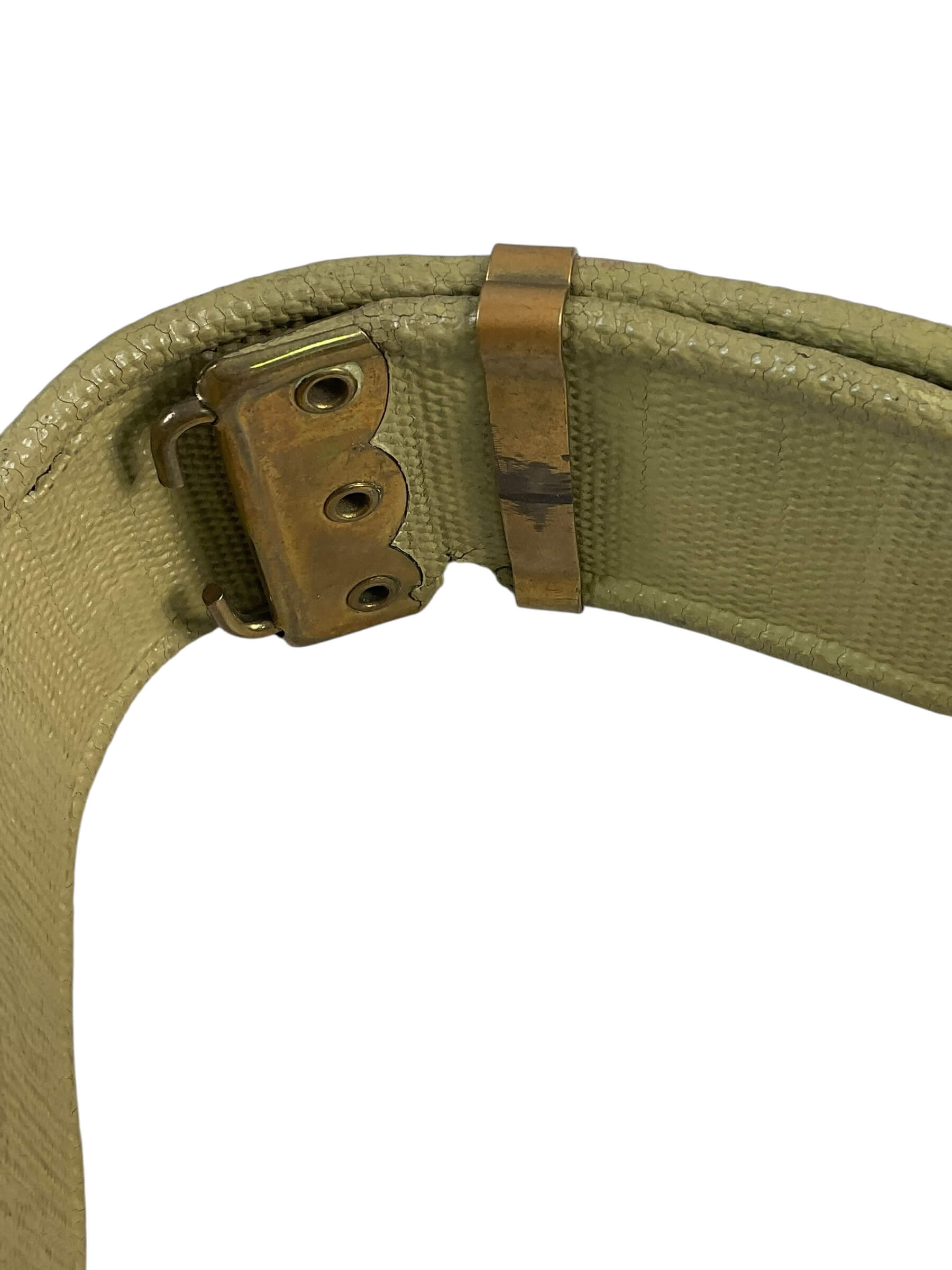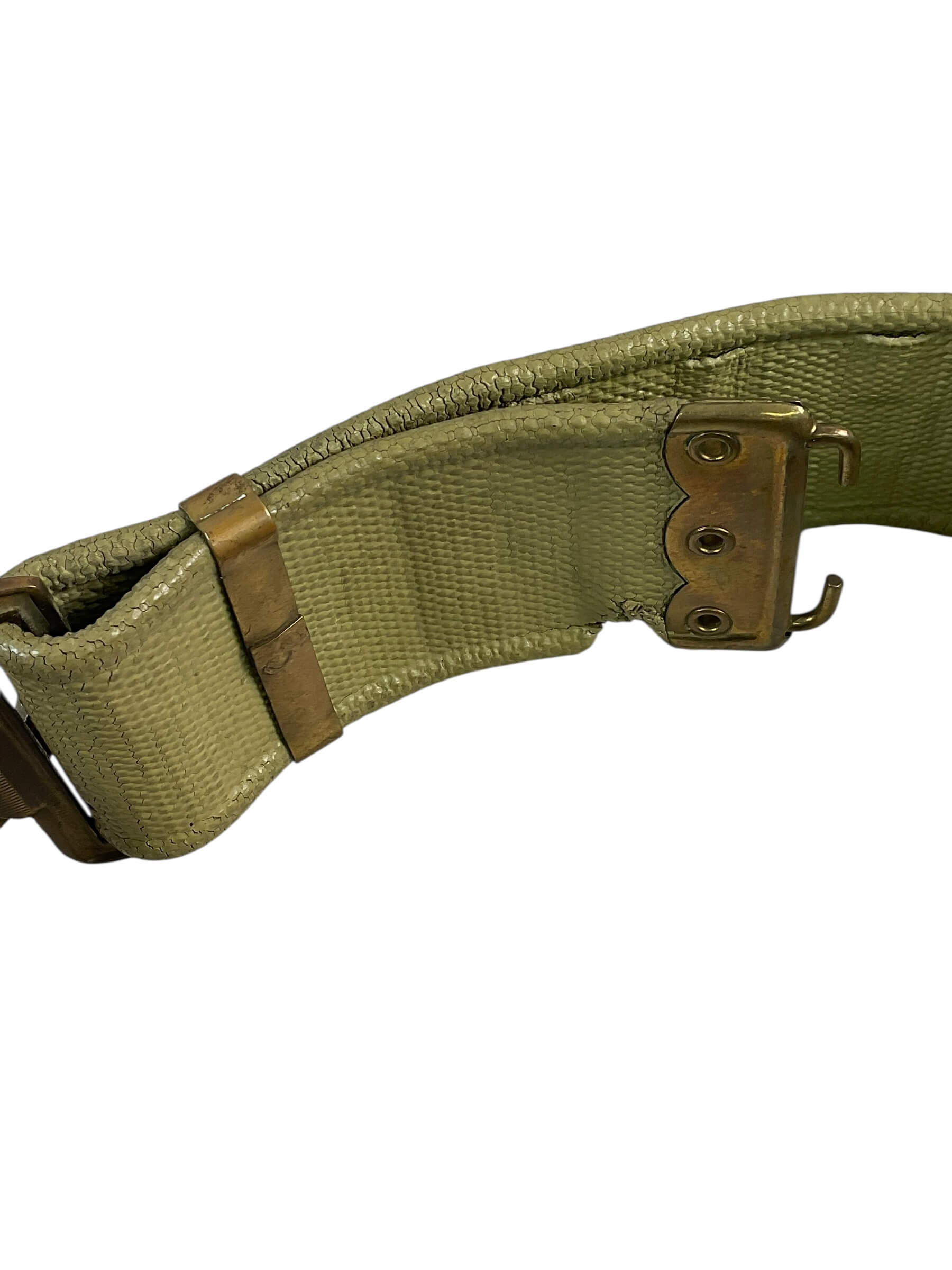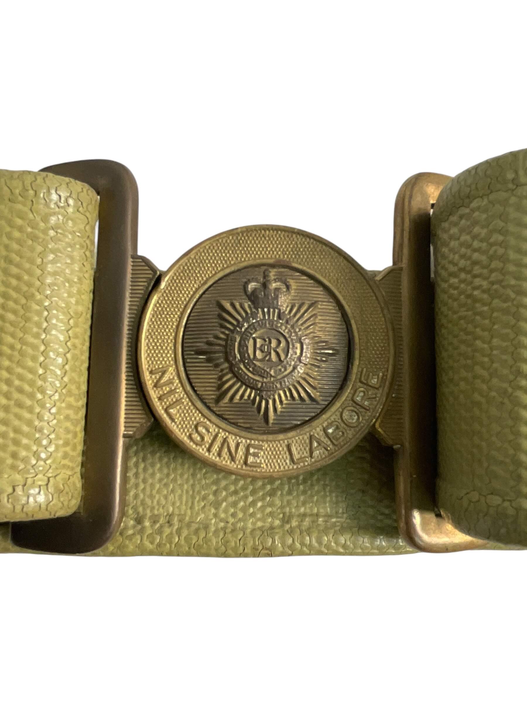 The Canadian RCASC (Royal Canadian Army Service Corps) Belt and Buckle is an authentic piece of military uniform equipment used by members of the RCASC. The Service Corps was a crucial support branch of the Canadian Army, responsible for logistics, transport, and supply operations from its establishment in 1901 until its amalgamation in 1968. The belt is typically constructed from durable webbed canvas or leather, designed for wear with the standard-issue uniform. The metal buckle features the distinctive insignia of the Royal Canadian Army Service Corps, usually displaying the corps badge or crest prominently at its center. This set was standard issue for non-commissioned officers and enlisted personnel and could be worn during both ceremonial and routine duties. The belt and buckle exemplify military manufacturing standards of their period and reflect the organizational history and identity of the RCASC within the Canadian Armed Forces.