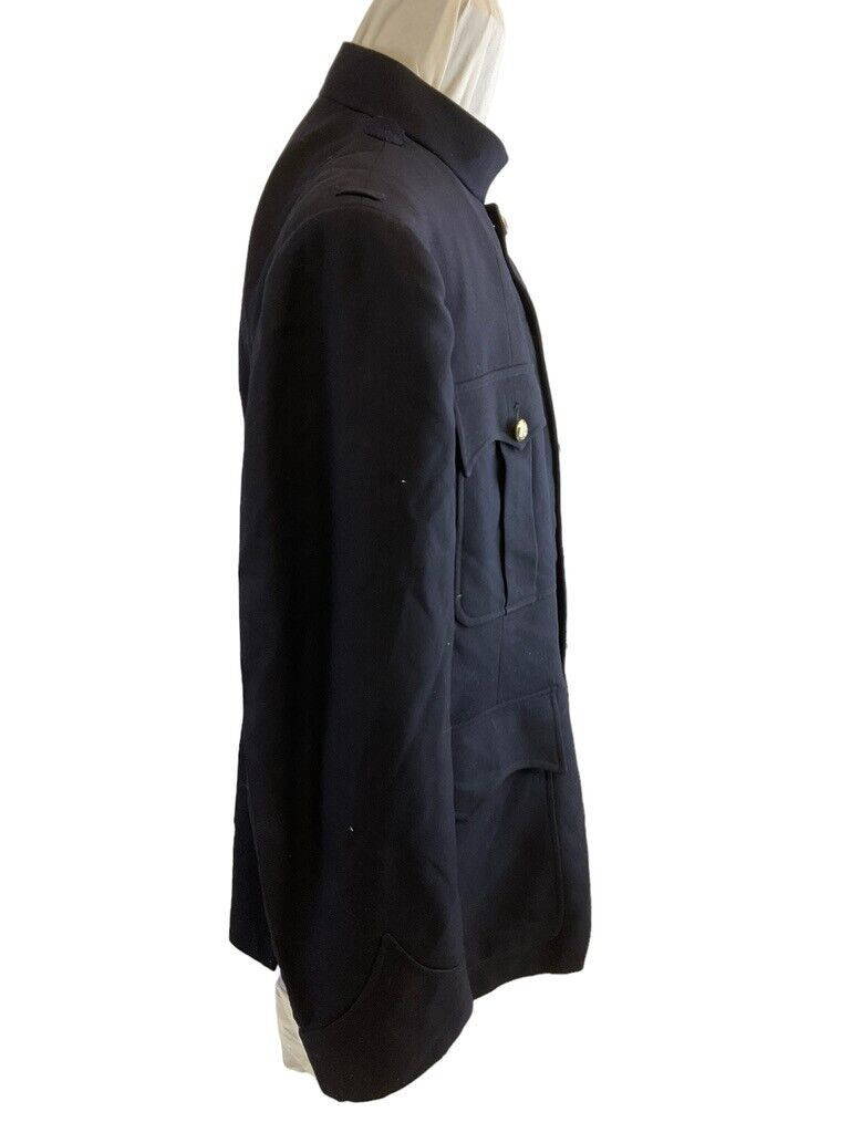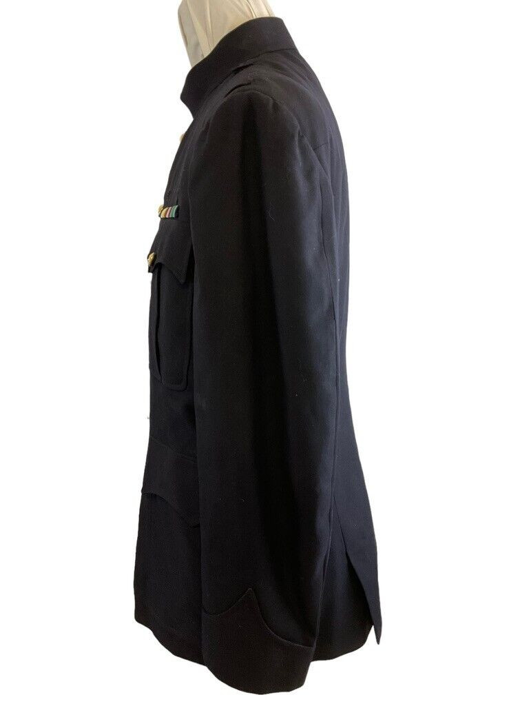The ‘Canadian RCASC Service Corps Officers Named Blue Patrol Jacket with Ribbons’ is a distinguished piece of military attire that highlights the proud tradition of the Royal Canadian Army Service Corps (RCASC). This meticulously crafted blue patrol jacket, adorned with various service ribbons, signifies the wearer’s rank and accomplishments within the corps. Each ribbon on the jacket represents notable campaigns, commendations, and years of dedicated service, adding a personal narrative to the uniform. The jacket not only serves as a functional garment within the military but also stands as a symbol of honor and heritage for the Canadian RCASC officers. Whether displayed in a military museum or worn during ceremonial duties, this jacket underscores the exemplary service and pride of the men and women who have donned it. Its enduring style and historical significance make it a cherished artifact within the Canadian military history.
