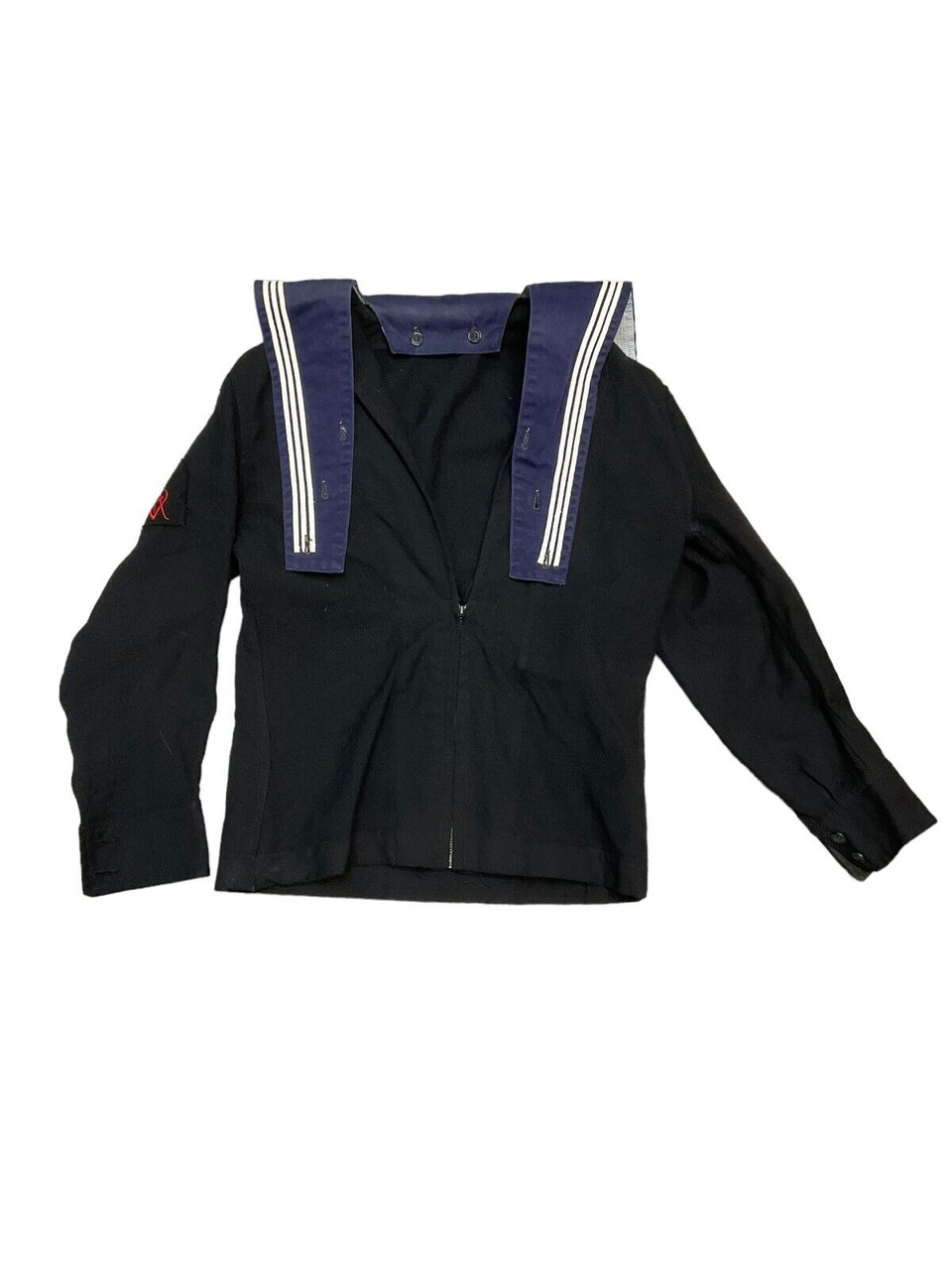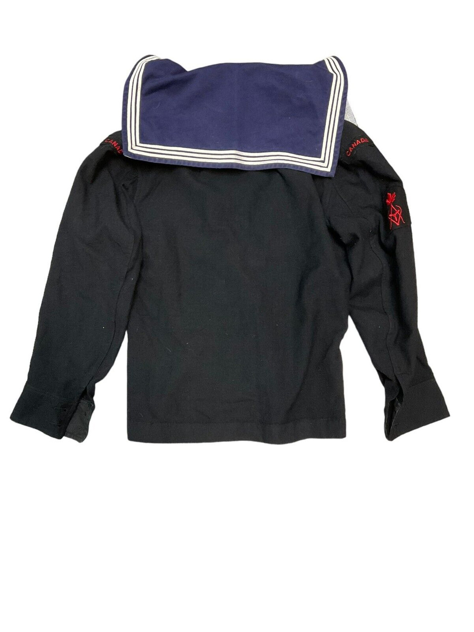 Canadian RCN Navy Blue Shirt Jumper with Dickie 1966 Dated This authentic Canadian RCN (Royal Canadian Navy) Navy Blue Shirt Jumper with Dickie dates back to 1966, presenting a unique piece of naval history. Crafted for durability and functionality, the jumper showcases the traditional deep navy-blue color synonymous with naval uniforms. Made from high-quality materials, it includes a dickie, which is a detachable garment originally designed for additional warmth and protection. The 1966 date signifies its historical value, offering a glimpse into naval fashion and standards of the mid-20th century. Ideal for collectors, historians, or enthusiasts of military memorabilia, this shirt jumper represents the proud heritage of the Canadian Navy. Its excellent condition and authentic detailing make it a remarkable addition to any collection, reflecting the dedication and service of those who wore it. Whether displayed or worn, this piece is a testament to the enduring legacy of the Royal Canadian Navy.