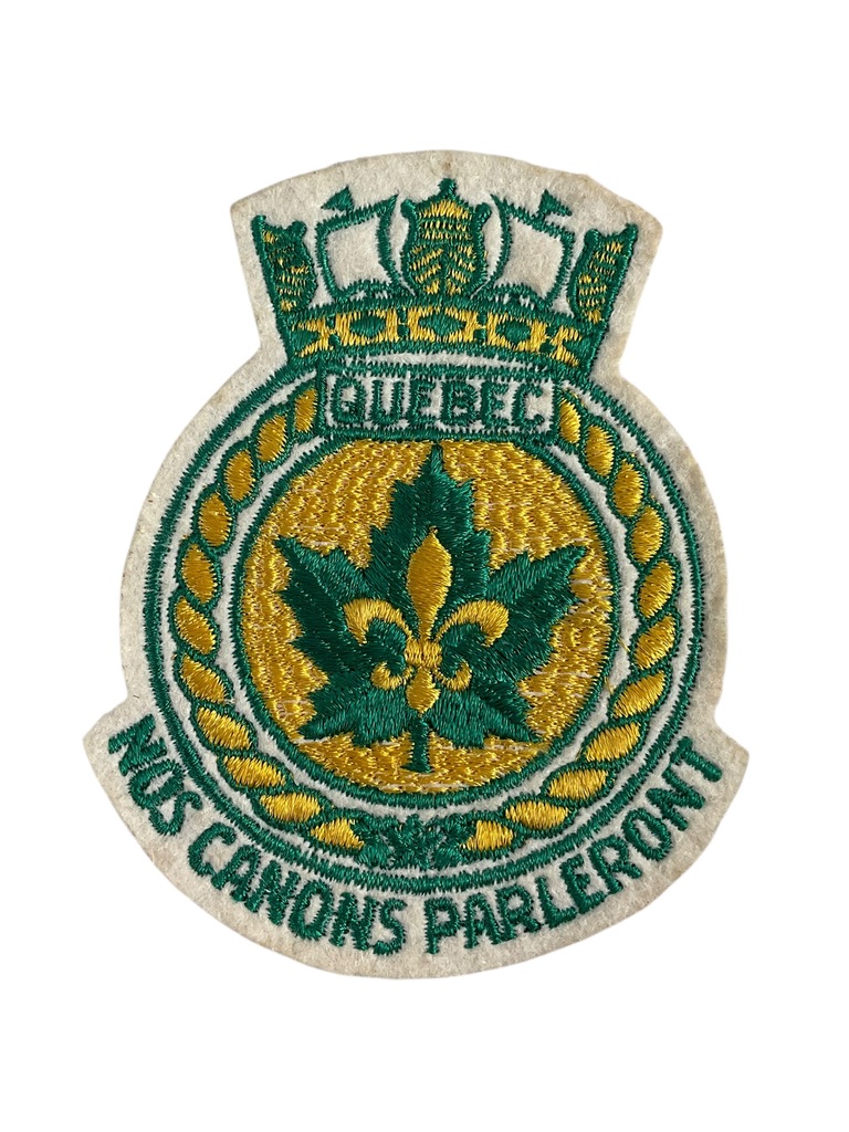 The Canadian RCN Navy HMCS Quebec Ships Crest represents the official insignia of HMCS Quebec, a ship that served in the Royal Canadian Navy. The crest typically features elements symbolic of the ship’s heritage and role within the naval fleet, including imagery and motifs relevant to the province of Quebec and maritime tradition. Such crests are used for identification, ceremonial purposes, and as emblems worn by crew or displayed aboard the vessel. HMCS Quebec was commissioned during the mid-20th century, contributing to various naval operations and exercises. The crest serves as a historical artifact, reflecting the traditions and service of the ship and its crew within the broader context of Canadian naval history. Items like this are of interest to collectors of military and maritime memorabilia, providing tangible connections to the personnel and vessels of the Royal Canadian Navy. The crest is typically constructed from durable materials suitable for long-term display or preservation.
