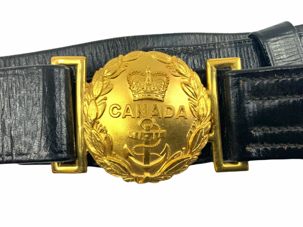 The Canadian RCN Navy Officers Leather Sword Belt with Hangers is a distinguished piece of naval regalia perfect for collectors and military history enthusiasts. Crafted from high-quality leather, this belt exudes durability and timeless elegance, reflecting the esteemed traditions of the Royal Canadian Navy (RCN). Designed for officers, it features meticulously detailed hardware and adjustable features to ensure a perfect fit. The accompanying hangers provide both functionality and aesthetic appeal, allowing for the secure attachment of a ceremonial sword. This belt not only serves as a practical accessory for formal naval attire but also stands as a symbol of honor, discipline, and service. Whether displayed as a collectible or worn for official ceremonies, this leather sword belt with hangers is a remarkable tribute to Canada’s naval heritage.