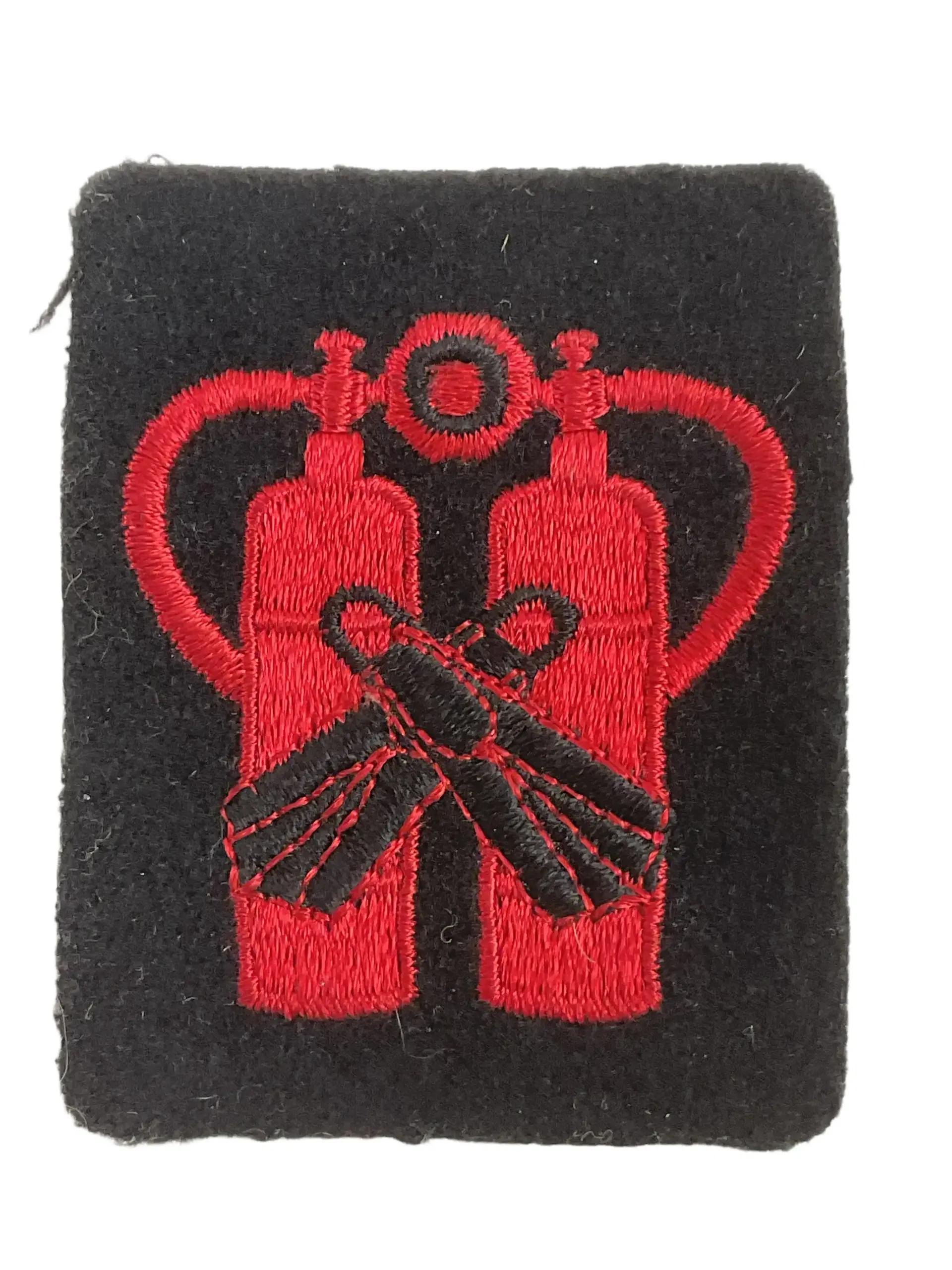 The Canadian RCN Navy Shallow Water Diver Trade Patch represents qualification within the Royal Canadian Navy’s diver trades. This embroidered insignia was awarded to personnel who successfully completed the shallow water diver course, authorizing them to carry out underwater tasks in limited-depth environments. The patch typically features a diving helmet motif, signifying the wearer’s specialized training and duties related to underwater operations, maintenance, and repairs in shallow waters. It was commonly worn on the lower sleeve of navy uniforms to denote this specific qualification. The design and construction of the patch reflect standard military insignia practices of its era, using durable materials and clear iconography for recognition. The Shallow Water Diver Trade Patch provides insight into the structure and occupational specializations within the Canadian Navy, as well as the evolving requirements of maritime service personnel. Collectors and historians value these patches for their association with naval history and military diving operations.