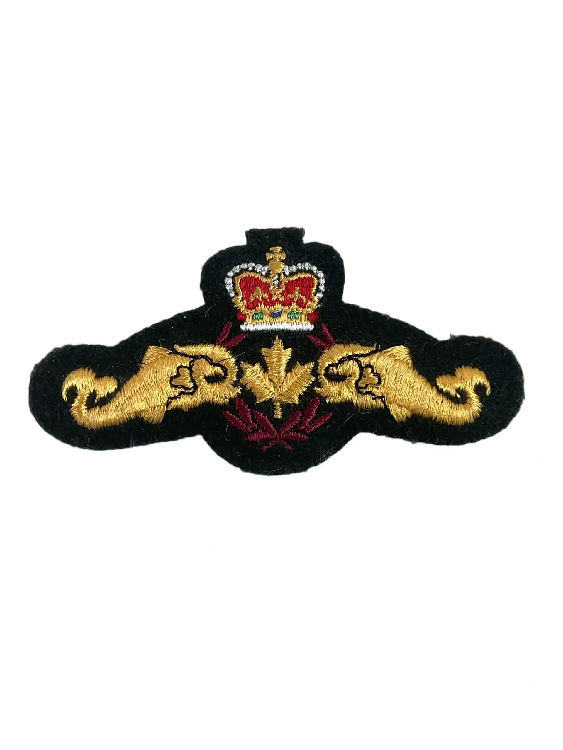 The Canadian RCN Navy Submarine Patch Cotton is a cloth insignia representing the Royal Canadian Navy’s submarine service. Typically produced from durable cotton material, this patch features distinctive embroidered elements that signify its association with Canadian naval submariners. The design often includes a stylized submarine and may incorporate national symbols such as the maple leaf or the naval crown, distinguishing it from other RCN patches. Historically, such patches have been worn on uniforms to denote service with submarine crews, providing identification and fostering unit cohesion. This patch is relevant to collectors and historians with an interest in Canadian military insignia and naval history, particularly those focusing on auxiliary and specialist branches. Its manufacture, materials, and design conform to the standards established by Canadian military uniform regulations during the period of its use. The Canadian RCN Navy Submarine Patch Cotton offers insight into the visual culture and organizational structure of Canada’s naval forces.