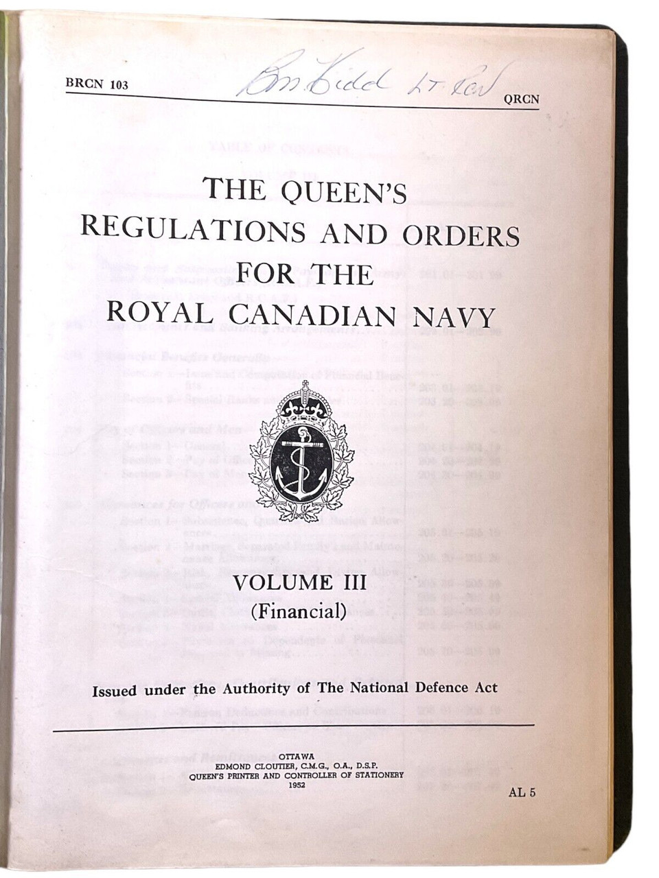Canadian RCN Queen’s Regulations & Orders For the Navy Vol 2 HC Reference Book
