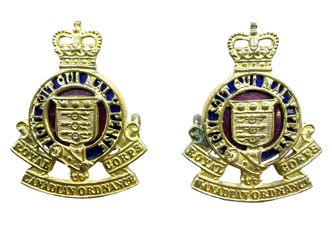 Canadian RCOC Ordnance Corps Officers Collar Badge Insignia Pair