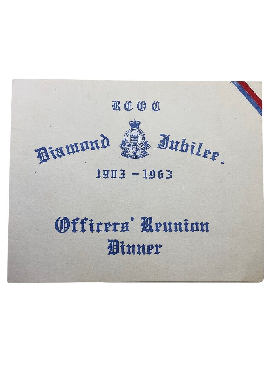 Canadian RCOC Ordnance Corps Officers Reunion Dinner Diamond Jubilee Menu Card